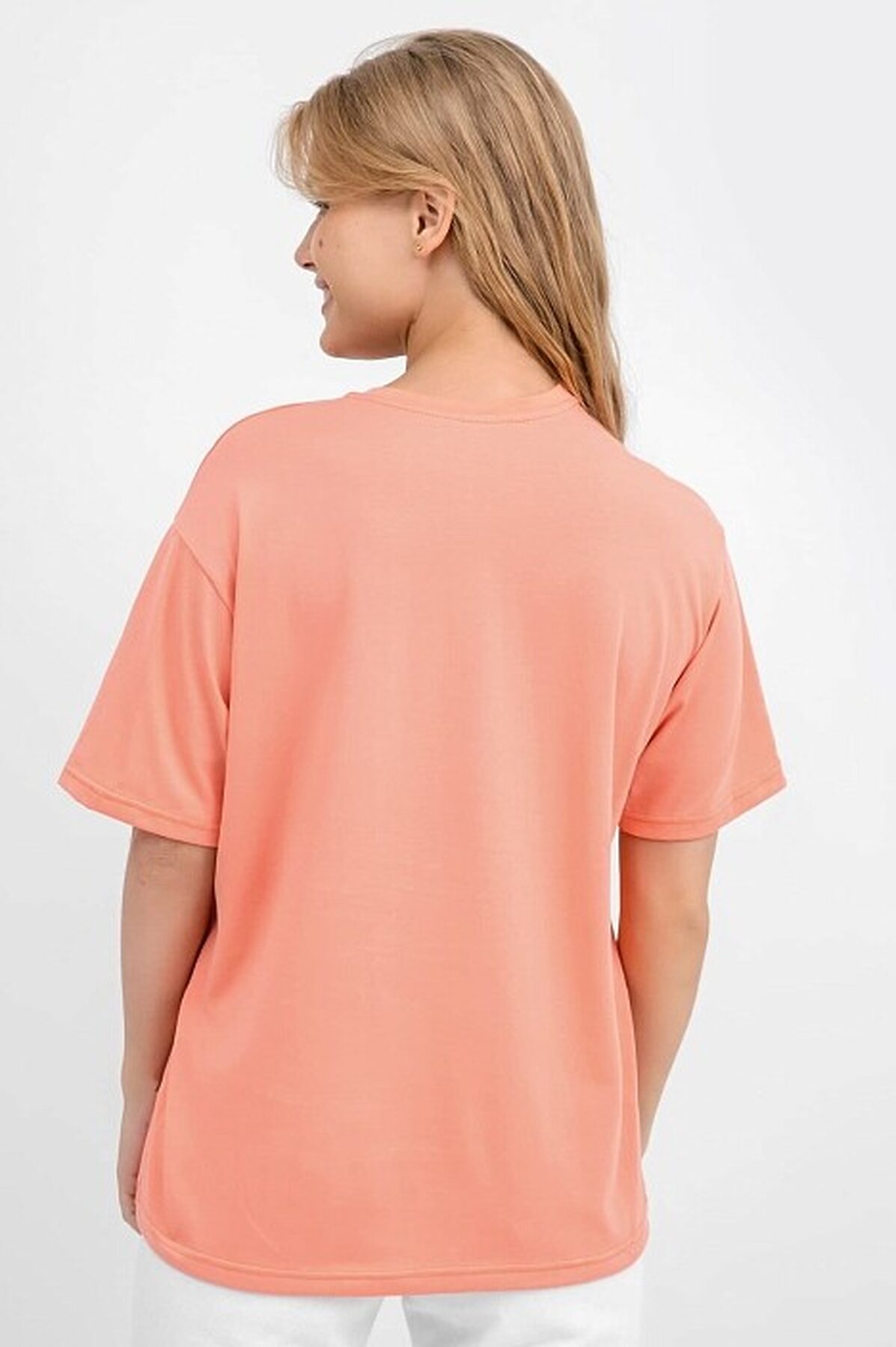 Хлопковая футболка свободного силуэта из трикотажного полотна кулирка. Горловина круглой формы. Свободу движений гарантируют спущенная линия плеча и углубленная пройма. Рукава широкие, чуть выше локтя. Стильная модель!