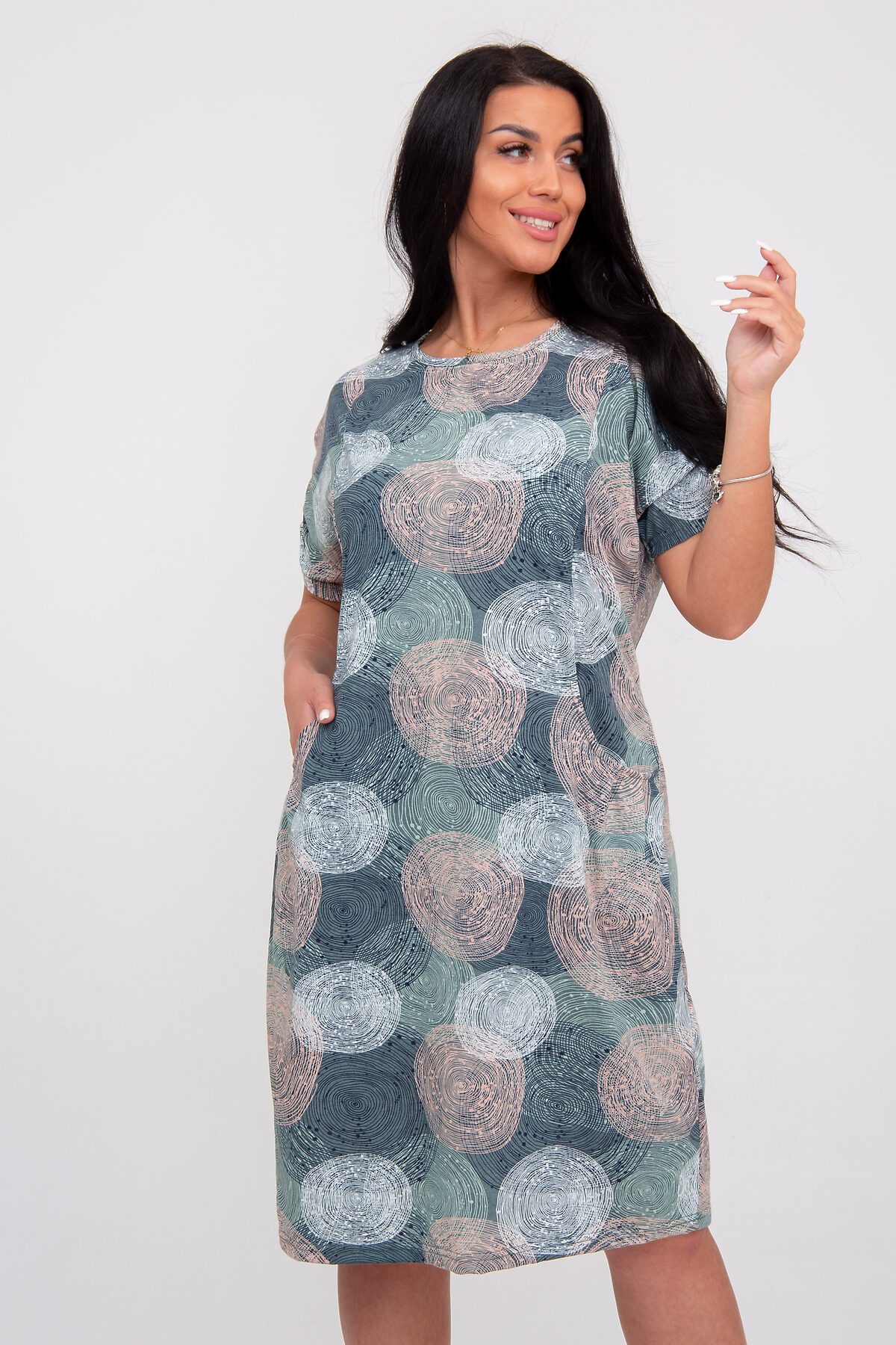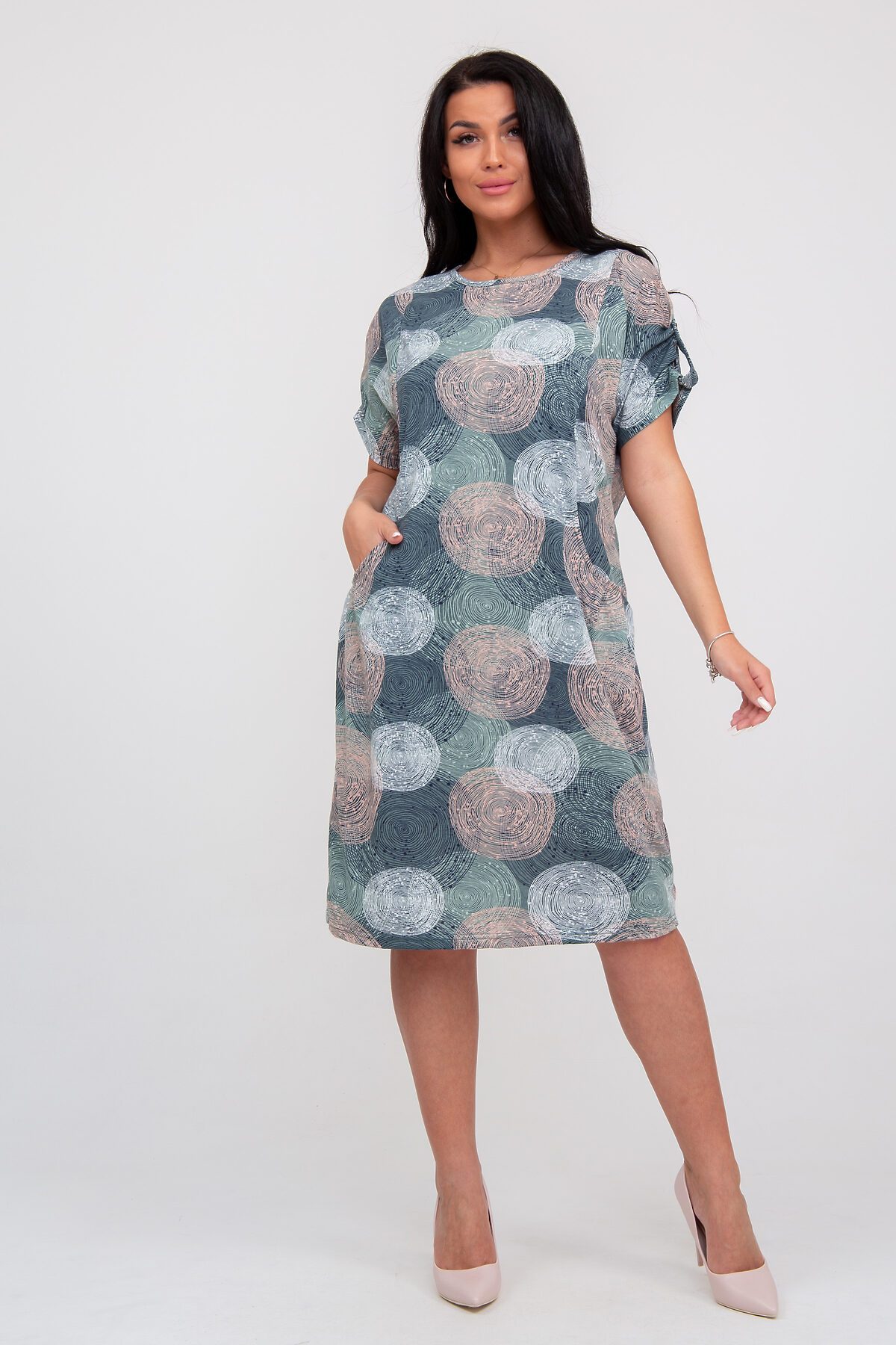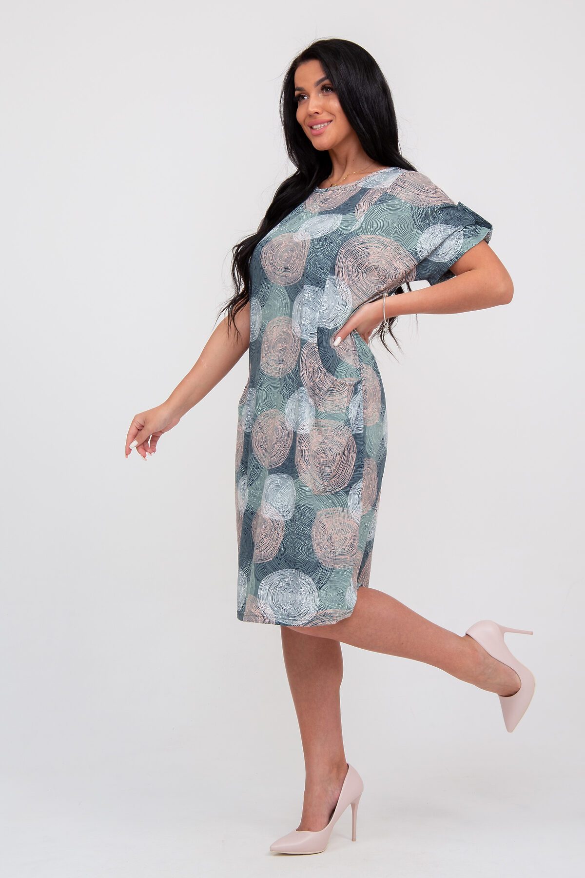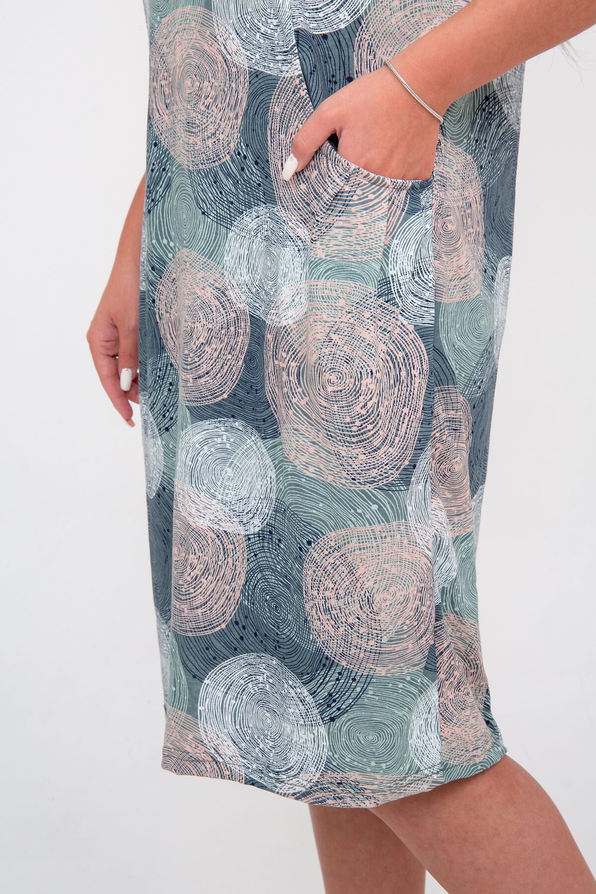 Платье свободного силуэта с рельефом, переходящим в карман. На рукавах имеются паты с пуговицами. Длина платья - ниже колен.