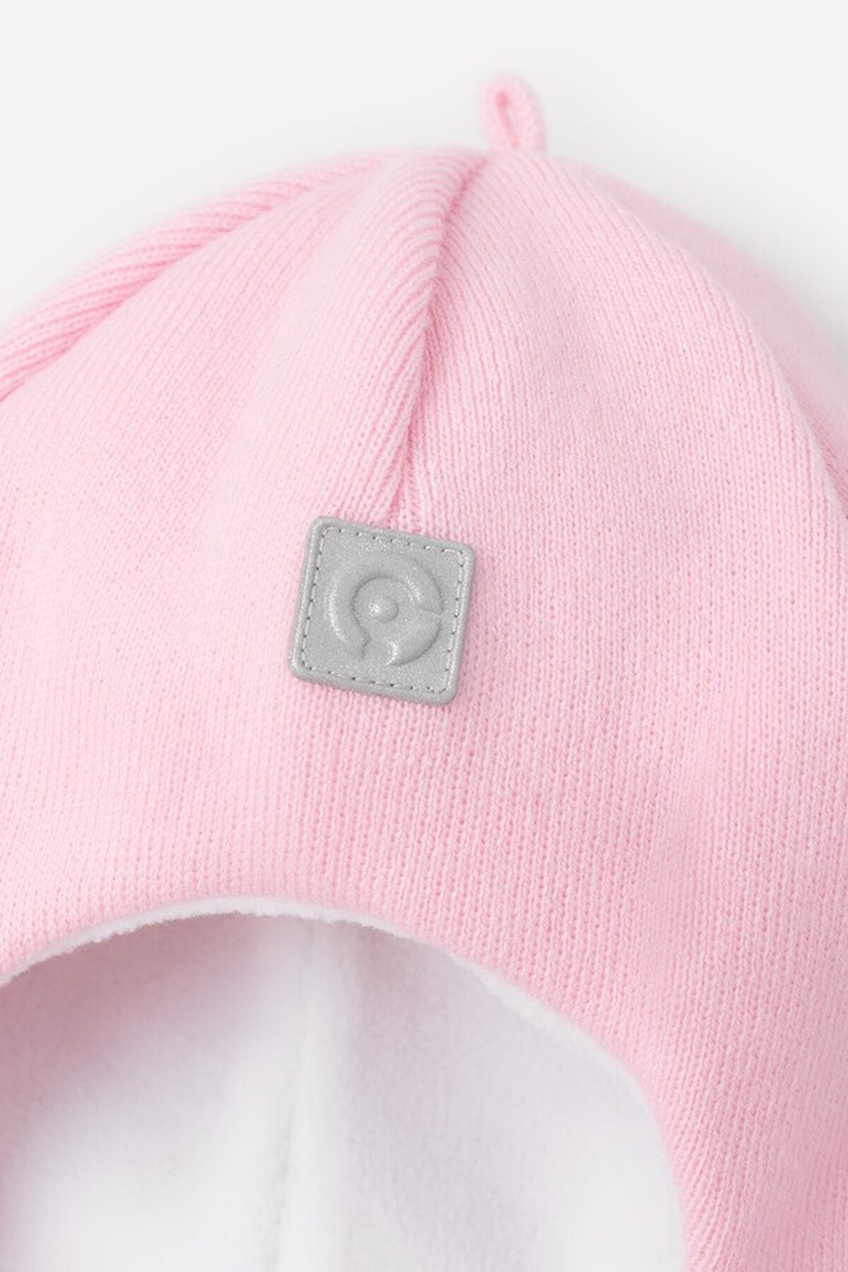 Шапка-шлем с мягким флисовым подкладом для девочки. Подойдёт для прохладного межсезонья и небольших морозов. Она удобна для самостоятельного одевания и полностью закрывает голову, уши и шею, защищая ребёнка от холодного воздуха и ветра. Спереди прикреплён светоотражатель, который обеспечивает дополнительную безопасность в тёмное время суток. На макушке рулик.