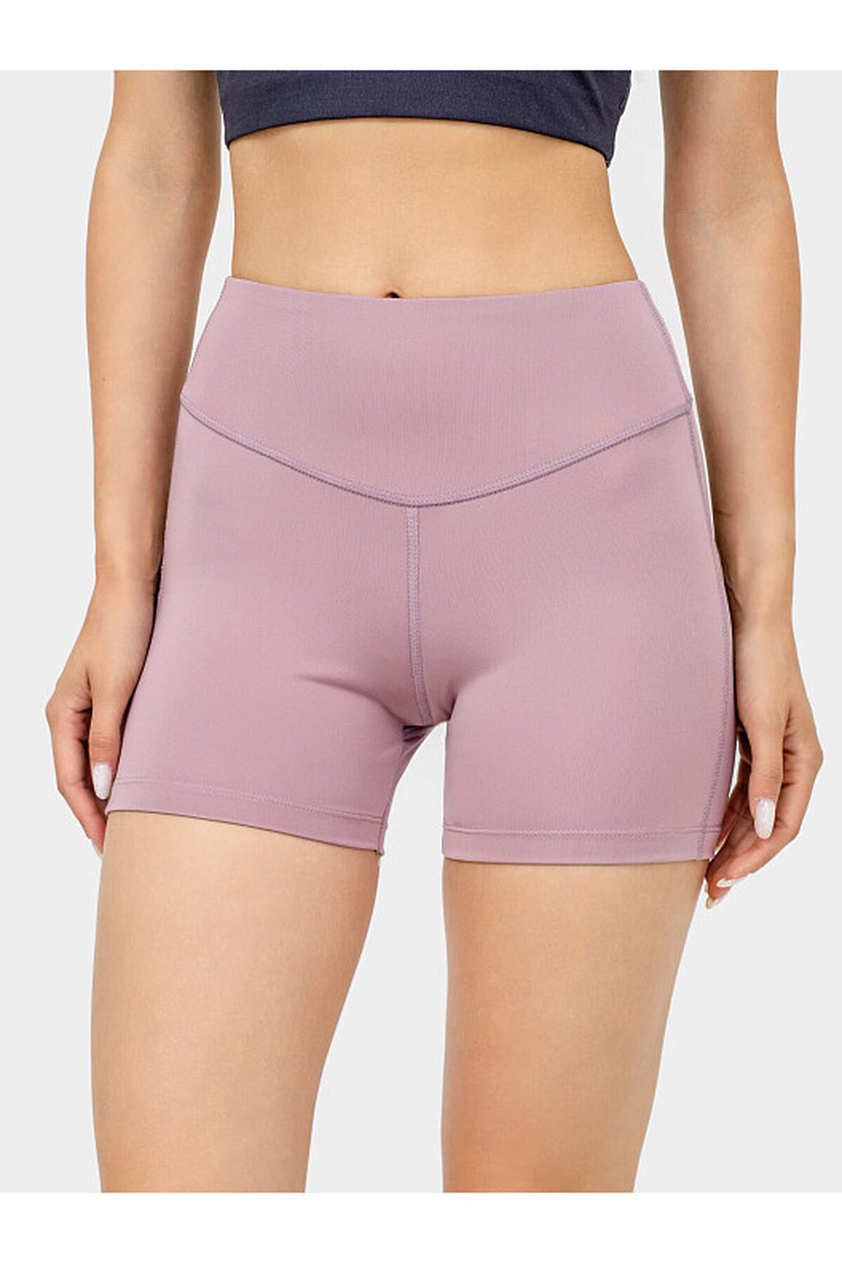 Короткие шорты из трикотажного интерлока. Силуэт облегающий, линия талии – высокая. Широкий фигурный пояс с эластичной тесьмой внутри дарит абсолютный комфорт. Боковые швы перенесены вперед. Нижние срезы подогнуты. Отличные шорты для спорта и активного отдыха!