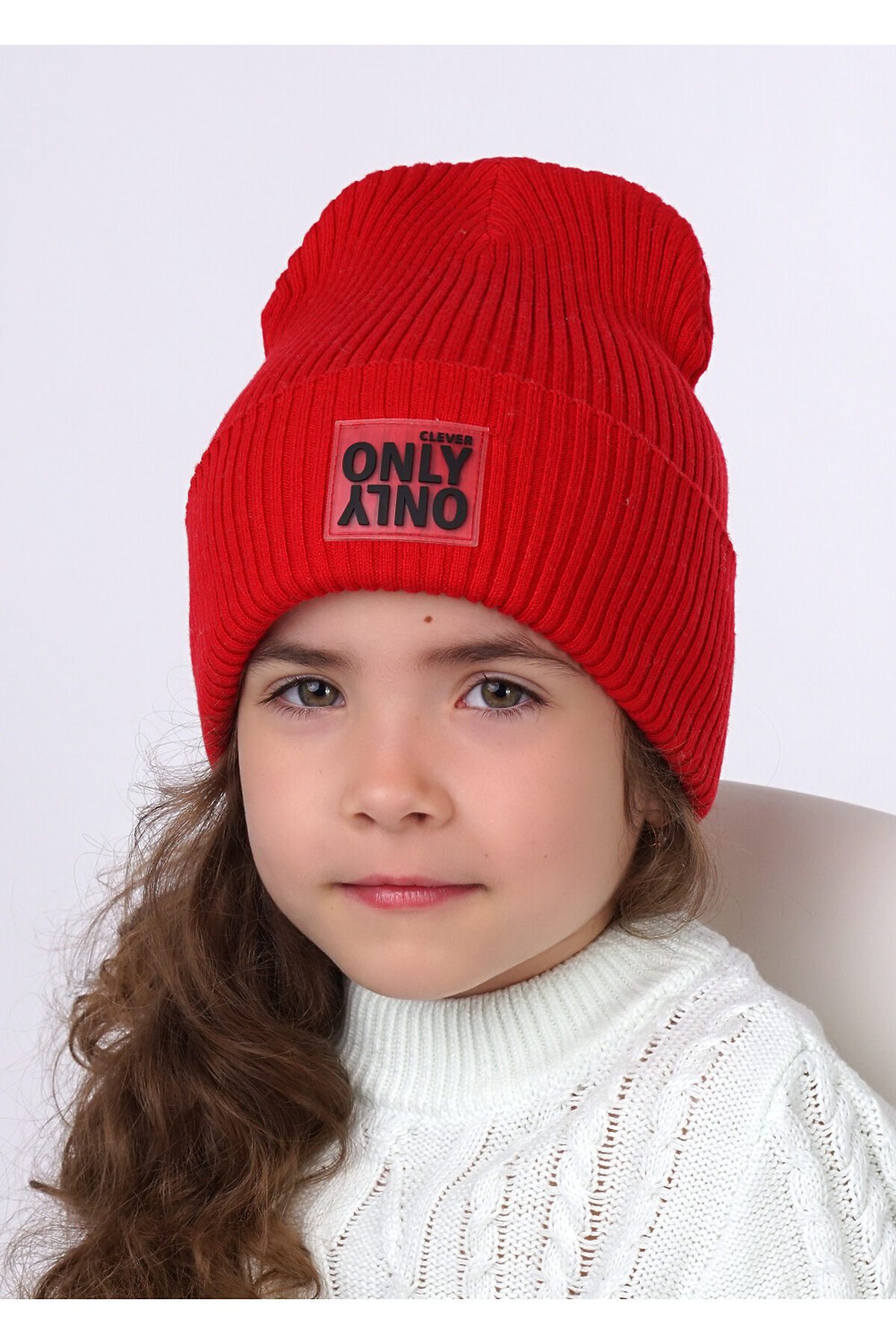 Стильная детская двойная шапка с отворотом, связанная ластичным переплетением, декорирована силиконовой нашивкой в центре.