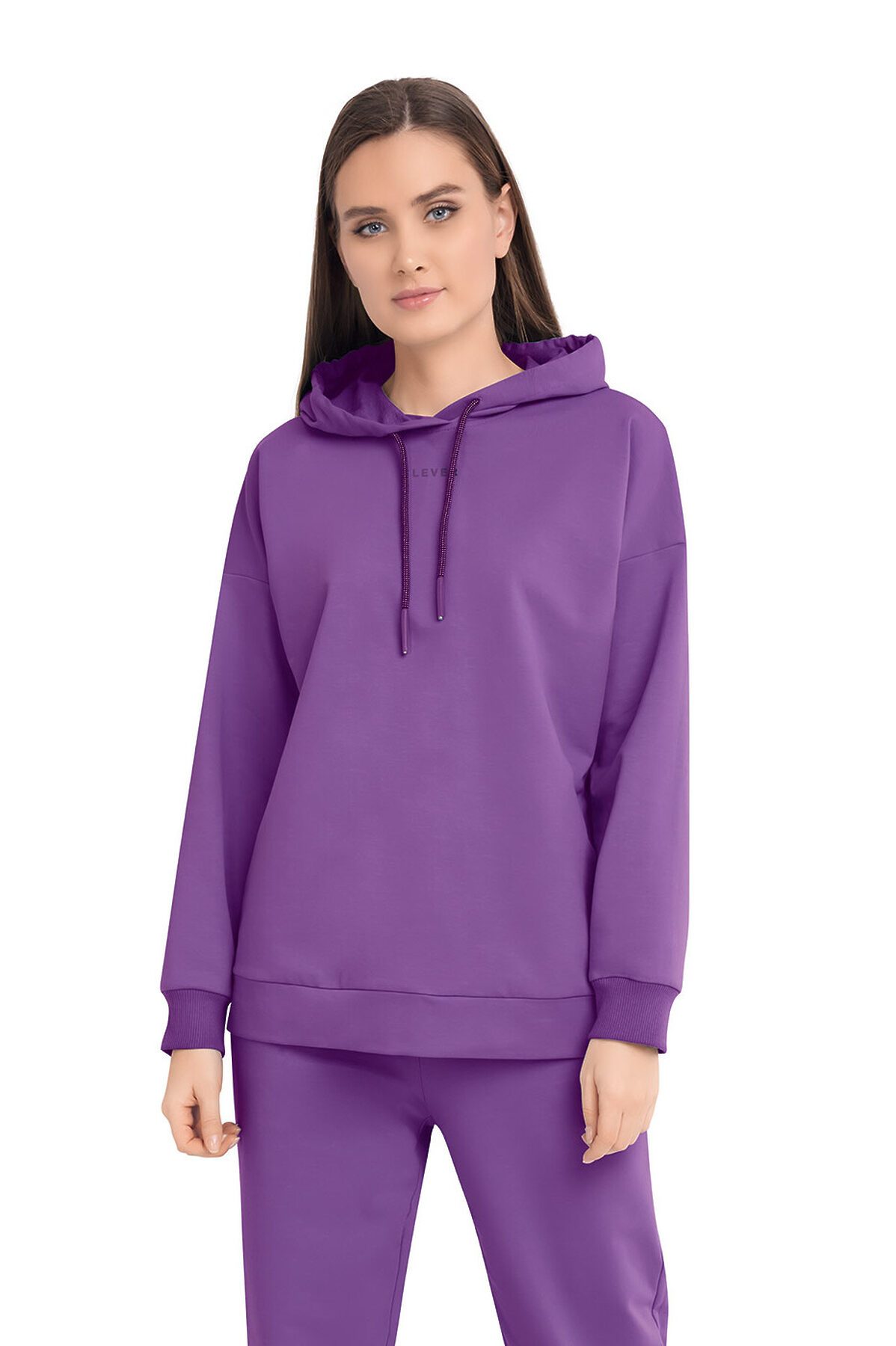 Толстовка с капюшоном из футера умеренного объёма. Рукав покроя реглан, по низу рукава манжет, по низу изделия пояс. Модель украшена прорезиненным принтом, в капюшон вставлен шнур в цвет полотна.