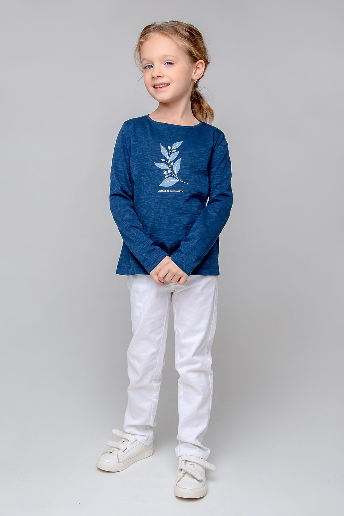Джемпер для девочки из высококачественного натурального хлопка с эффектом слаб. У изделия длинные втачные рукава. Для удобства в размерах 98 и 104 имеется застежка на кнопки на плече. Оригинальный принт выполнен из стойких текстильных красителей. Изделие сохраняет цвет и форму после многократных стирок.