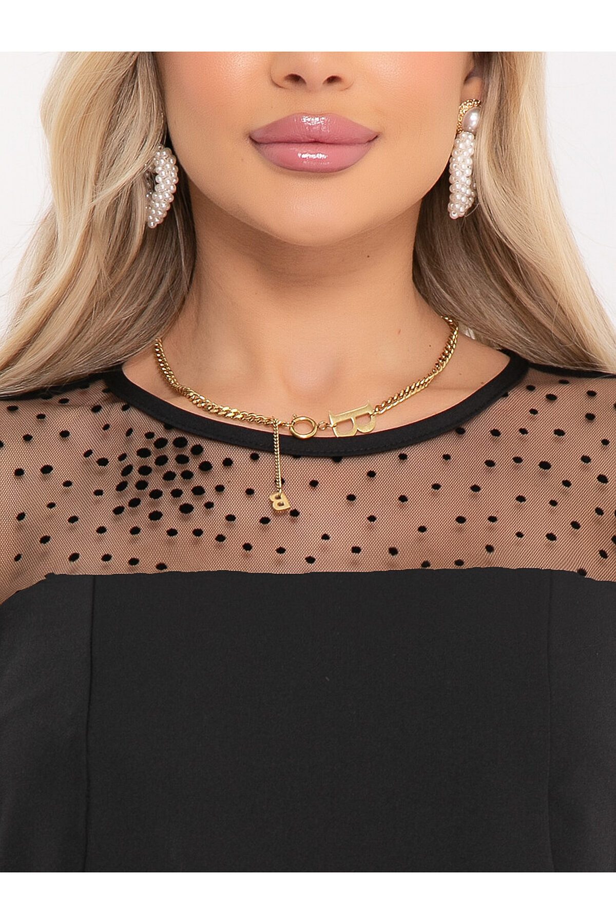ЭТТОРИЯ - нарядное платье А-силуэта из плательной ткани. Вырез горловины классический овальный. Сверху - сетка, переходяща в руква, и придающая образу нарядность и сексуальность. Будьте незабываемой вместе с "