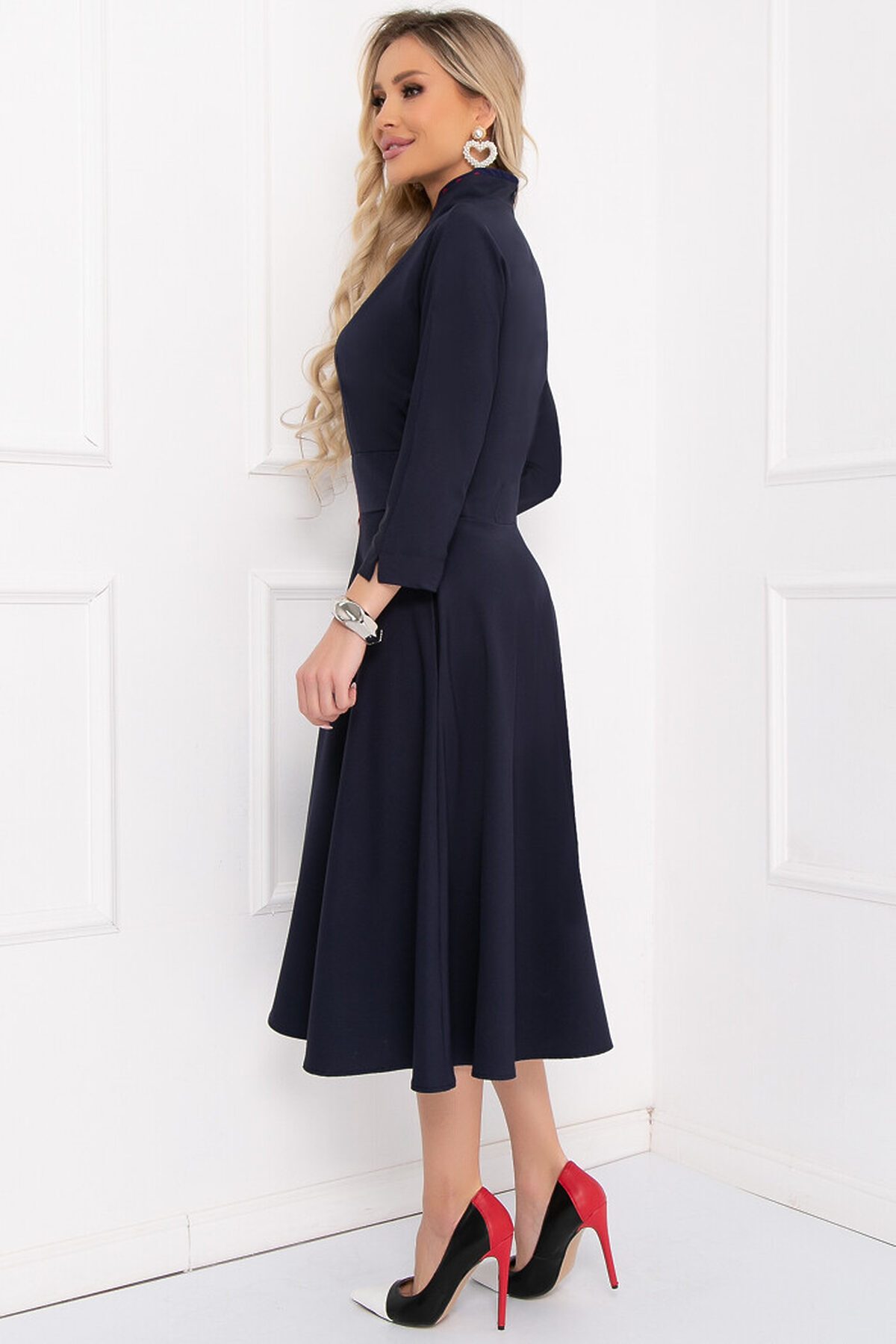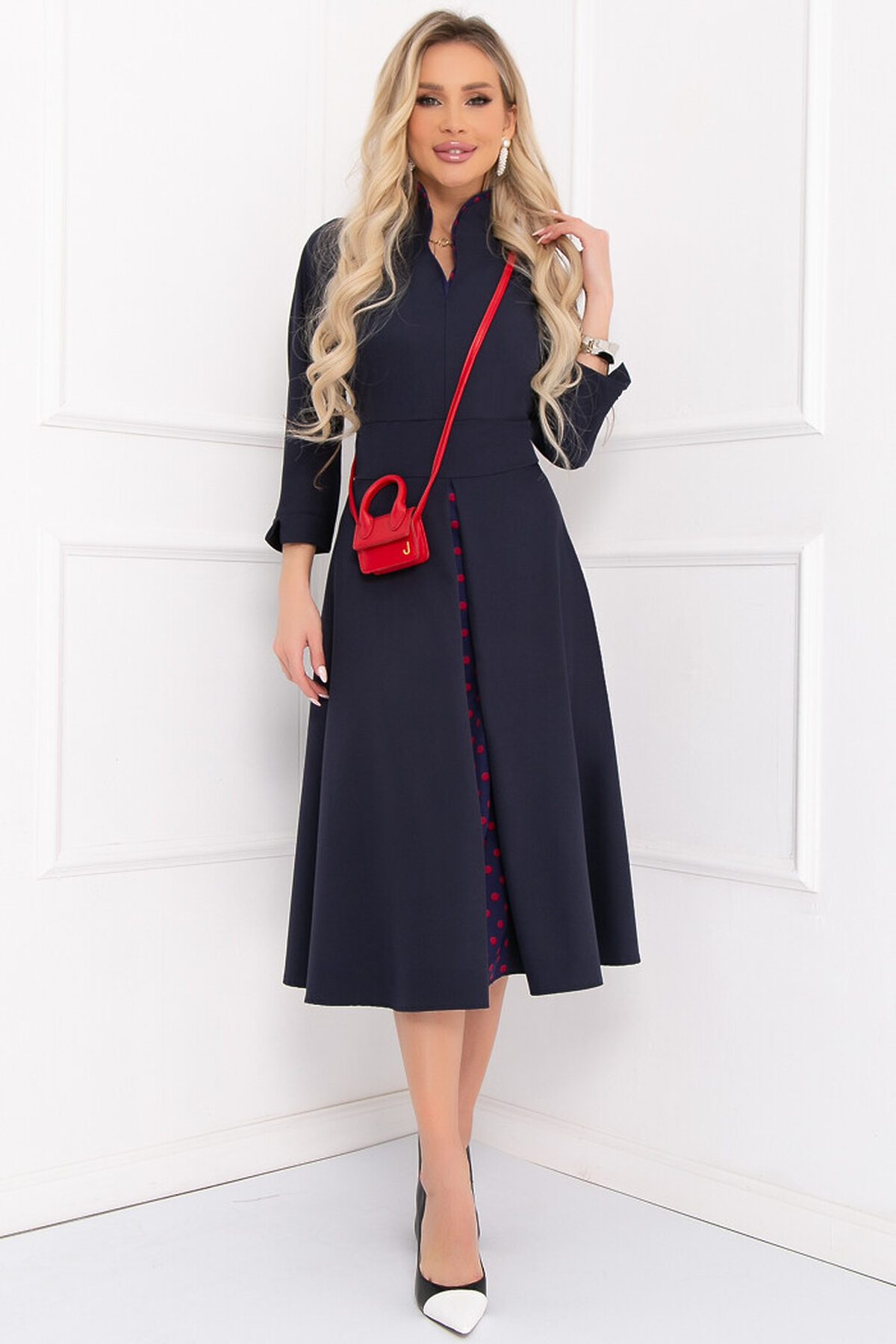 АРНАЛЬДА - невероятно женственное платье приталенного силуэта из плательной ткани. Вырез горловины v-образный, с оконтовкой и воротником-стойкой, переходящим в потайную молнию. Юбка - полусолнце, с клином по переду и принтом "горох". В боковых швах - карманы. По переду - вточной пояс. Рукава 3/4, с разрезами. Будьте неподражаемой вместе с "