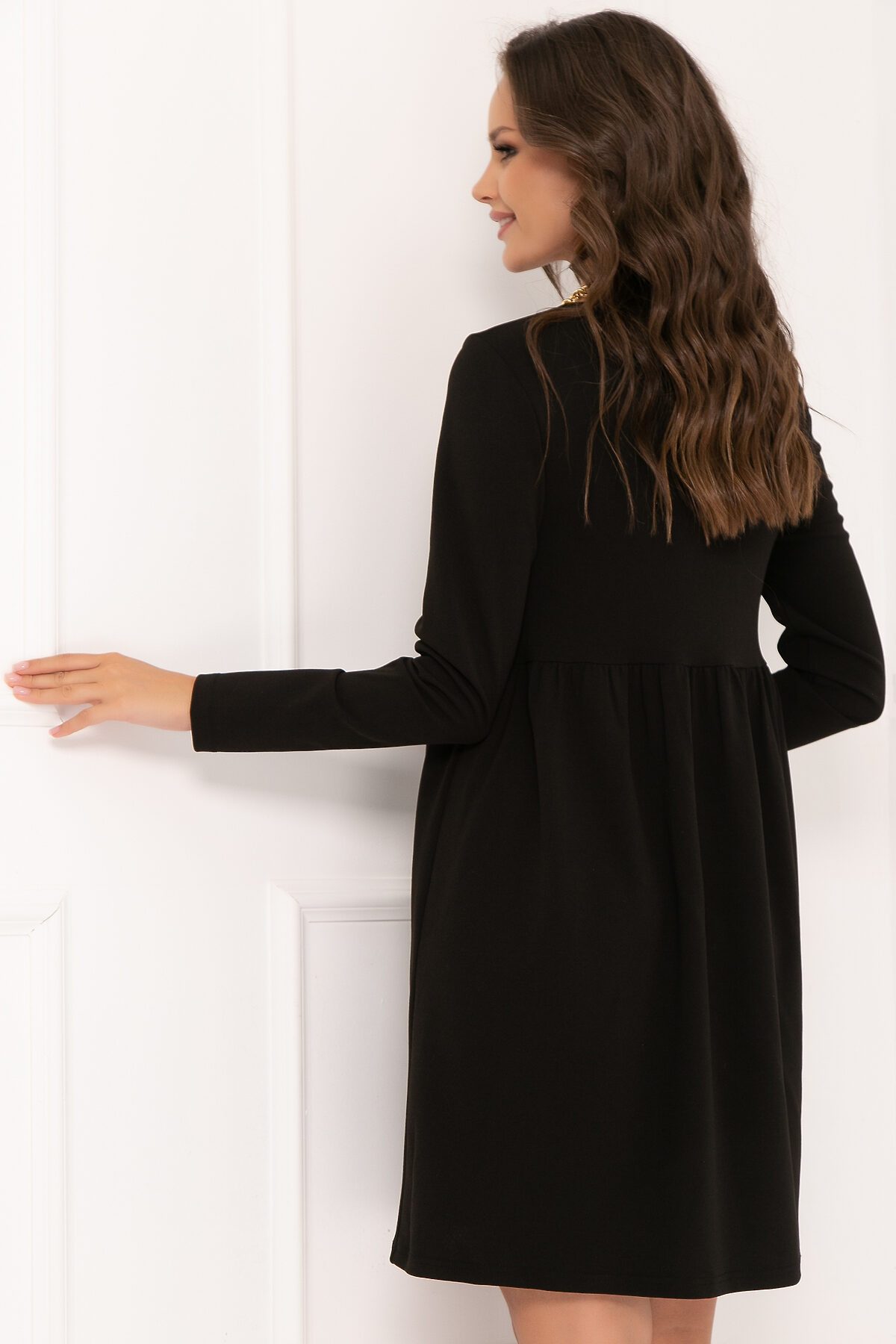 Итэлия - платье свободного силуэта из трикотажной ткани. Округлый вырез горловины обработан изящной окантовкой. Рукава втачные, одношовные. Талия завышена. По линии талии присборена юбка.