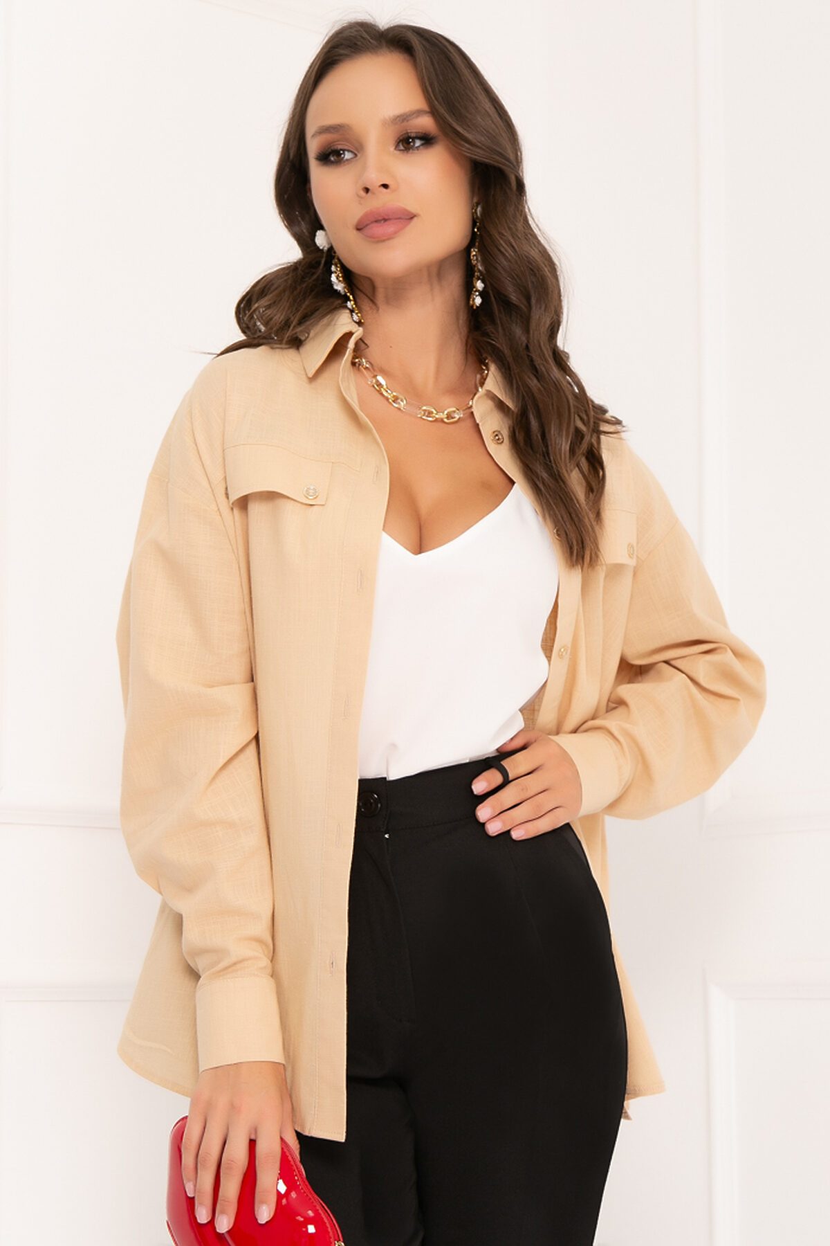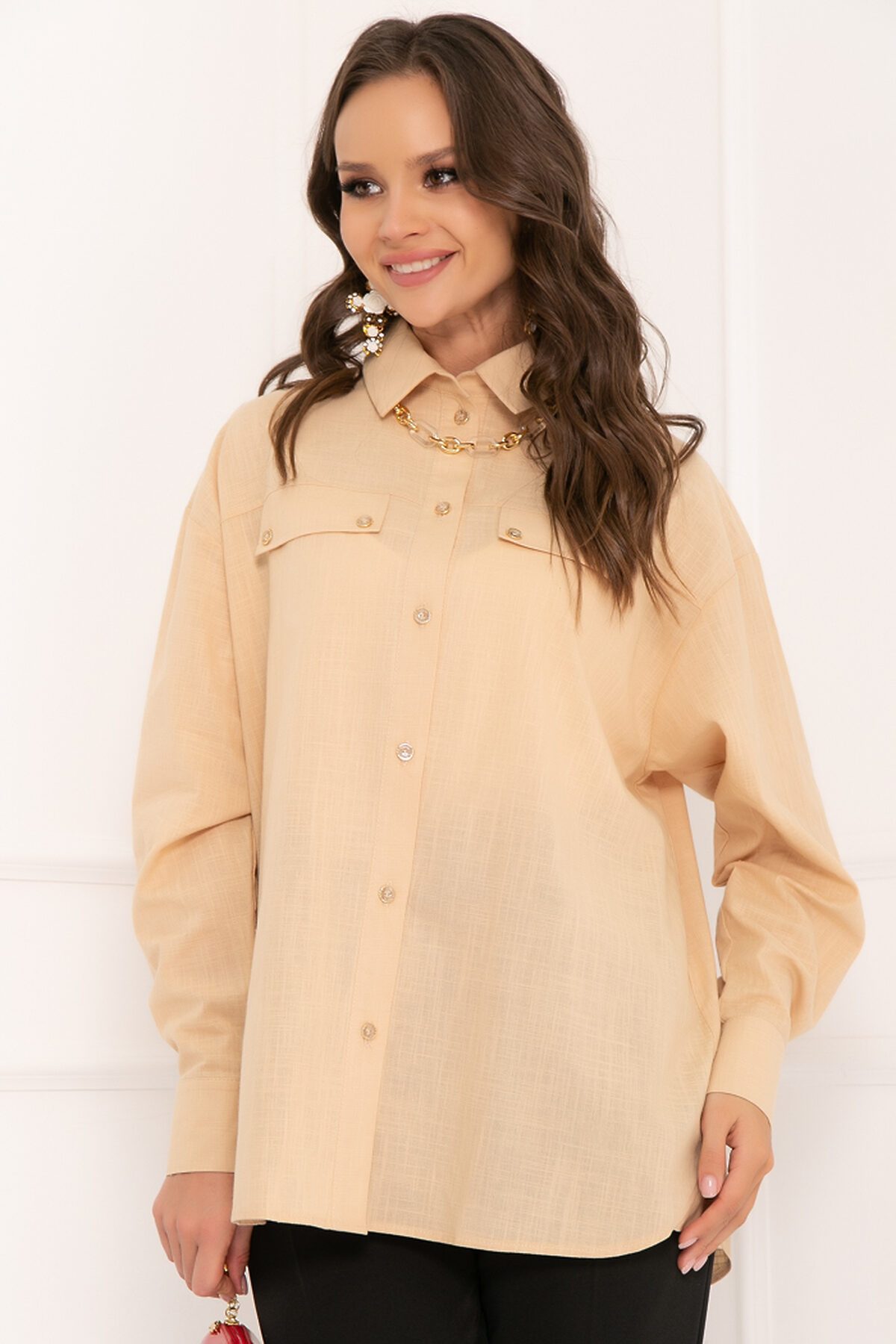Будрио - рубашка «оверсайз» из хлопковой ткани. Воротник на стойке. Рукав втачной, обработан манжетой на пуговицах. Застёжка - пуговицы. Впереди два декоративных элемента в виде карманов, сзади по спинке заложена складка. Боковые швы по низу закруглены. Великолепно дополнит различные элементы гардероба! Выбирайте bellovera и Вы всегда будете в центре внимания!