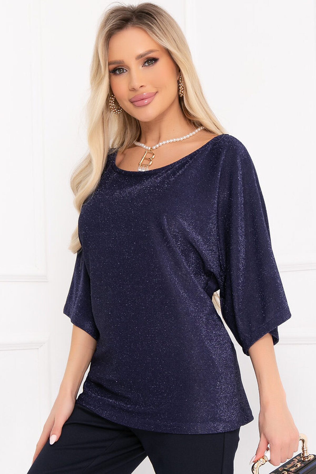 Дэлли – блузка свободного силуэта из трикотажной ткани с люрексом. Вырез горловины классический овальный, оторочен по краям кантом в основной цвет блузы. Рукава широкие, цельнокроеные. Блузка великолепно сочетается с различными элементами гардероба: брюками, джинсами, юбками. Чувствуйте себя элегантно и ярко вместе с “Белловера”!