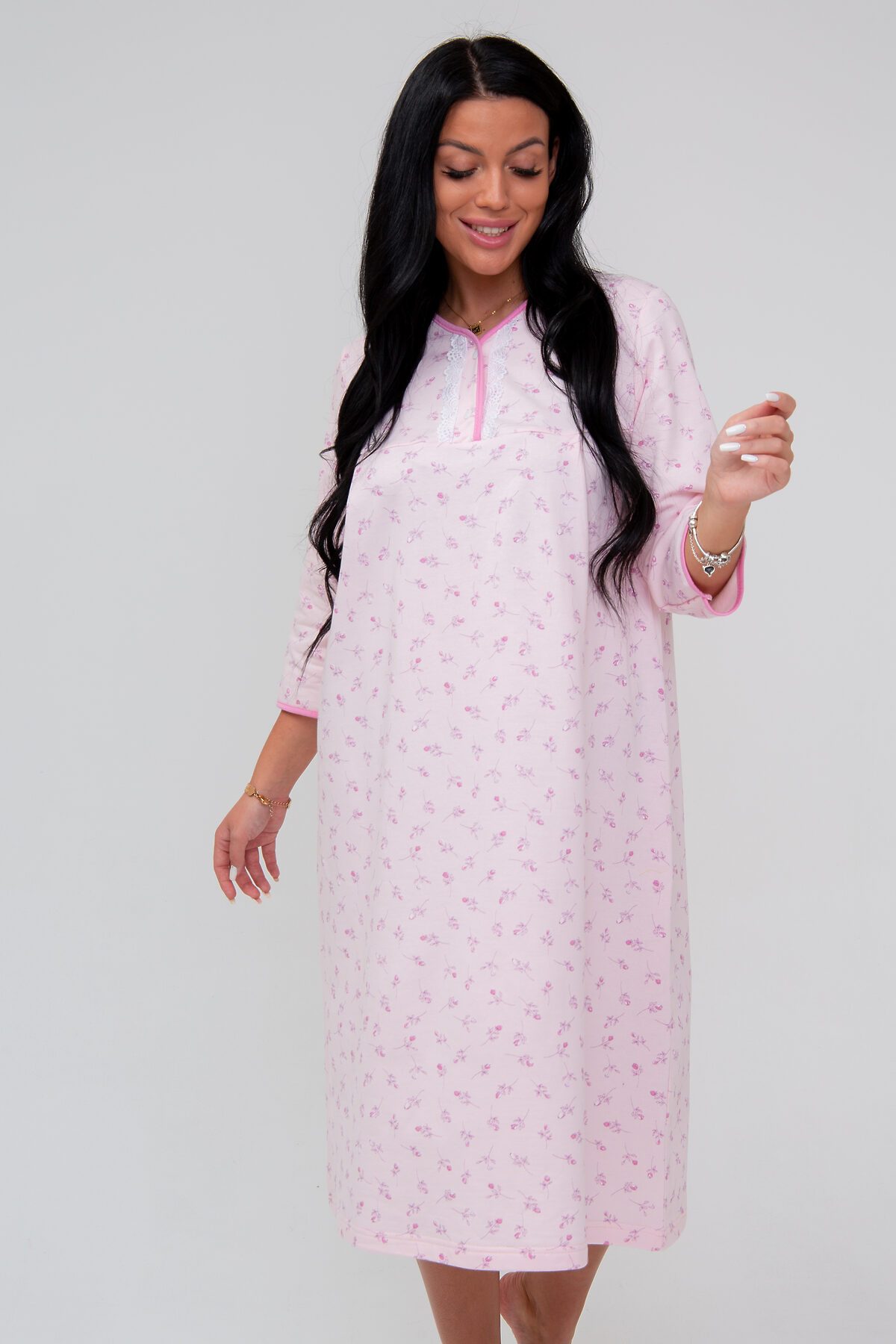 Сорочка женская из футерного полотна с начесом прямого силуэта с длинными втачными рукавами. - кокетка с функциональной застежкой на две пуговицы - планка кокетки украшена кружевом - горловина и низ рукавов обработан окантовкой контрастного цвета - для комфорта в области груди по линии кокетки заложены складки