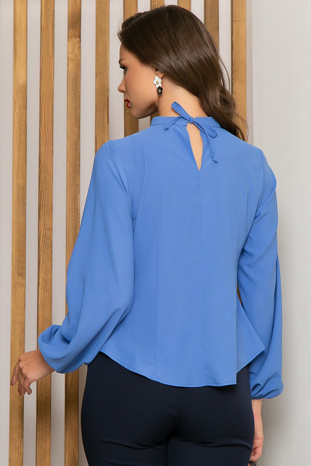 Классическая блуза для создания элегантного делового образа. Воротник-стойка с драпировкой по переду гармонично сочетается с объемным рукавом. Низ блузы по переду и спинке скруглён. Такую модель можно носить навыпуск или под заправку, сочетая её с брюками или юбкой-карандаш.