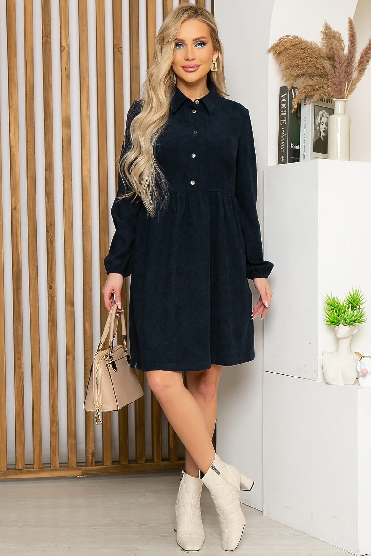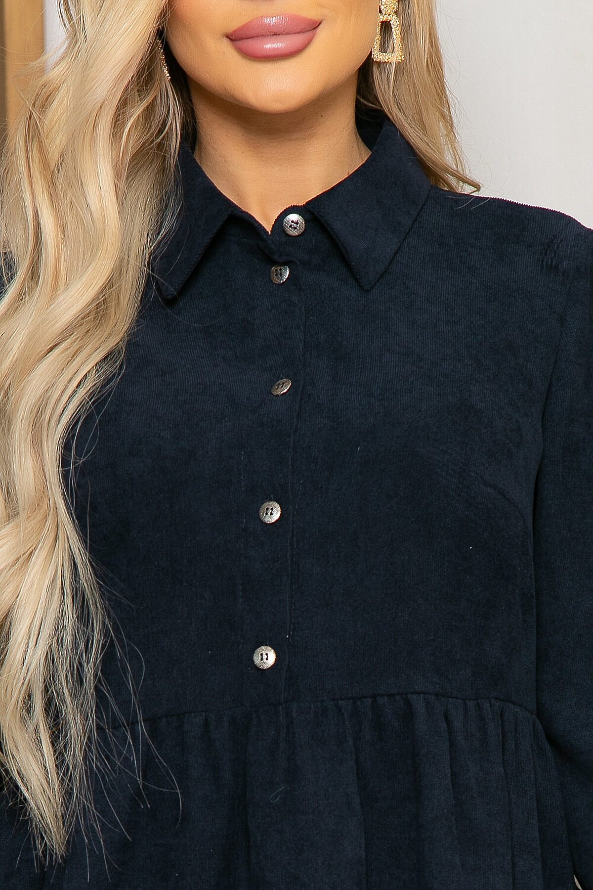 Очаровательно платье из вельвета обязательно впишется в ваш повседневный гардероб. Модель имеет комфортный длинный рукав на резинке. Юбка состоит из ниспадающих воланов. Линия талии слегка завышена, по переду платья планка, застёгивающаяся на функциональные пуговицы.