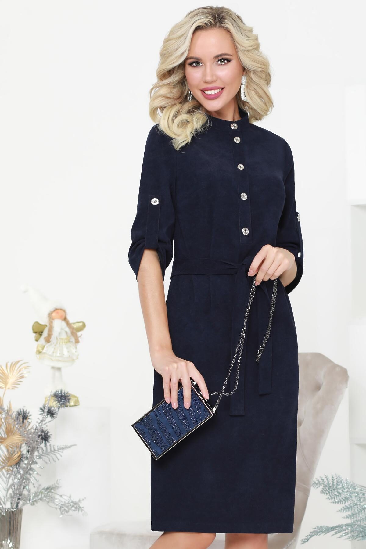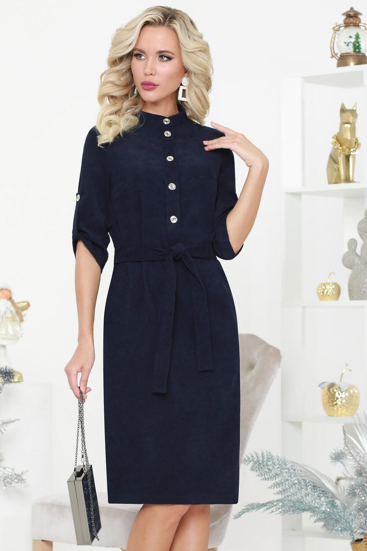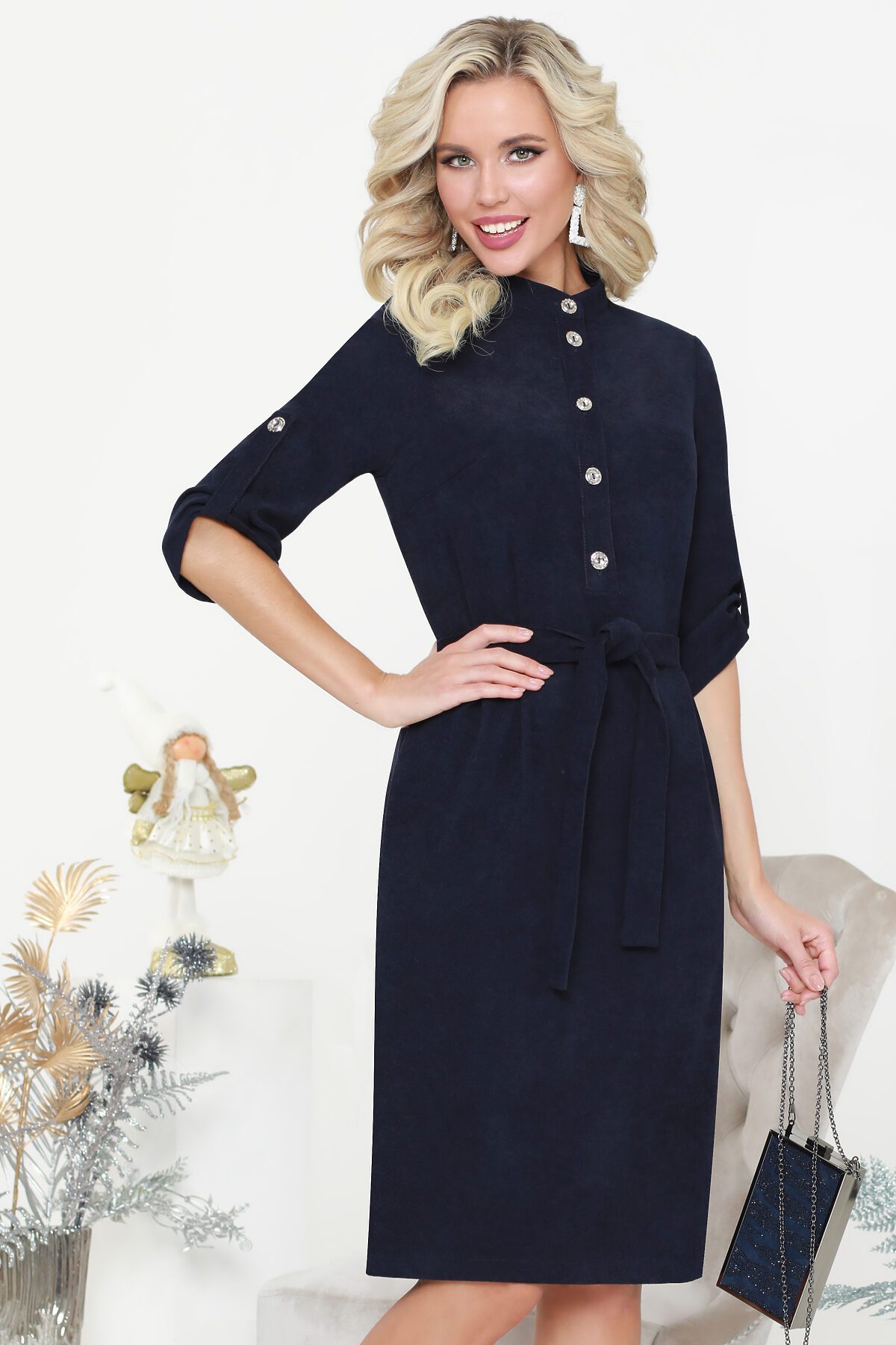 Элегантное платье для уверенных в себе девушек! Талия регулируется поясом. Контрастные пуговицы украшают планку с воротником-стойкой и паты на рукавах, подобранных чуть выше локтя. Сделайте свой стильный выбор! Длина: 46 размер - 98 см 48 размер - 98 см 50 размер - 99 см 52 размер - 99 см 54 размер - 100 см 56 размер - 100 см Рост модели на фотографии 170 см.