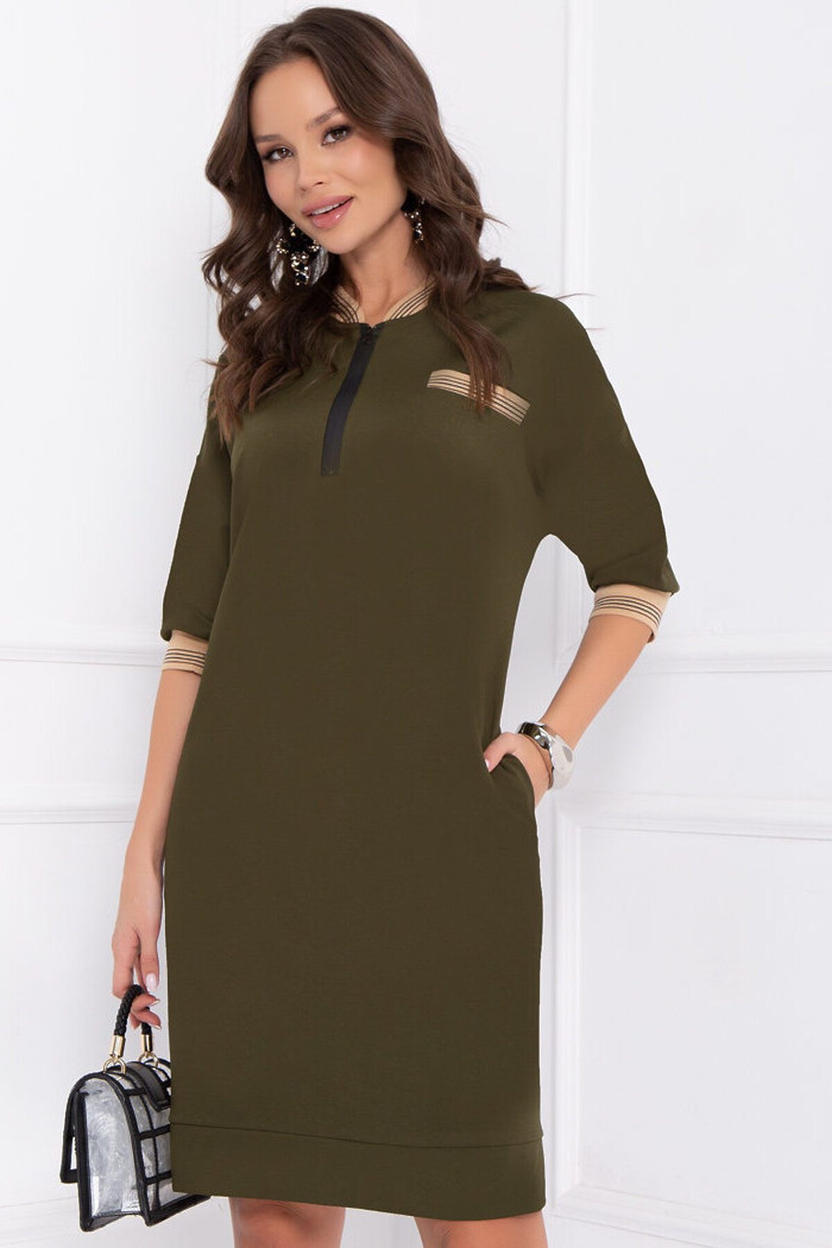 Рукава 3/4, со спущенной линией плеча. В боковых швах – функциональные карманы.