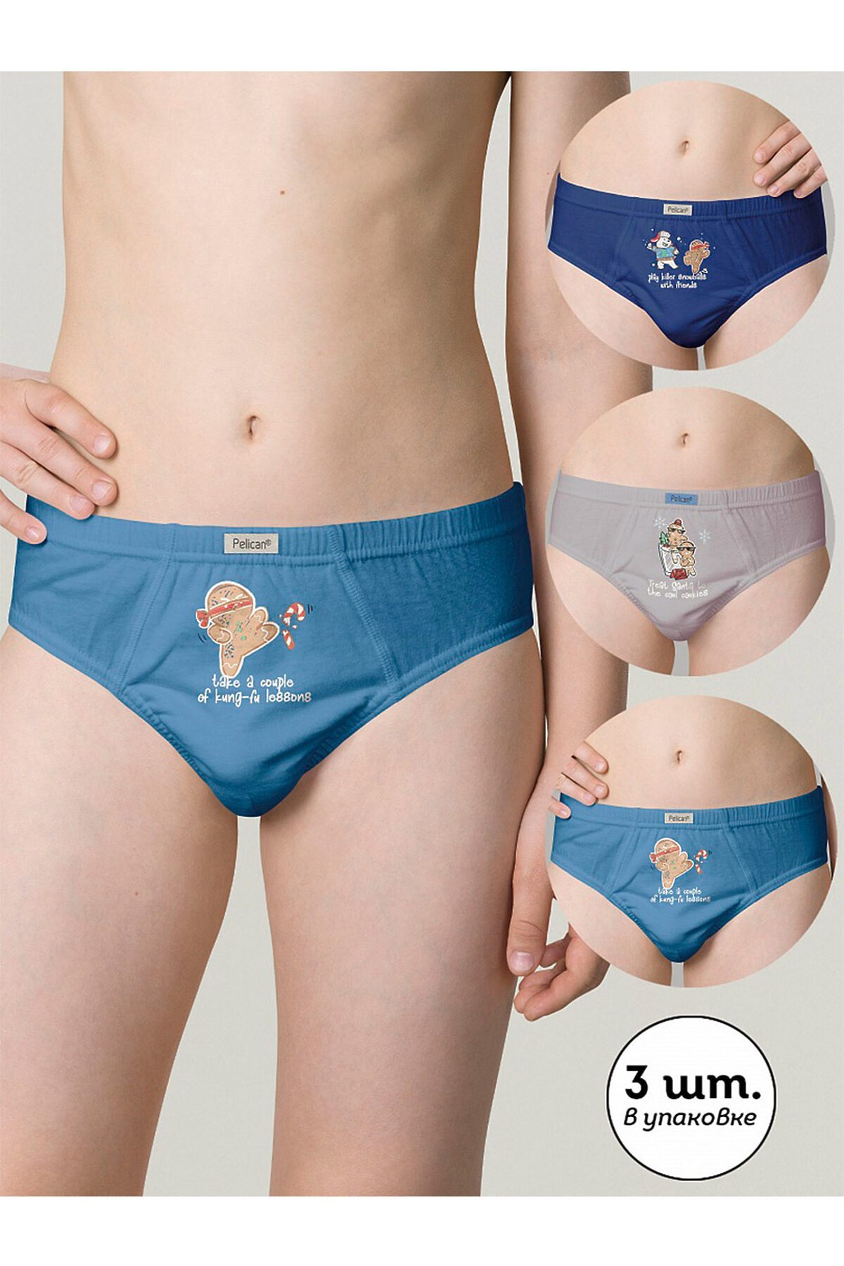 Трусы, 3 шт. PELICAN, серый/голубой/джинс