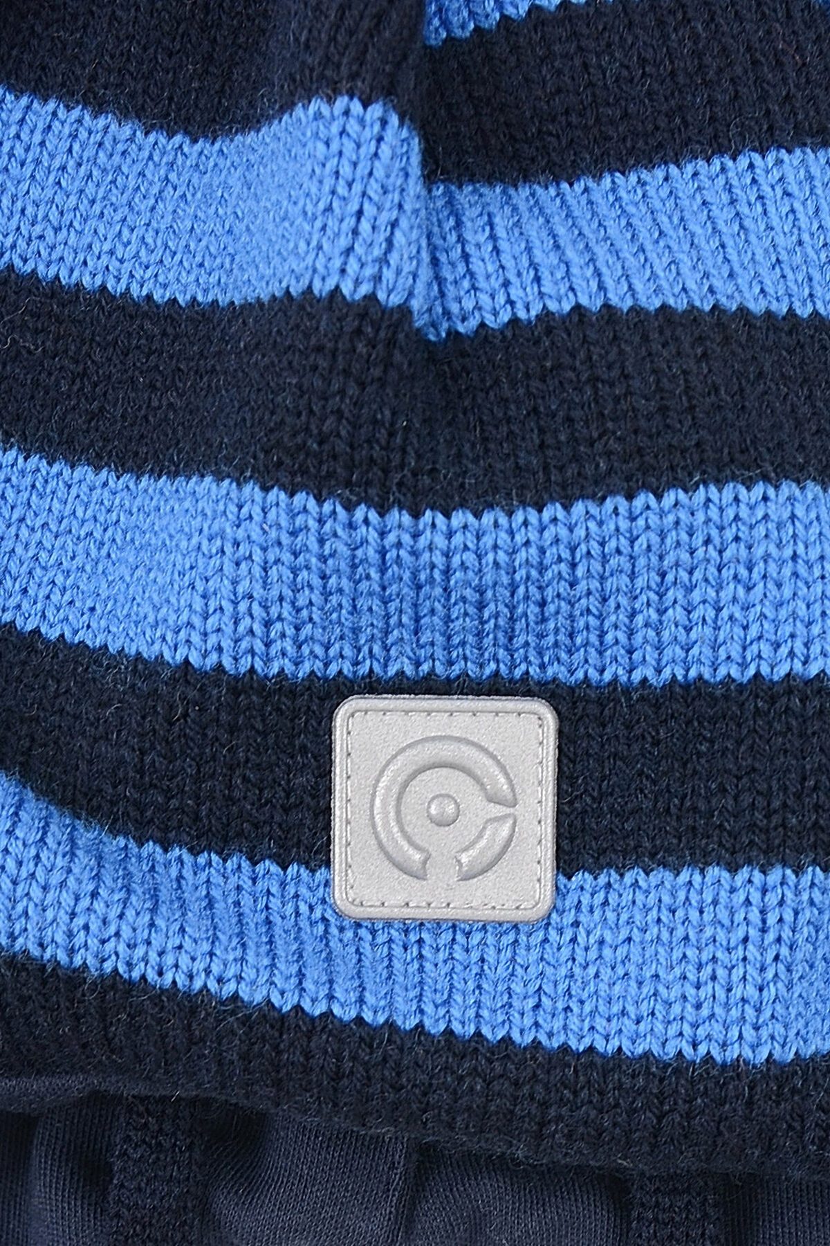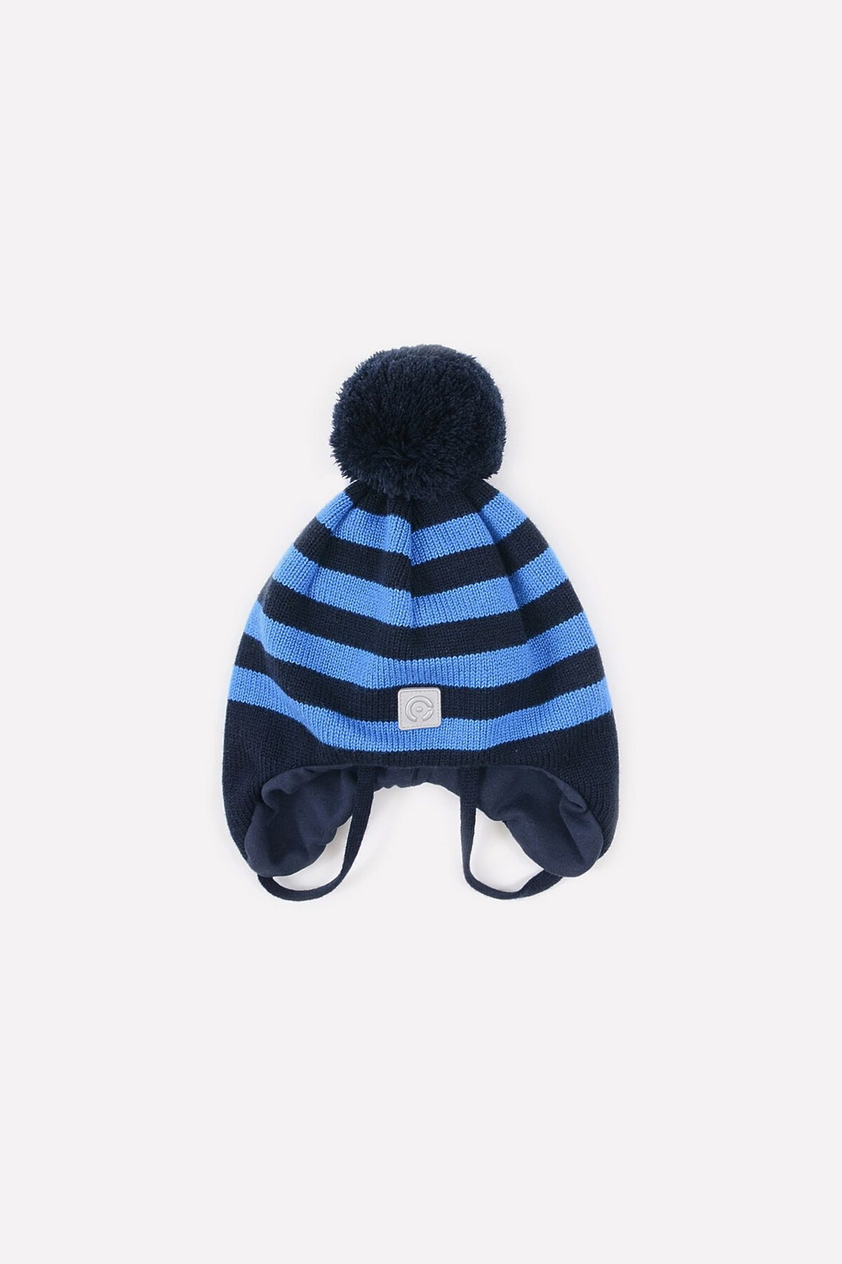 Шапка на завязках с мягким подкладом из интерлока. Подойдёт для прохладного межсезонья и небольших морозов. Украшена вывязанным узором в полоску и помпоном на макушке. Спереди прикреплён светоотражатель, который обеспечивает дополнительную безопасность в тёмное время суток.