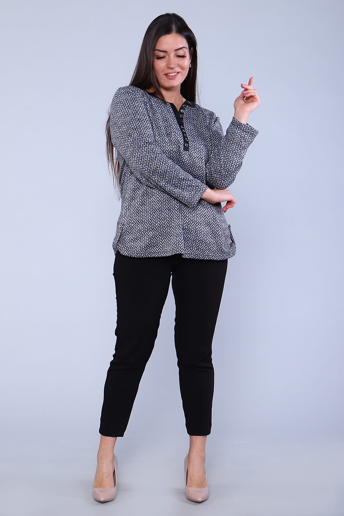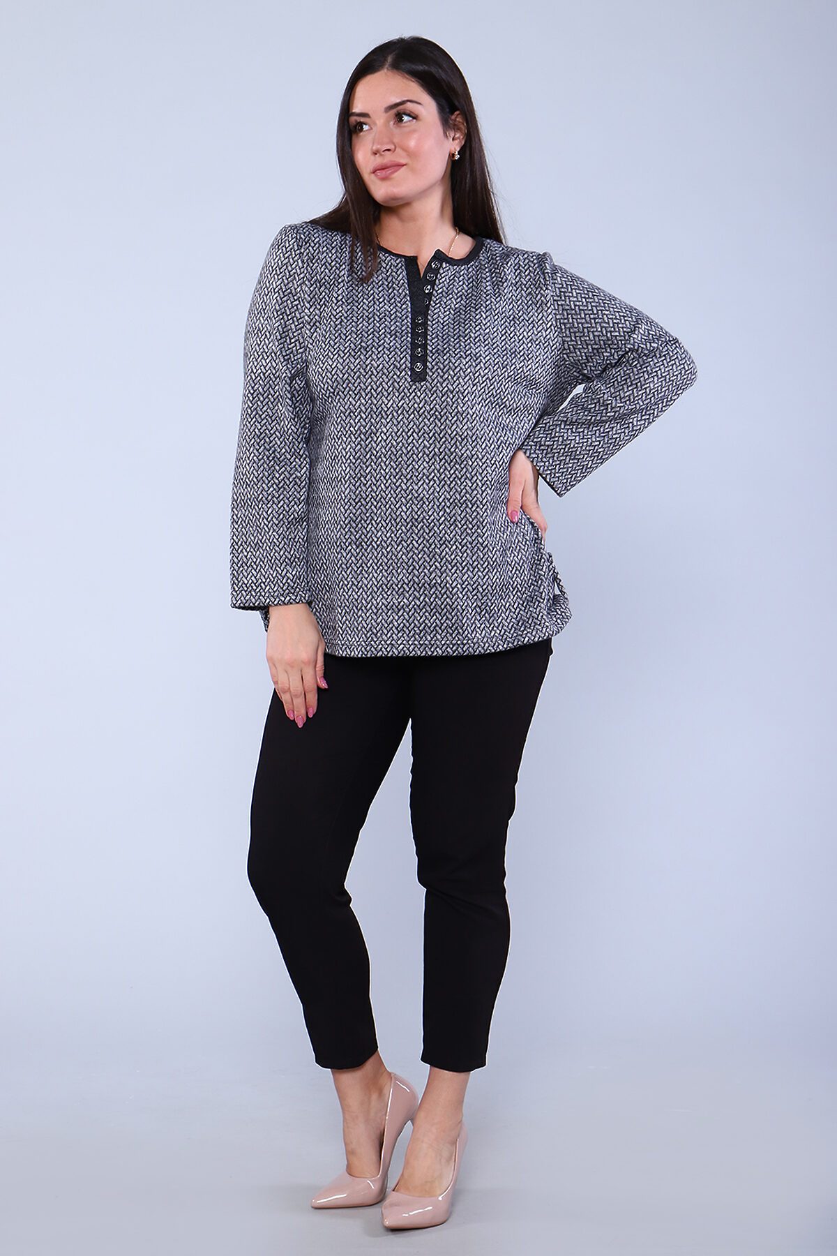 Ангора давно завоевал сердца модниц, выступающих за комфорт. Этот универсальный материал сохраняет форму и легко гладится, на ощупь приятен, прекрасно сохраняет тепло и пропускает воздух. Изделия из ангоры можно надеть куда угодно: от спортивной прогулки до похода в театр. Она везде будет смотреться стильно и уместно. Укороченная туника с имитацией планки на полочке украшенная пуговицами. Низ изделия подобран на паты.