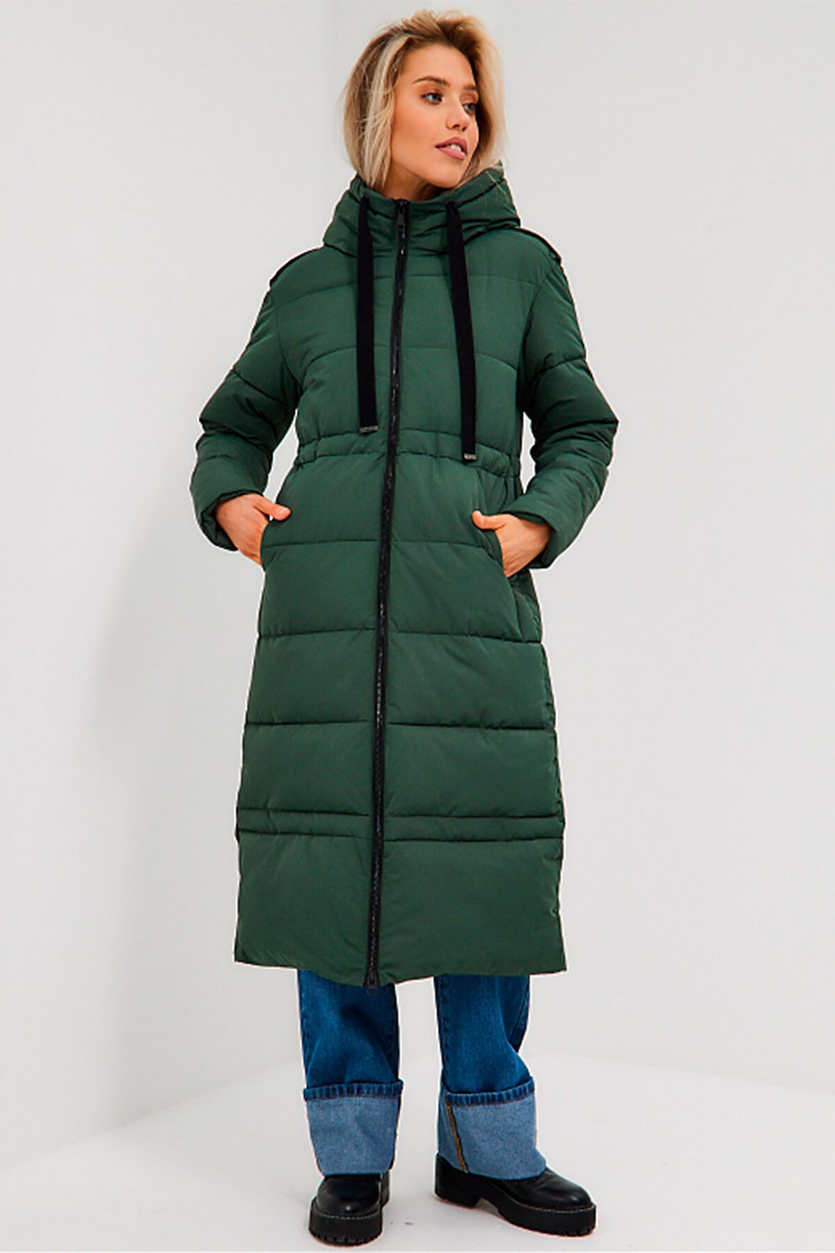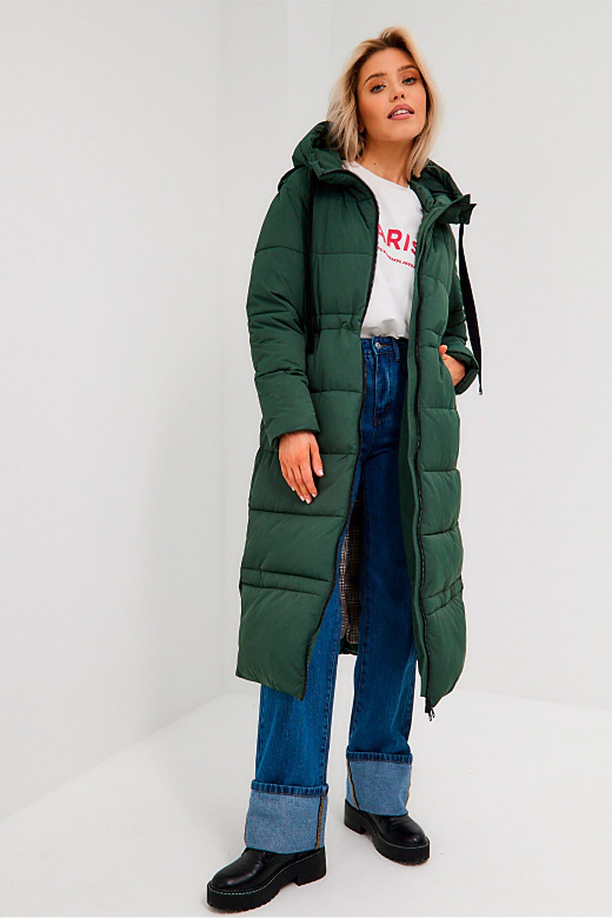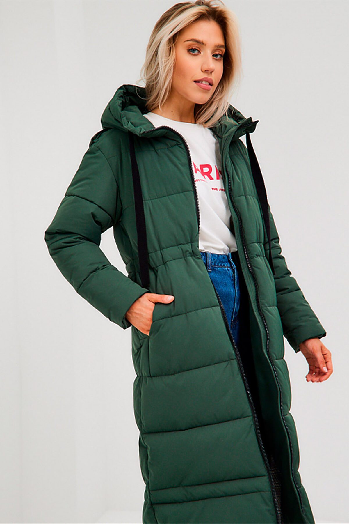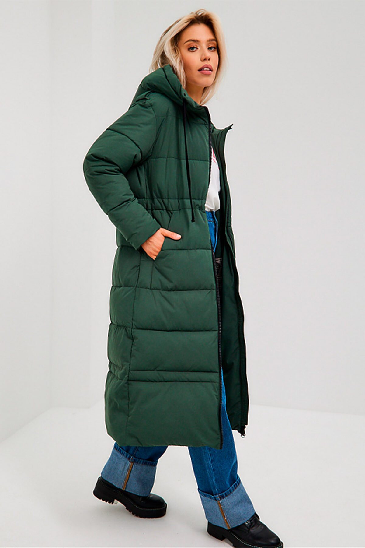 Стильный, теплый пуховик прямого силуэта с застежкой на молнию и втачным капюшоном. Рукав со спущенным плечом, по низу рукава, внутри, идет трикотажная манжета. Имеются два удобных прорезных кармана на магнитах. По талии, внутри изделия, имеются утяжки. Есть внутренний карман. Ткань изделия обработана водоотталкивающей пропиткой. Утепление нового поколения Био-пух 350 гр., рекомендуемый температурный режим от -25°C до -5°C. Длина изделия: 117 см. Длина рукава: 64 см.