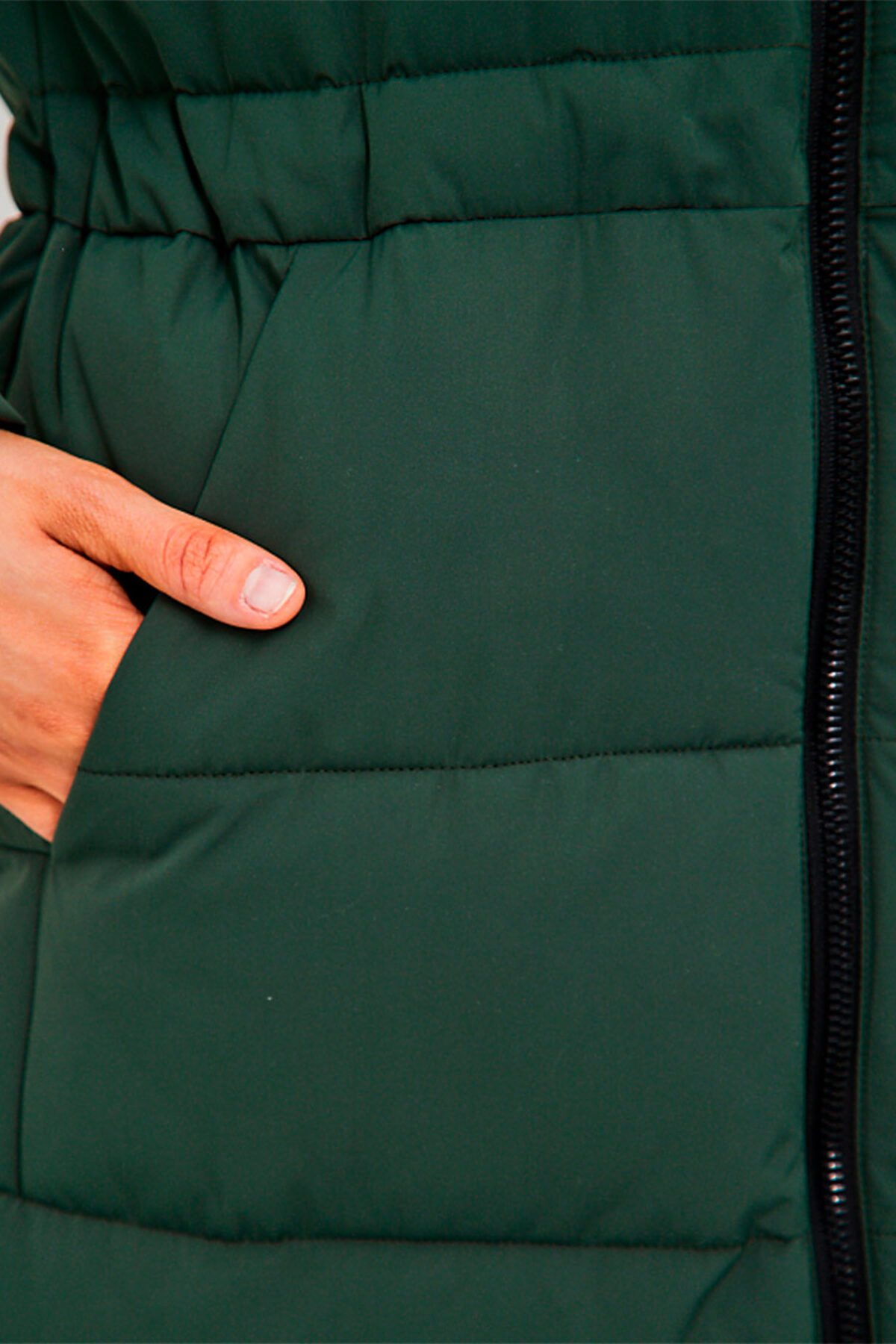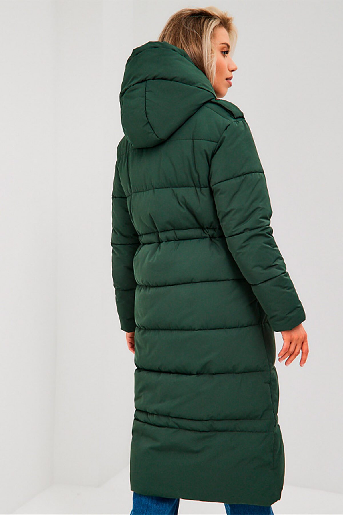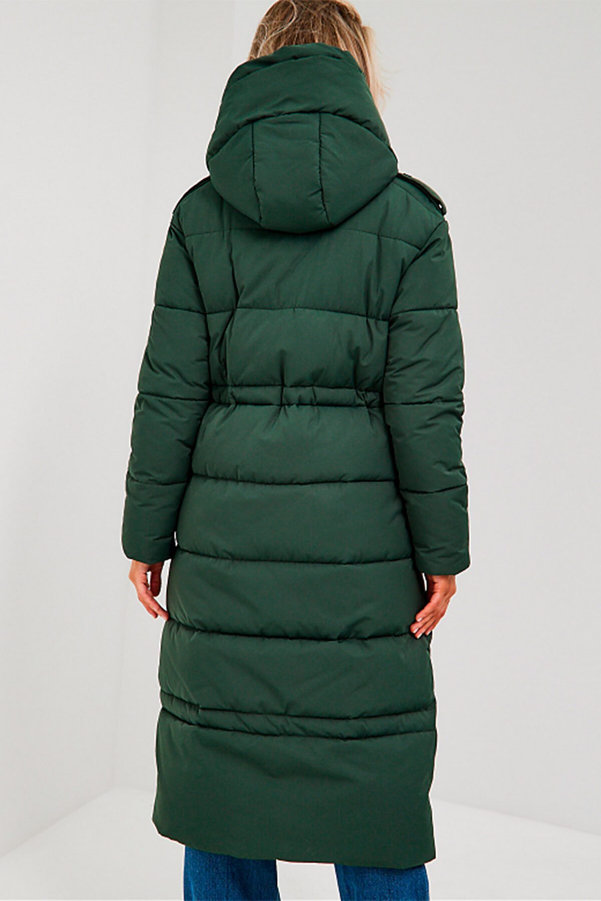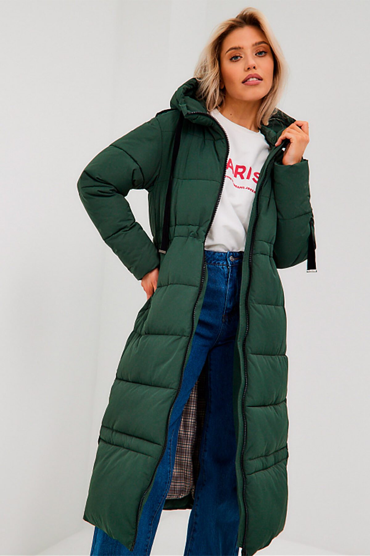 Стильный, теплый пуховик прямого силуэта с застежкой на молнию и втачным капюшоном. Рукав со спущенным плечом, по низу рукава, внутри, идет трикотажная манжета. Имеются два удобных прорезных кармана на магнитах. По талии, внутри изделия, имеются утяжки. Есть внутренний карман. Ткань изделия обработана водоотталкивающей пропиткой. Утепление нового поколения Био-пух 350 гр., рекомендуемый температурный режим от -25°C до -5°C. Длина изделия: 117 см. Длина рукава: 64 см.