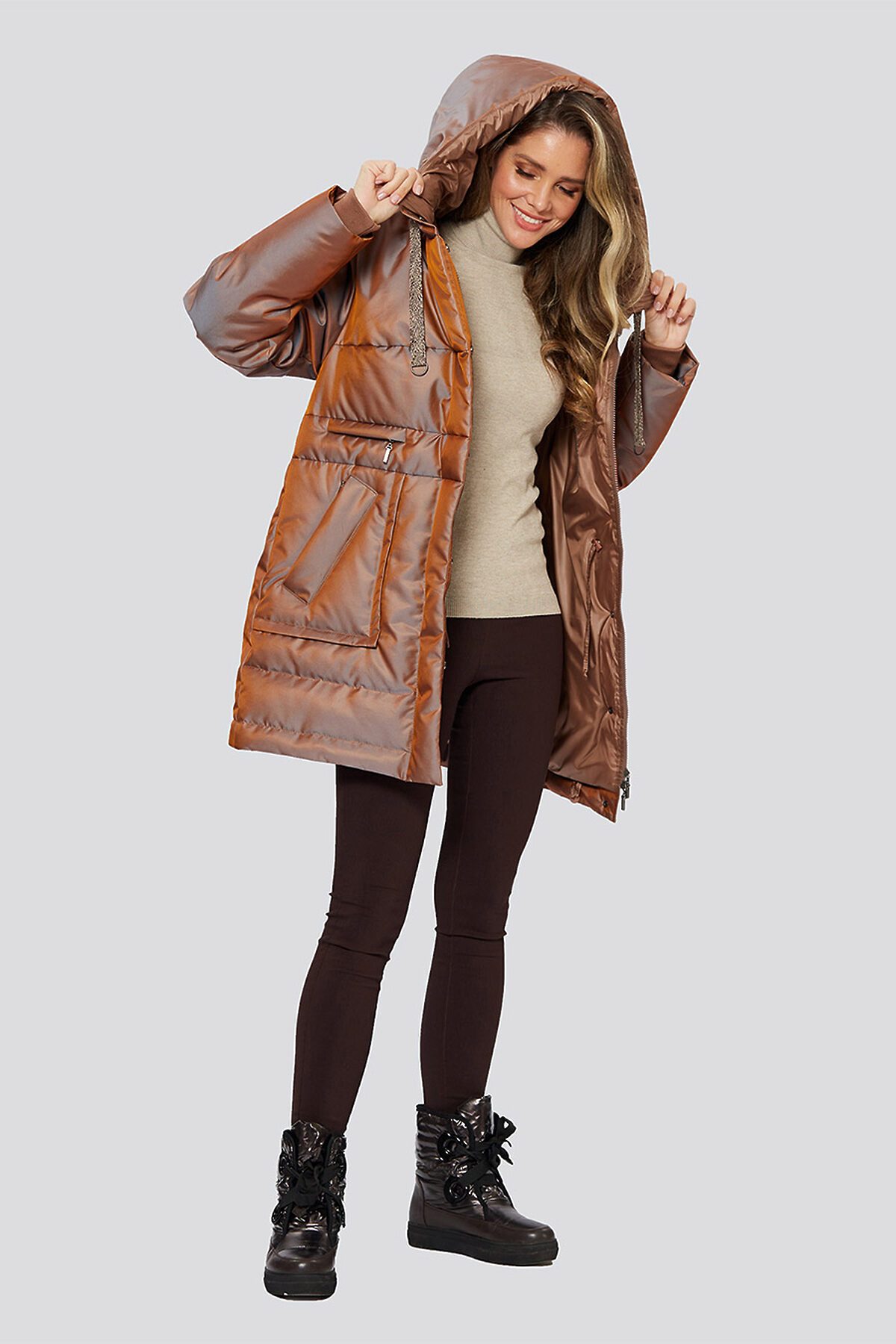Модная, удлиненная женская зимняя куртка комфортной длины от российского производителя D’imma Fashion Studio из шан-жана с водоотталкивающей пропиткой прямого силуэта, утепленная СинтеПухом, согреет в мороз и прослужит не один сезон. Декоративная лаконичная стежка делает ее интересной и стильной. За дополнительную защиту от непогоды отвечает воротник-стойка, переходящий в несъемный капюшон со шнурком, регулирующим объем капюшона. Модель с застежкой на двухзамковую молнию и внешним ветрозащитным клапаном на кнопках. Рукава с трикотажной манжетой, помогающей регулировать длину рукава. Внутри кулиски по талии и низу куртки, регулирующие объем и теплосохранение. Модель с накалдными настрочными карманами с отлетными краями. Вход в карман на молнии с листочкой. Дополнительно на правой полочке есть функциональный, врезной, горизонтальный карман на молнии с листочкой. Пояс в комплекте. Такая зимняя куртка-пуховик идеально подойдет как для активного стиля жизни, так и для неспешных прогулок даже в самую морозную погоду. Длина изделия: 42 р-р — 85 см; 44 р-р — 86 см; 46 р-р — 86 см; 48 р-р — 87 см; 50 р-р — 88 см; 52 р-р — 89 см; 54 р-р — 89 см; 56 р-р — 90 см; 58 р-р — 91 см; 60 р-р — 91 см; 62 р-р — 92 см; 64 р-р — 93 см.
