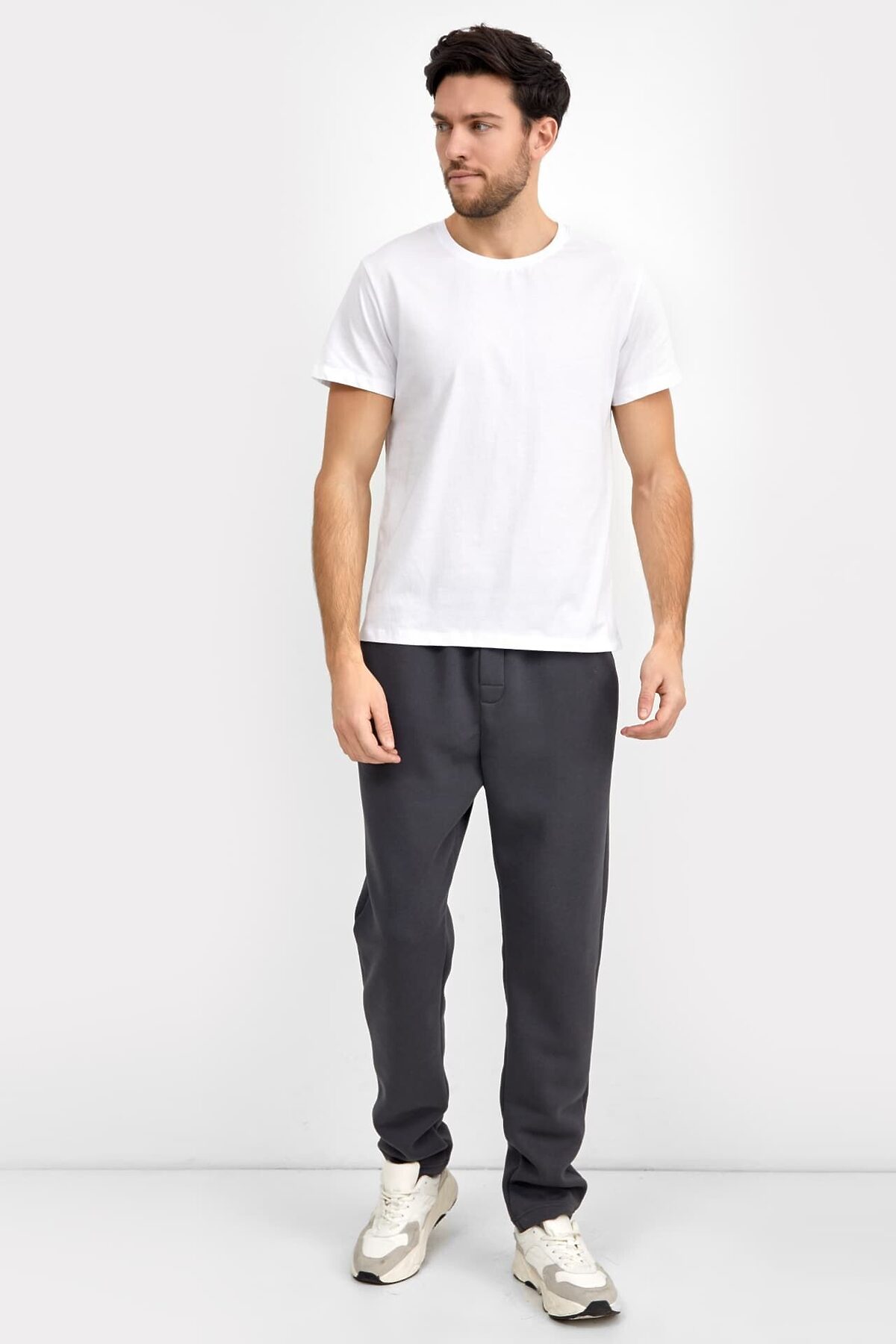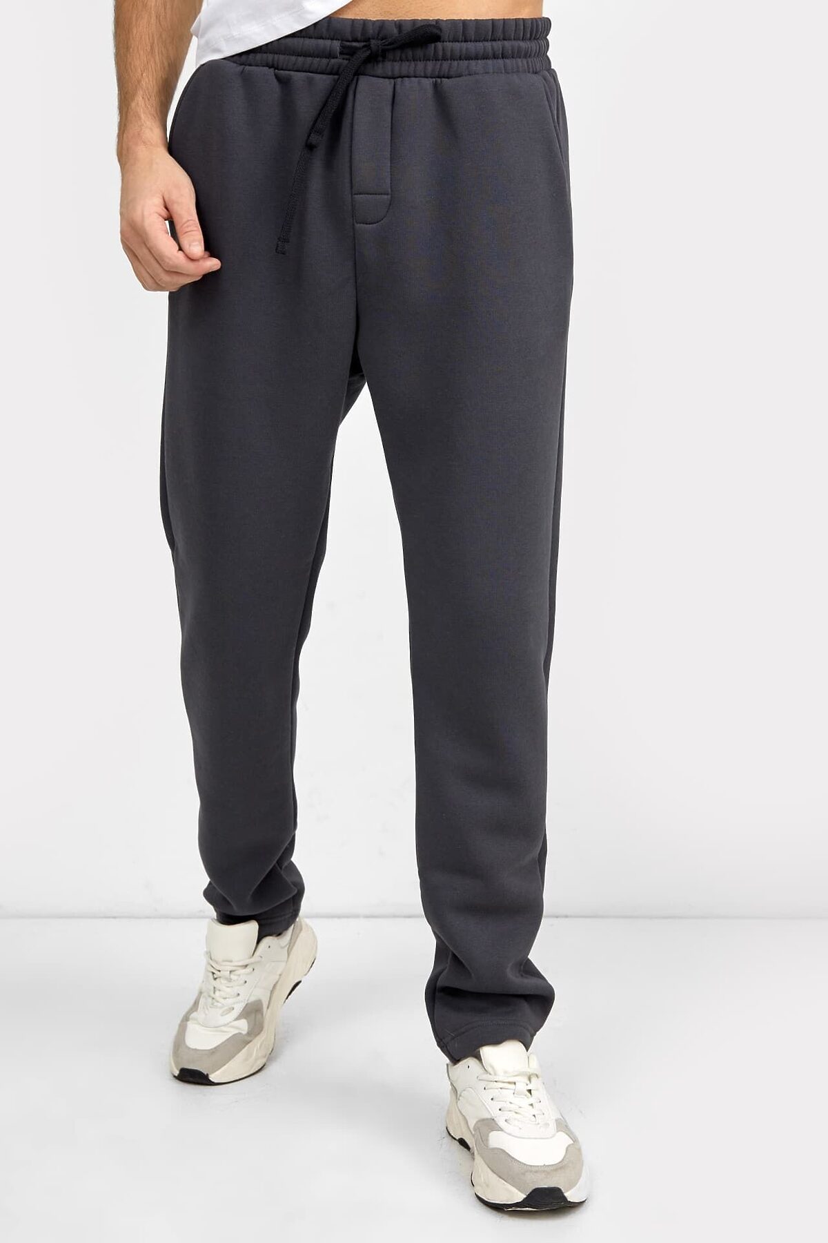 Прямые свободные брюки для мужчин. Выполнены из легкого трикотажного футера. Пояс – с эластичной тесьмой внутри и шнурком-завязкой, который позволяет регулировать ширину в талии. Есть удобные боковые карманы. Гульфик – не функциональный, имитация. Штанины подогнуты. Рекомендуем!