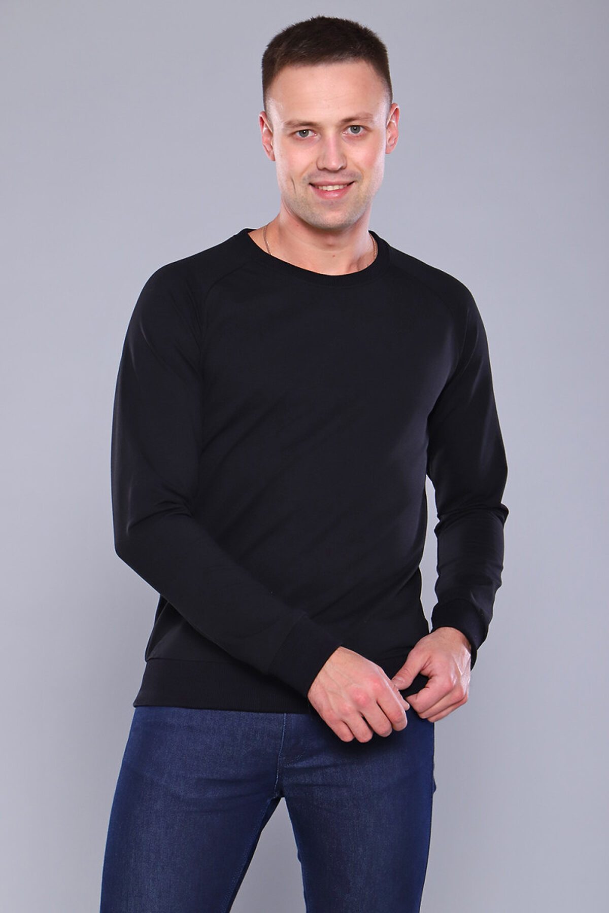 Трикотажная толстовка мужская из футера с лайкрой для повседневного ношения. Модель имеет актуальный прямой крой, свободную посадку, с круглым вырезом горловины и комфортным рукавом реглан. Толстовка подходит для всех типов фигур. Длина изделия 65-70 см.