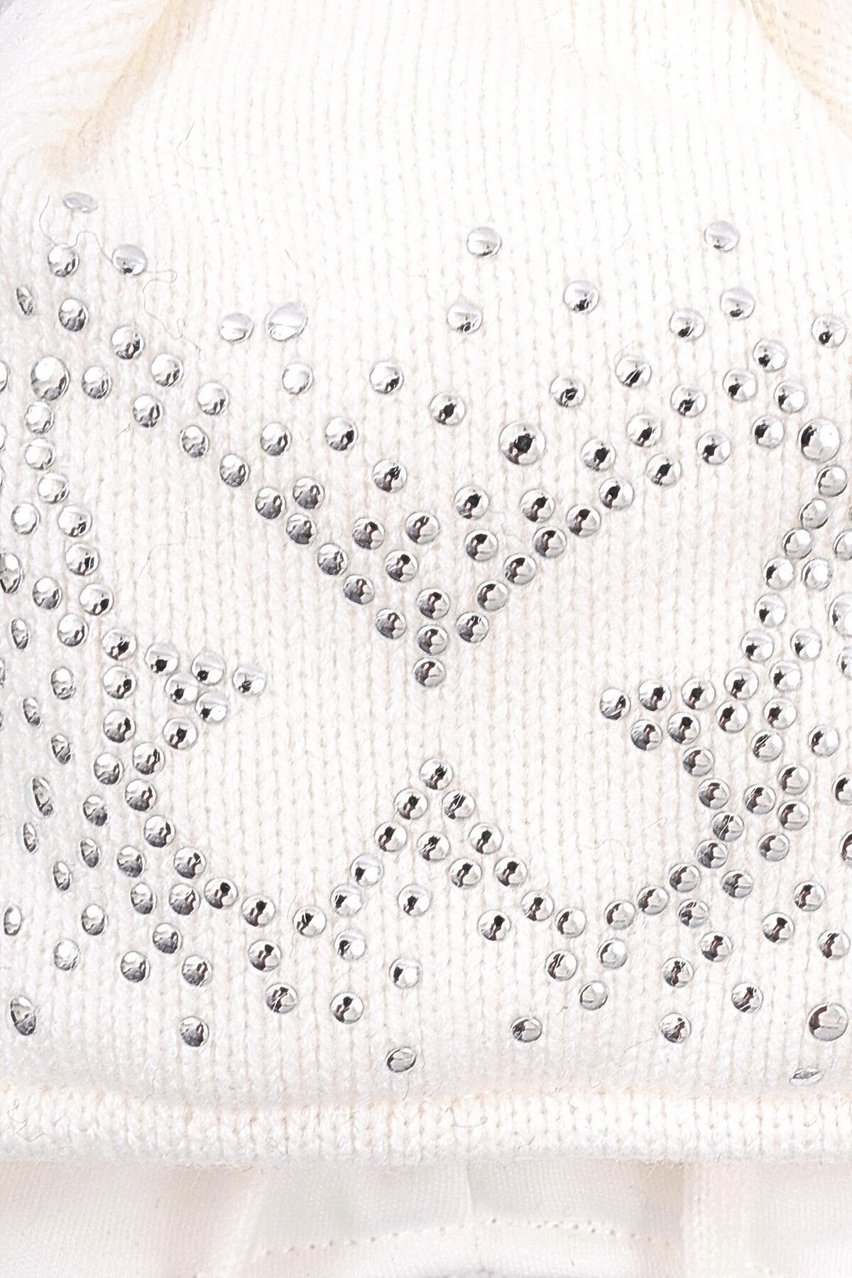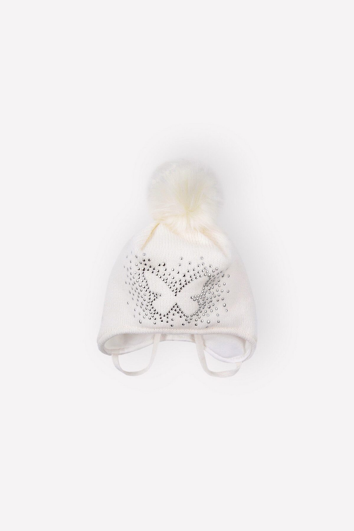 Шапка на завязках с утеплителем Fellex® 60 г/м2. Внутри мягкий подклад из интерлока. Подходит для сильных морозов. Спереди украшена стразами. На макушке меховой помпон.