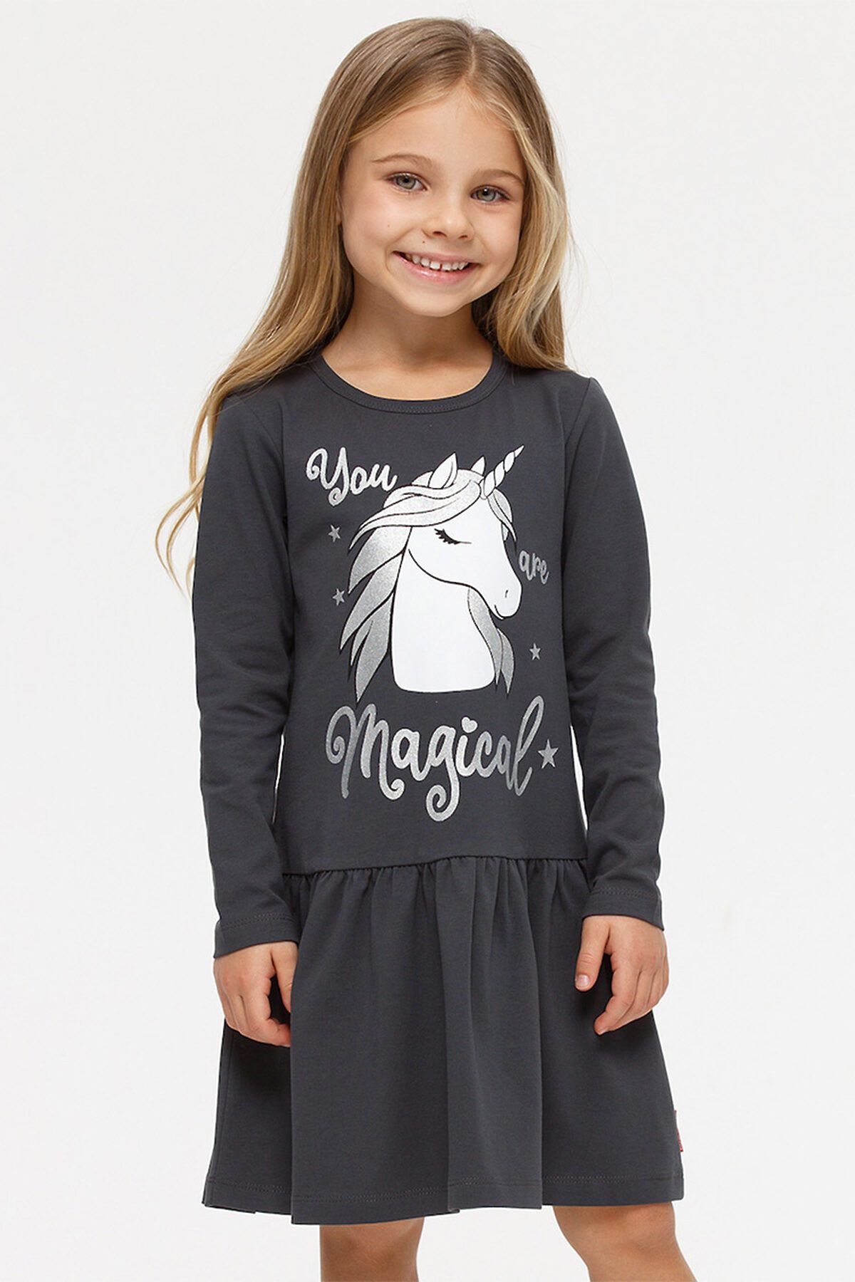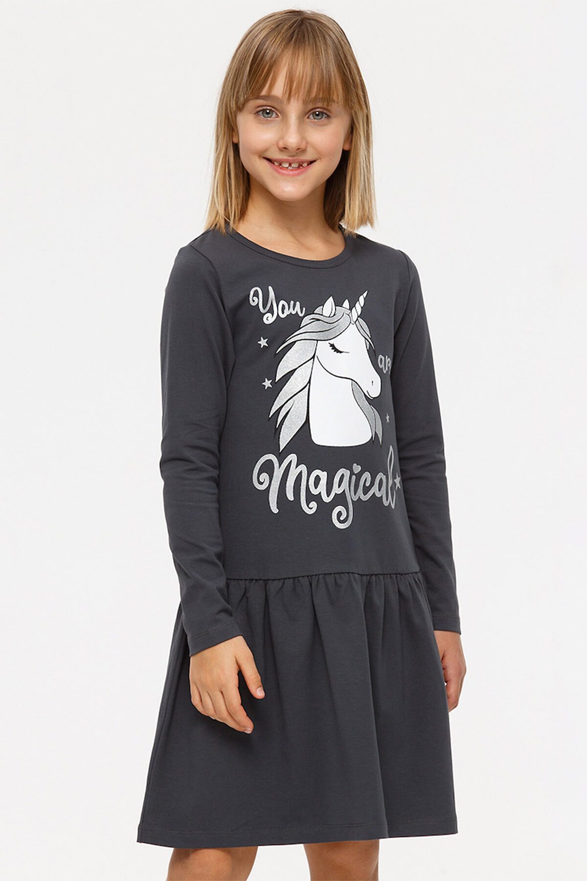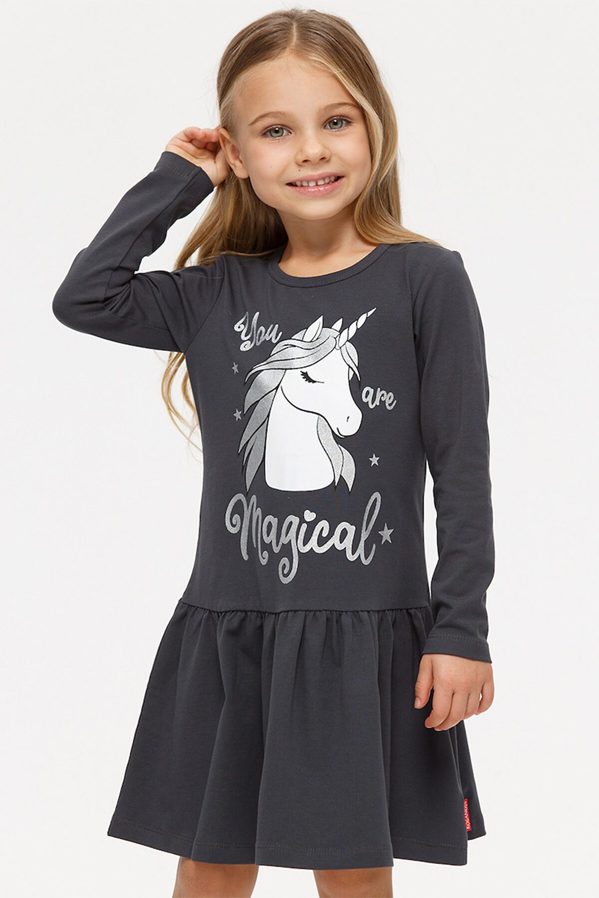 Платье для девочки с длинным рукавом из натурального полотна c добавлением эластана. Нарядное платье для девочки декорировано принтом с добавлением "глиттера'. Мягкая выделка хлопка, качественный принт, не линяет и не выстирывается. Платье для девочки идеальный вариант на каждый день и для праздников. Платье станет прекрасным дополнением к гардеробу вашего ребёнка.