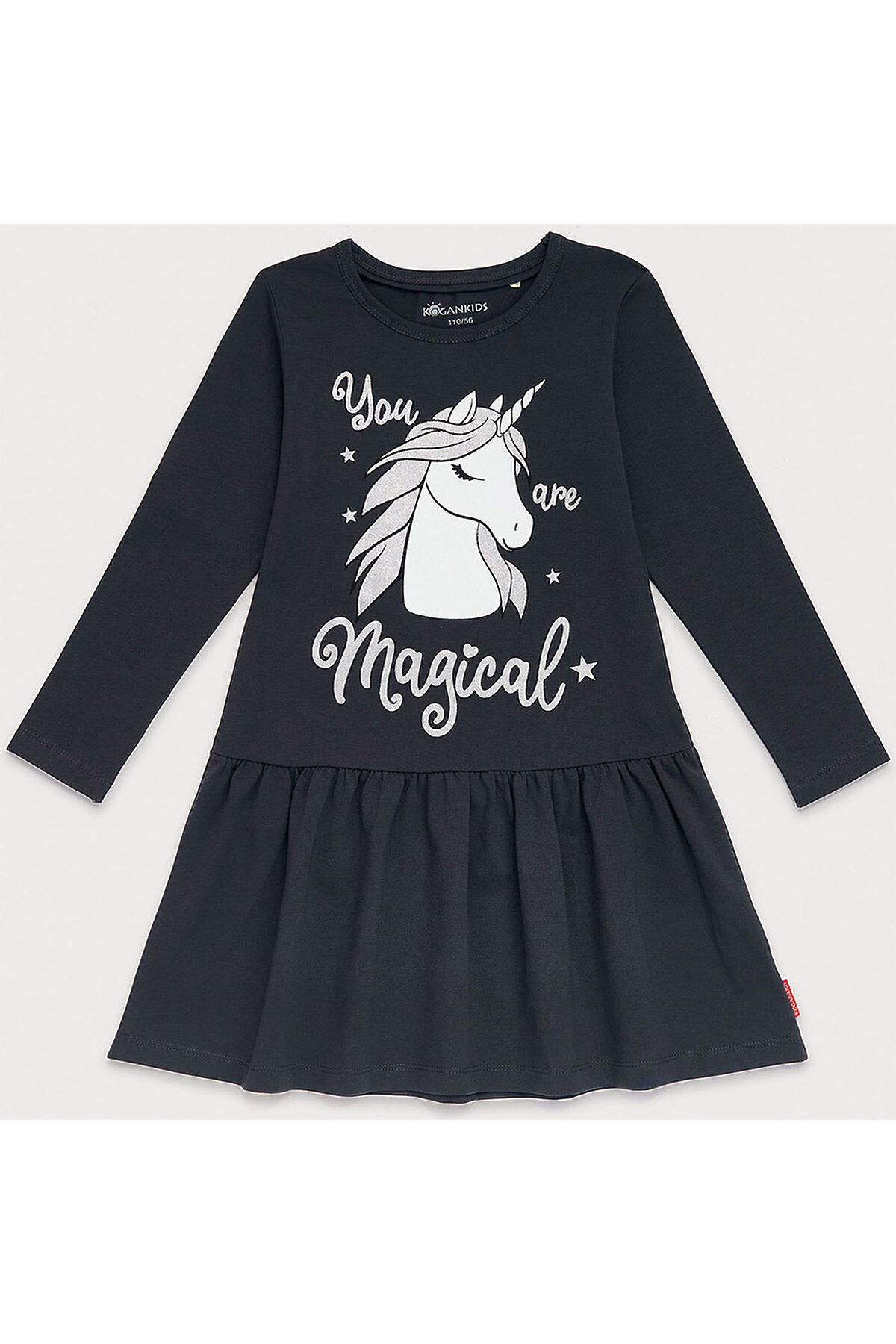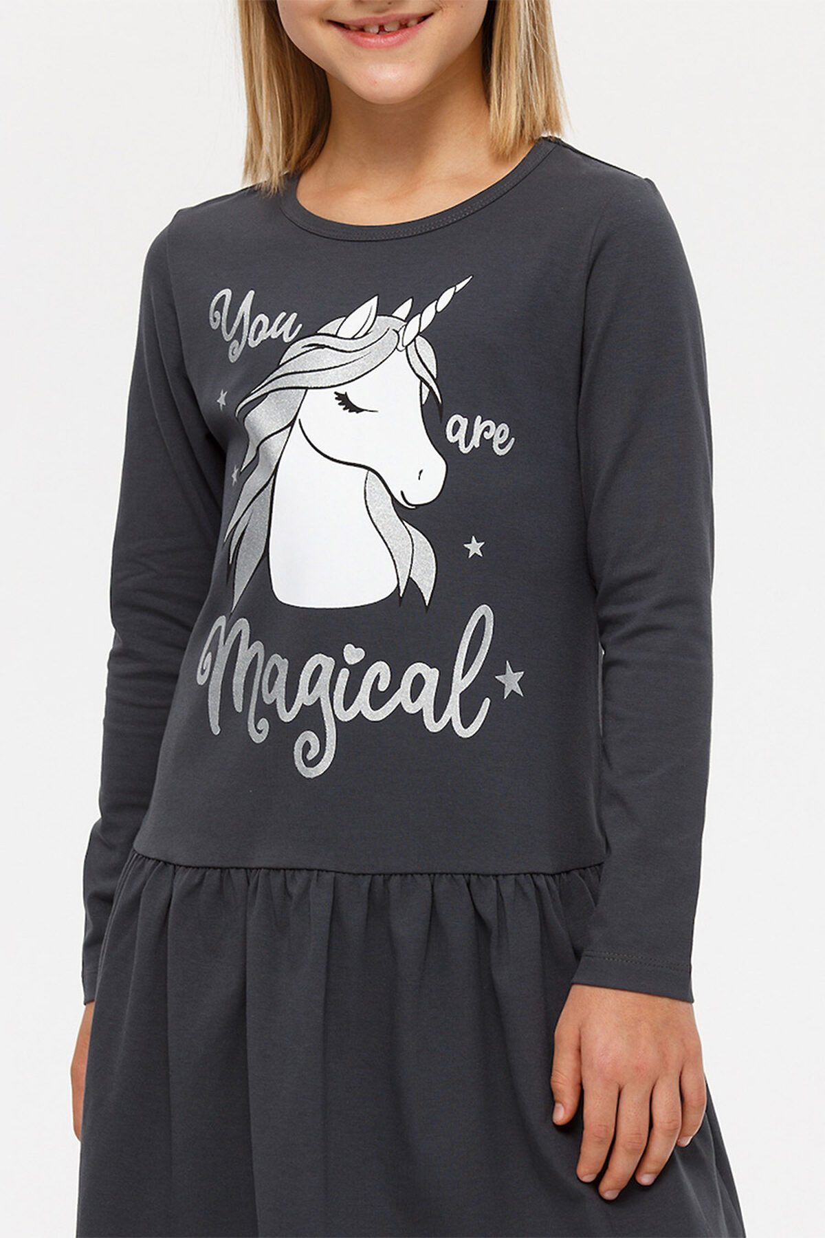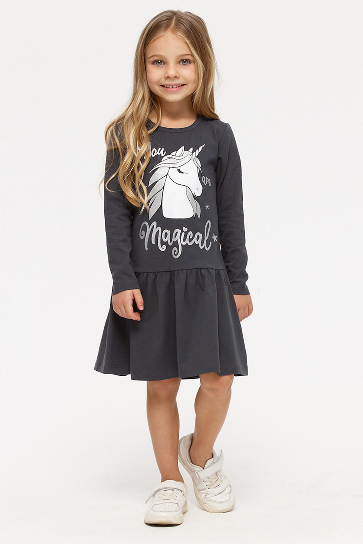 Платье для девочки с длинным рукавом из натурального полотна c добавлением эластана. Нарядное платье для девочки декорировано принтом с добавлением "глиттера'. Мягкая выделка хлопка, качественный принт, не линяет и не выстирывается. Платье для девочки идеальный вариант на каждый день и для праздников. Платье станет прекрасным дополнением к гардеробу вашего ребёнка.
