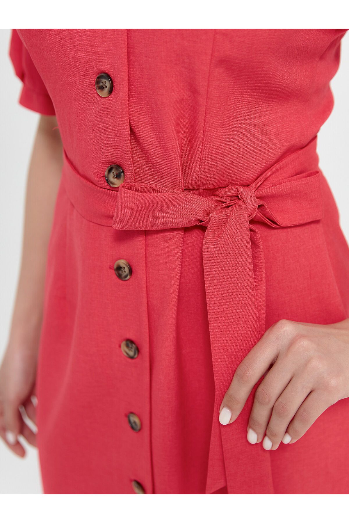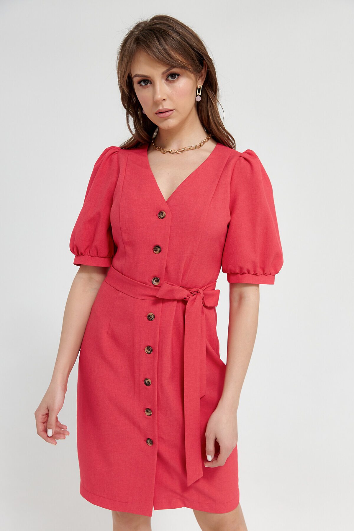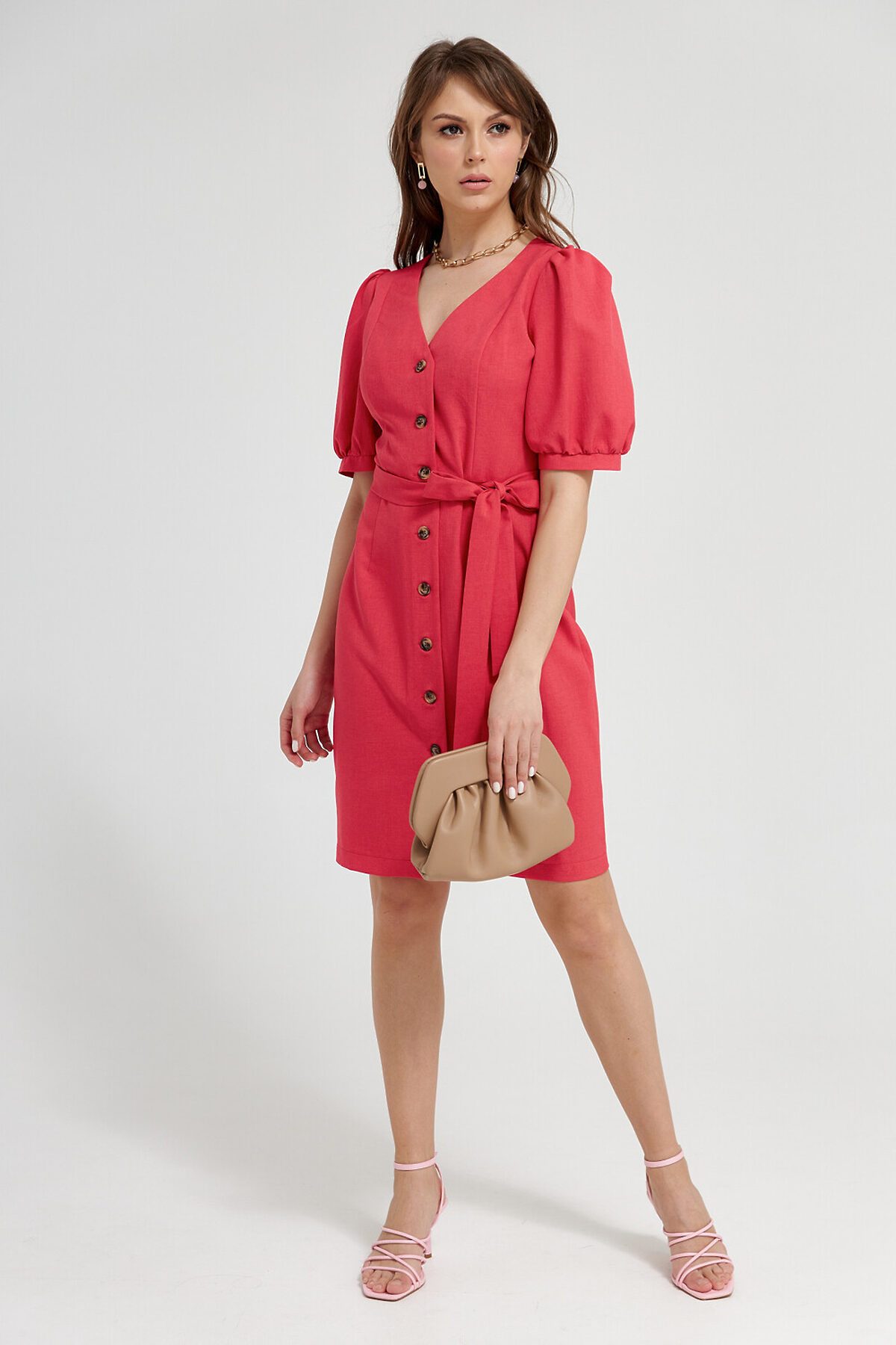 Платье приталенного силуэта. Застегивается на пуговицы по переду. V-образный вырез. Короткий рукав, со сборкой и манжетом по низу. Пояс идет в комплекте. Длина изделия Длина изделия по внешнему шву Длина изделия по подкладу Ширина спины подклада Длина изделия по внутреннему шву Длина изделия по спинке 44 размер 91 см., 46 размер 93 см., 48 размер 95 см., 50 размер 96 см., 52 размер 97 см. Ширина по бедрам Длина рукава по внутреннему шву Ширина верхней части рукава Ширина по талии Ширина нижней части рукава Ширина низа брючины Ширина спины 44 размер 44 см., 46 размер 46 см., 48 размер 48 см., 50 размер 50 см., 52 размер 52 см.