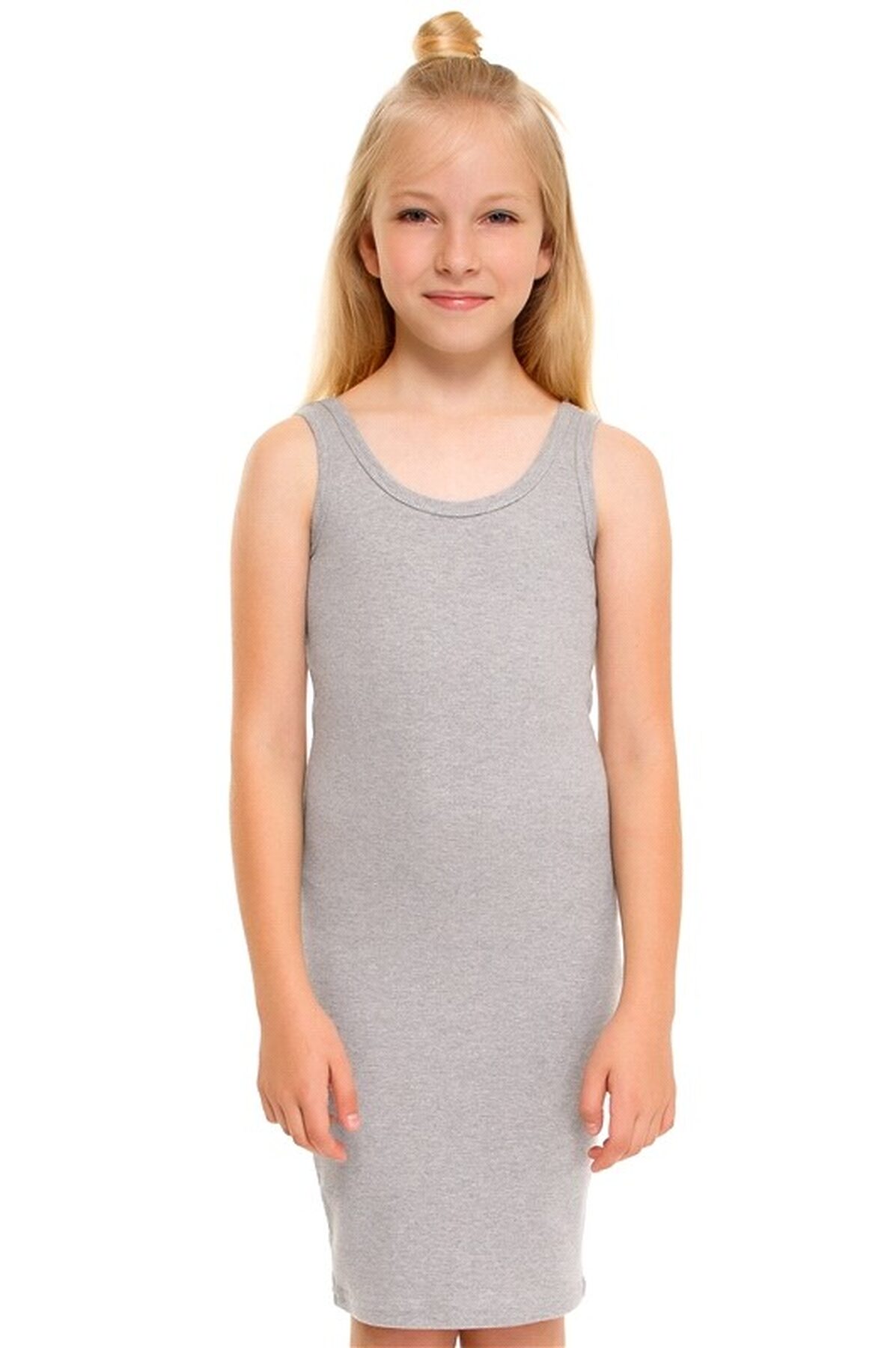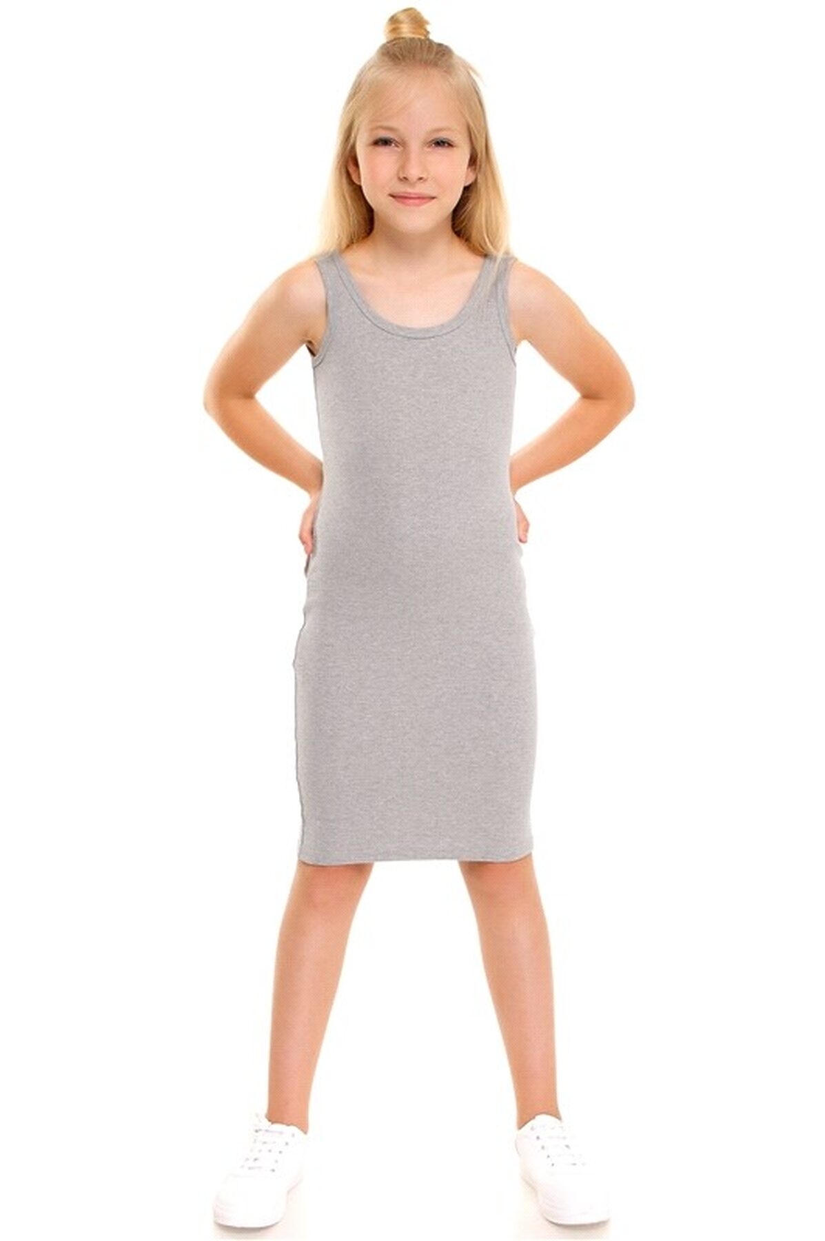 Платье для девочки выполнено из мягкого эластичного хлопкового полотна в рубчик. Изделие прилегающего силуэта, без рукавов. Вырез горловины и проймы обработаны бейкой. Отличный выбор для маленьких модниц! Уход: только машинная стирка (руками не стирать!) при температуре 40 градусов, без предварительного замачивания. Тип полотна - ластик
