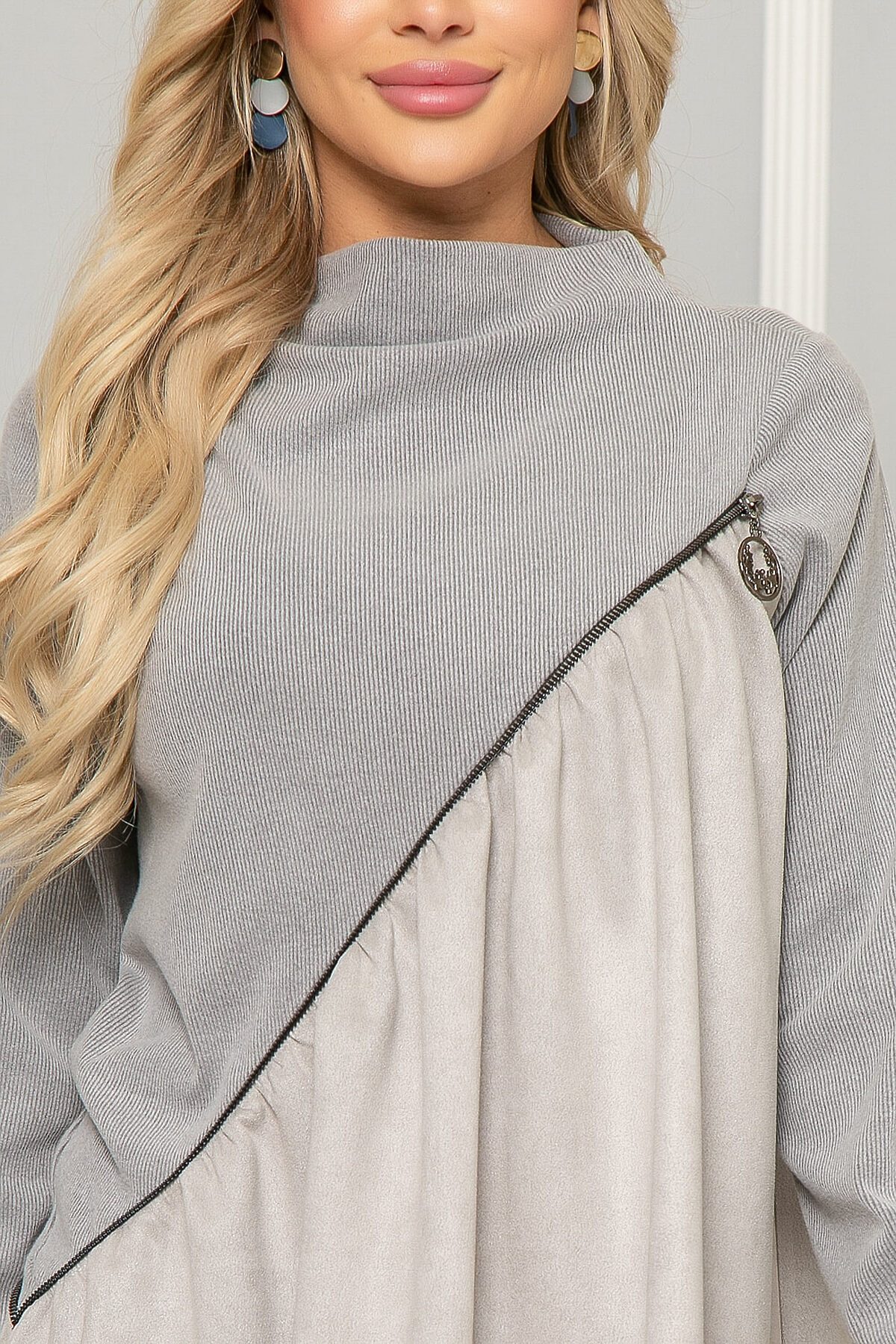Дизайнерское платье из комбинированных тканей для ценителей комфортных и стильных образов. Платье прекрасно подойдёт в качестве повседневного варианта и будет хорошо сочетаться с туфлями, ботильонами или ботинками. Благодаря своему фасону платье прекрасно справляется с задачей скрыть недостатки фигуры и подчеркнуть достоинства.