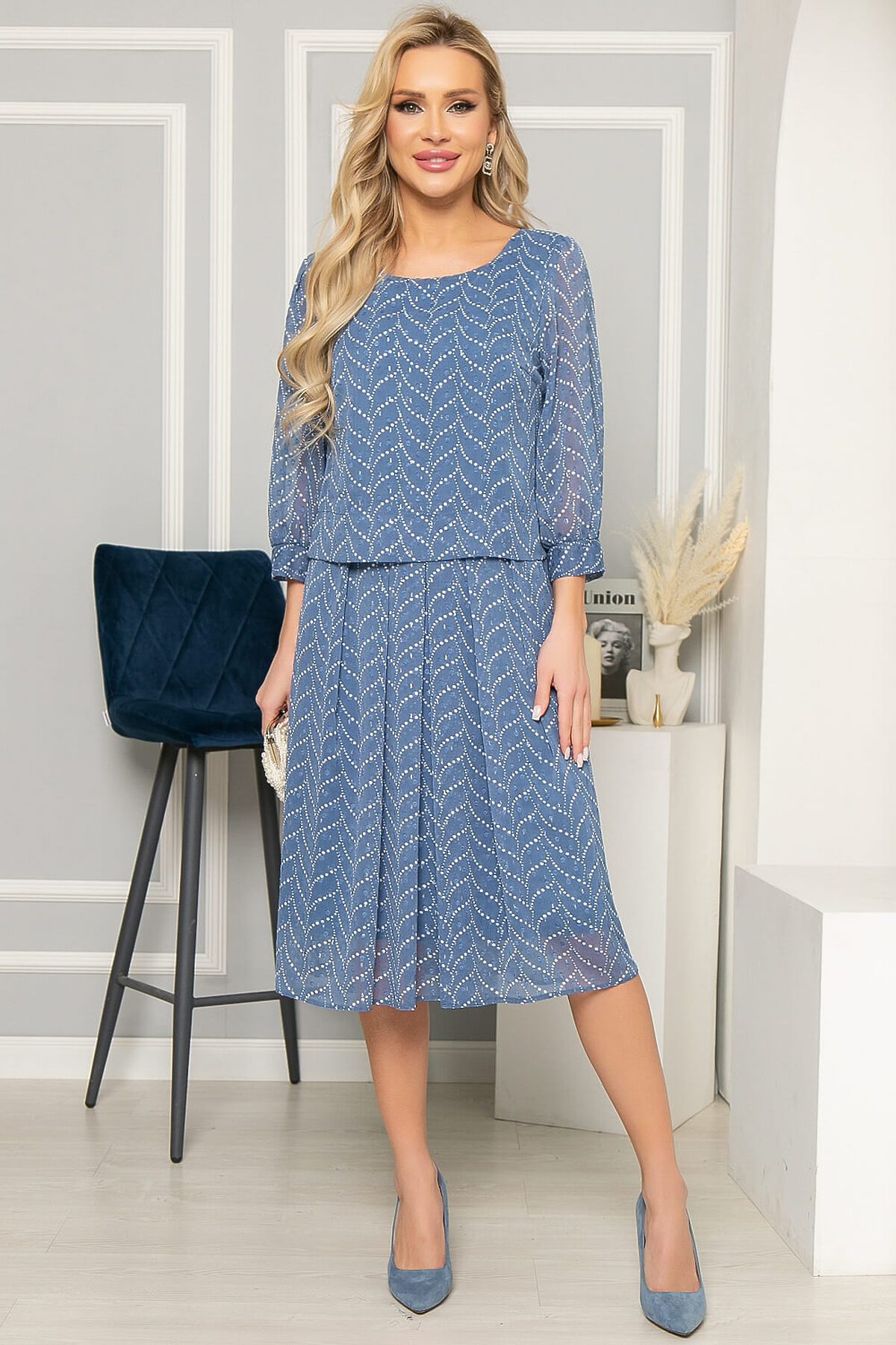 Платье свободного кроя с имитацией костюма. Платье-костюм с первого взгляда запоминается своей оригинальностью. Такой наряд не нуждается в специальных украшениях и аксессуарах. Модель выполнена из приятной к телу ткани с принтом и слегка заметными серебристыми вкраплениями. Такой наряд можно использовать для вечеринок, деловых встреч и даже светских мероприятий. Платье имеет свободный рукав на манжете, свободный верх и расклешённую юбку. Платье на подкладке.