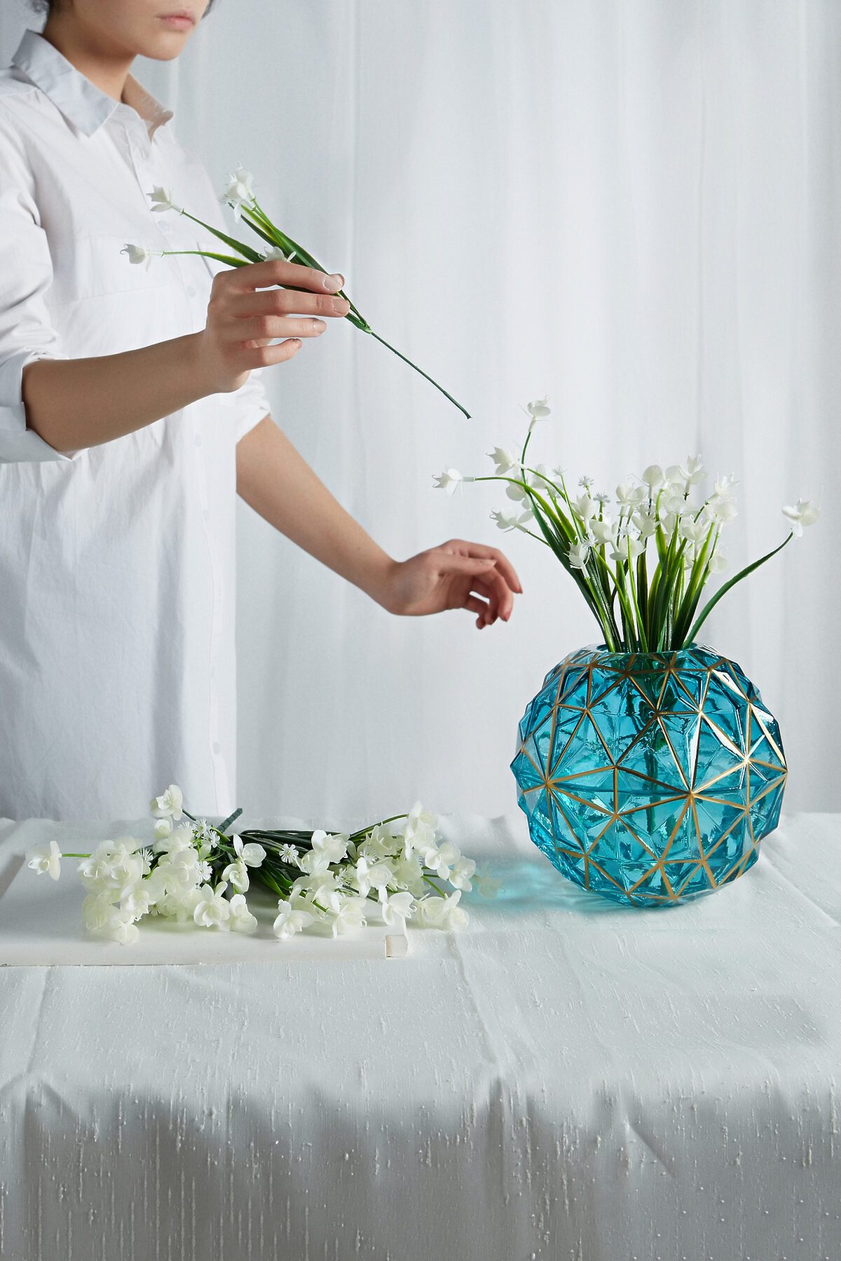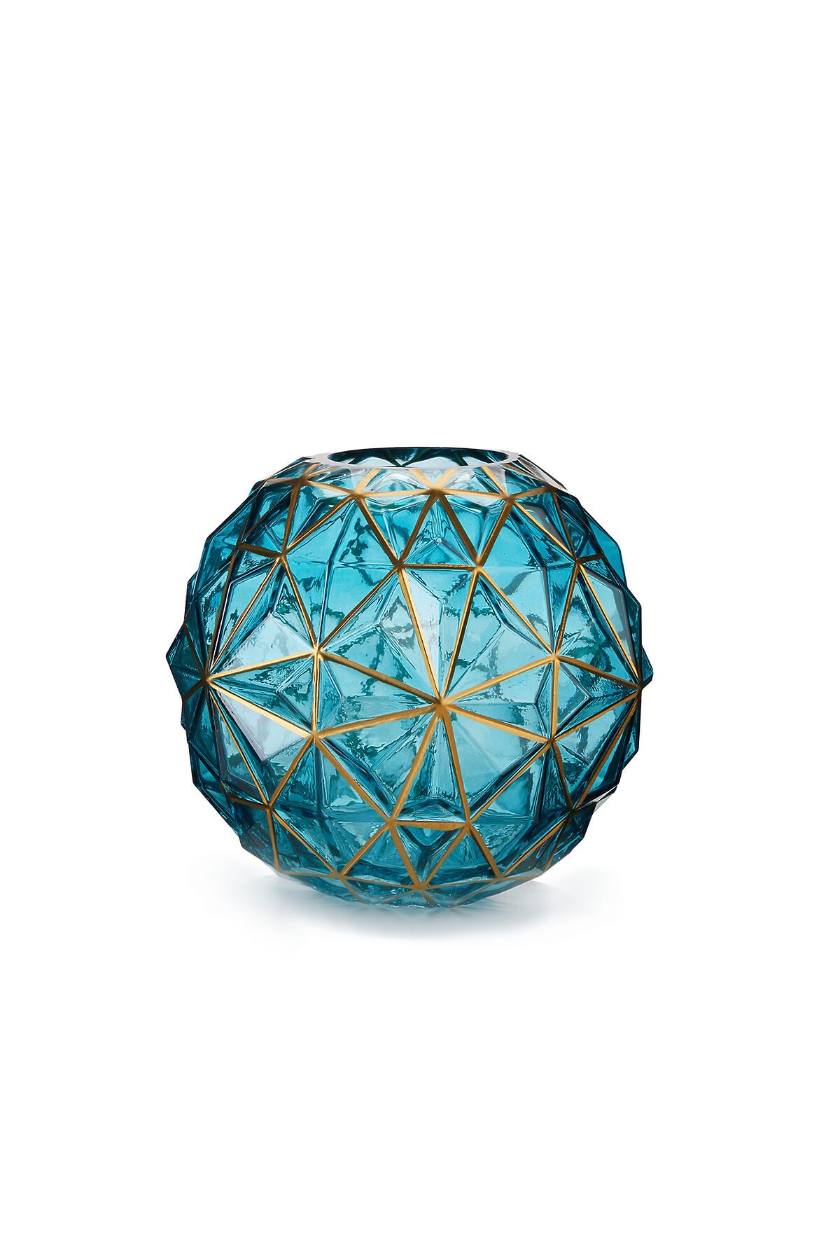 Ваза стеклянная ваза граненая цветочная ваза из тонированного стекла "Стеклянный трон" MERSADA, морская волна, золотистый