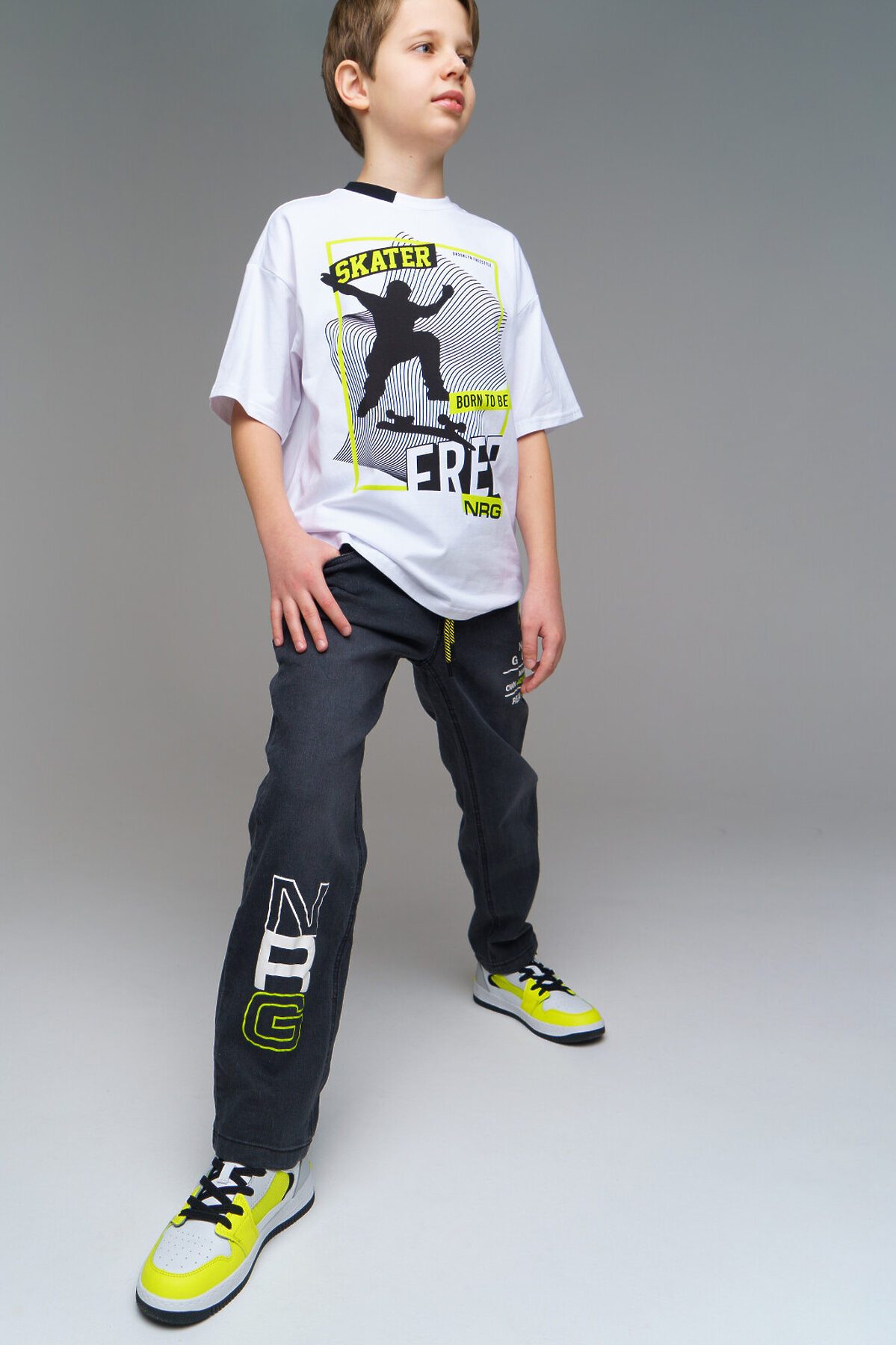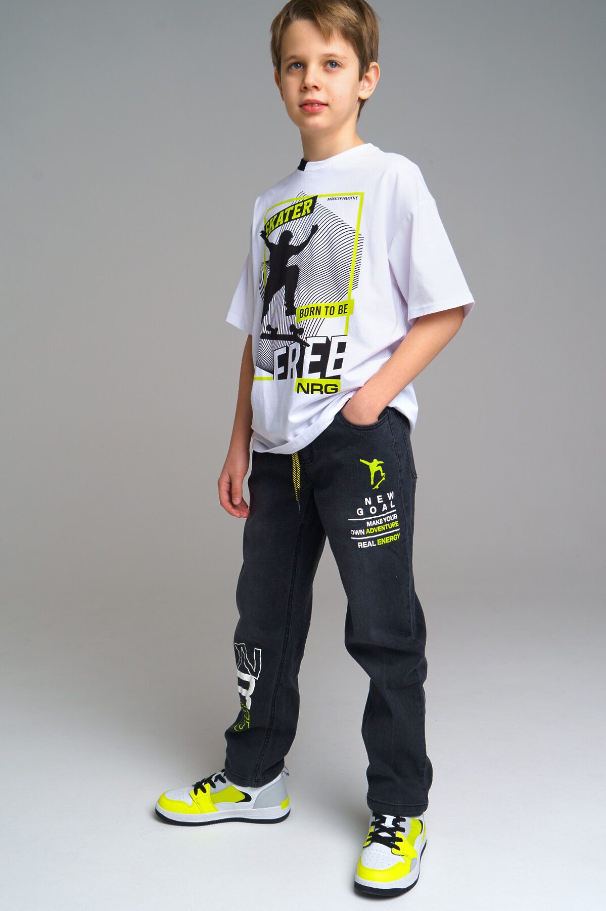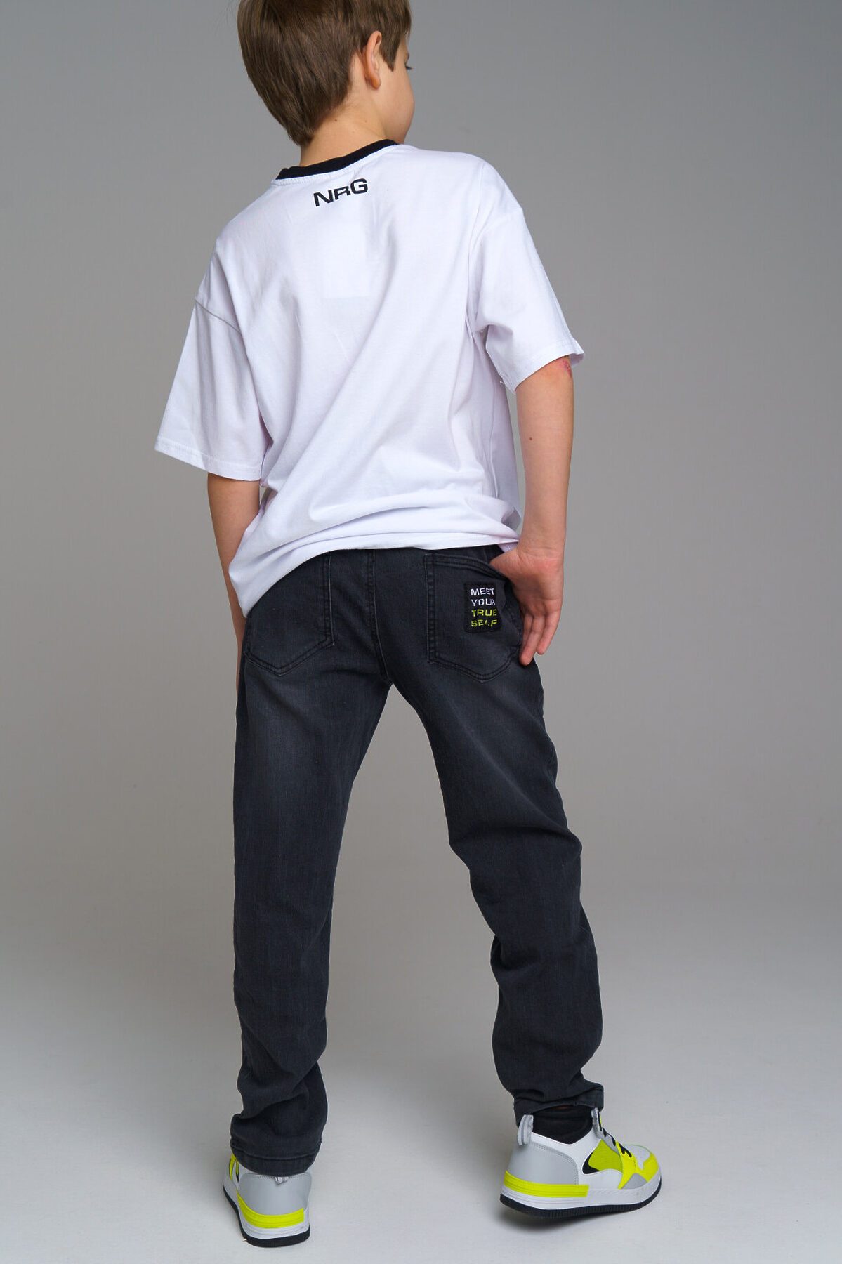 Джинсы из эластичного денима. Посадка comfort fit – свободный крой брючин. Комфортная посадка за счет внутренней утяжки. Функциональные карманы. Эластичный пояс с тесьмой позволяет легко надевать джинсы и утягивать до идеальной посадки в зависимости от комплекции ребенка.