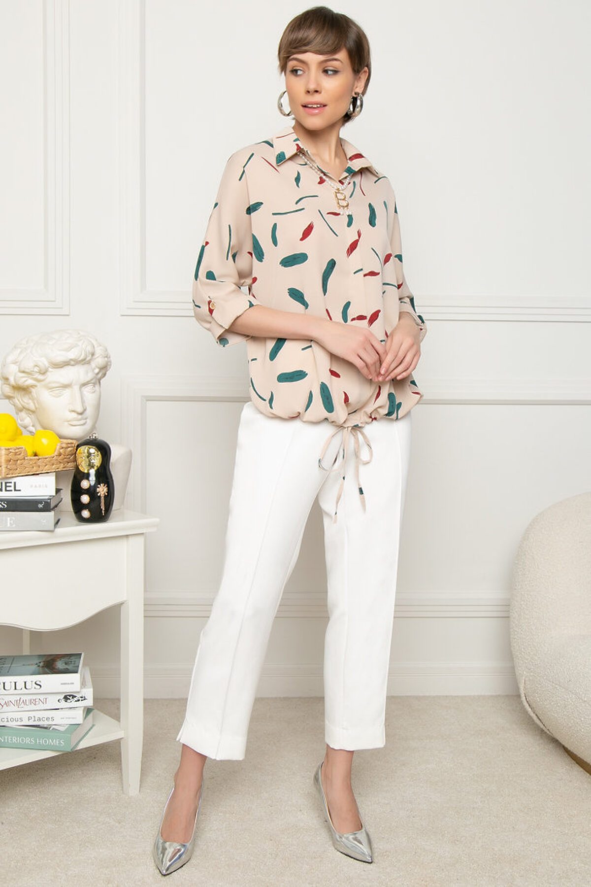 Элегантная блузка органично впишется в деловой и повседневный гардероб. Она отлично смотрится с прямыми брюками, джинсами, шортами. Для создания более женственного образа блузку можно надеть с узкой юбкой. Выбор обуви зависит от стиля созданного комплекта: это могут быть туфли на высоком каблуке или лоферы, ботильоны или босоножки.