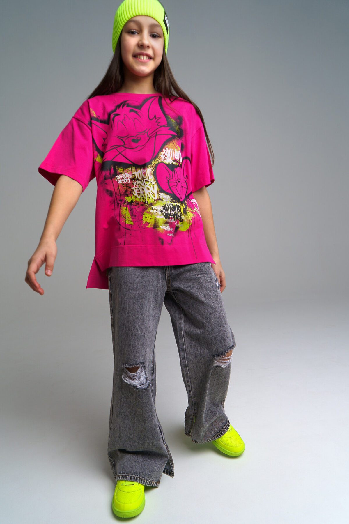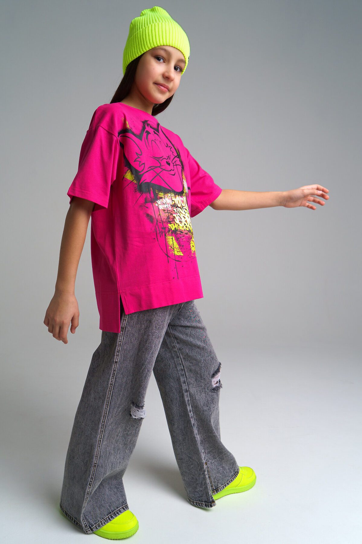 Футболка свободного силуэта из качественного и приятного на ощупь трикотажа джерси. Высокое содержание хлопка 95%. Благодаря наличию эластана в составе ткани изделие проще в уходе и держит форму.