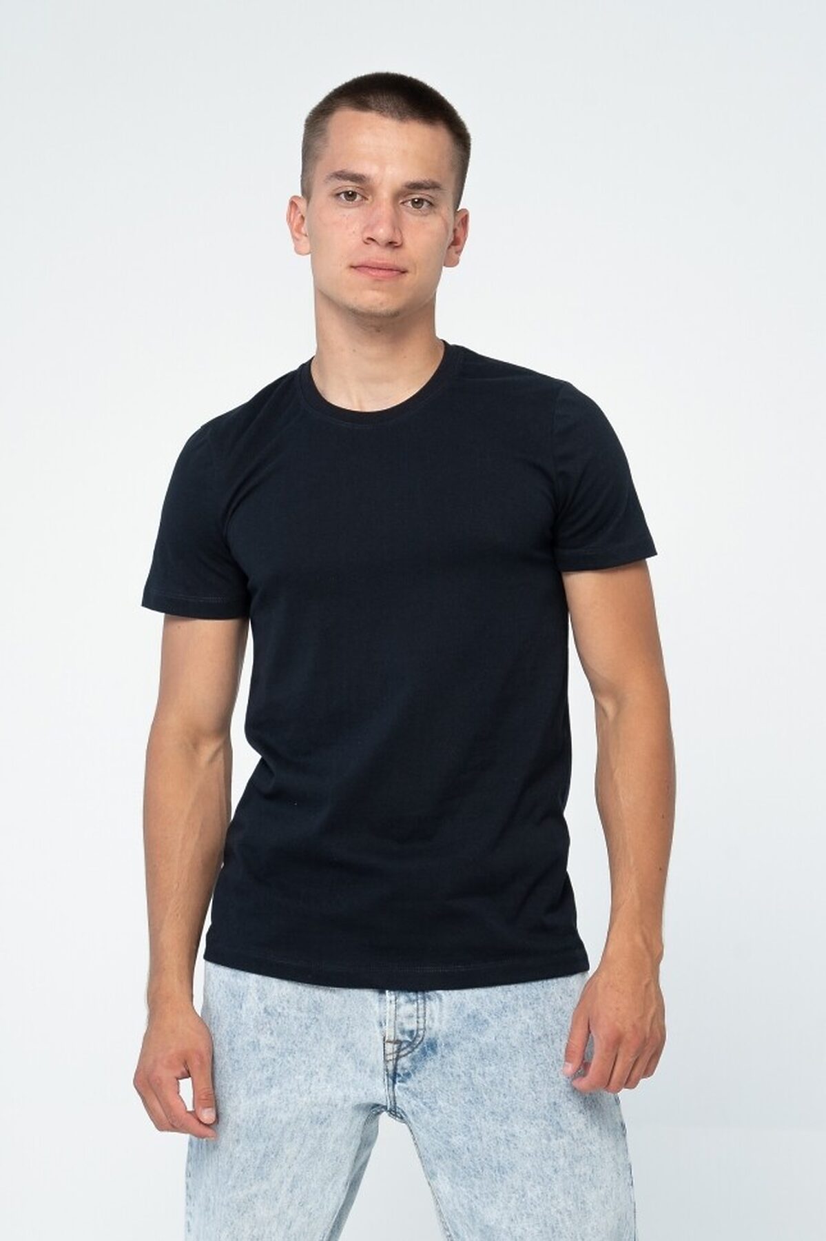 Мужская футболка полуприлегающего силуэта с короткими рукавами. Круглая горловина оторочена широкой обтачкой. Базовая футболка классического кроя занимают почетное место в «джентльменском» наборе одежды современного мужчины. Футболка не стесняет движений, идеально ложится по фигуре и эффектно украшает силуэт. Трикотаж изделия, производства Турции, обладает гипоаллергенными характеристиками, причем стойкий цвет, а форма и эластичность основы сохраняется даже после множества стирок. Идеальное качество пошива соответствует требованиям Госстандарта России. Размер изделия на модели: 52 Размер - Длина изделия по спинке (см) 46 - 72 48 - 72,5 50 - 73 52 - 73,5 54 - 74,5 56 - 75 58 - 75,5 60 - 76 Состав: кулирка