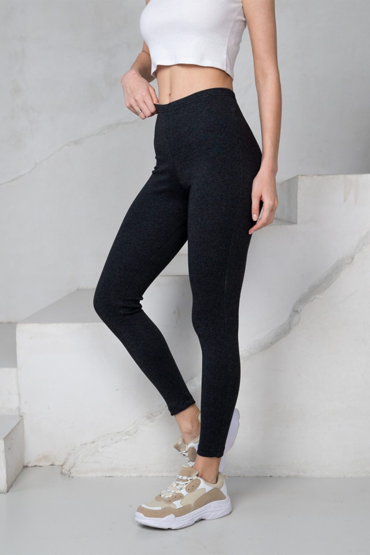 Леггинсы женские прилегающего силуэта. Леггинсы с высокой посадкой очень хорошо облегают фигуру, пояс укреплен эластичной тесьмой в 2 ряда. Актуальные комплекты с толстовками, худи и свитерами «оверсайз», дополненные кроссовками или стильной обувью на толстой плоской подошве - шикарные спортивные луки.