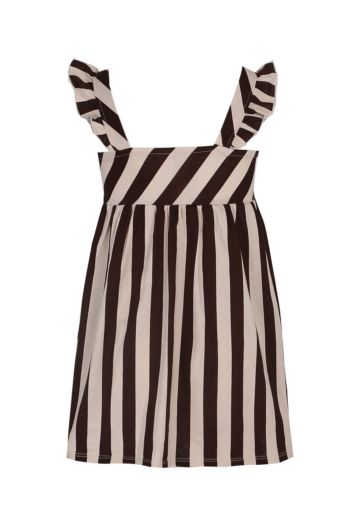 Сарафан из легкой набивной кулирки, отрезной выше талии, юбка со сборкой. Лямки декорированы крылышками, спинка на резинке.