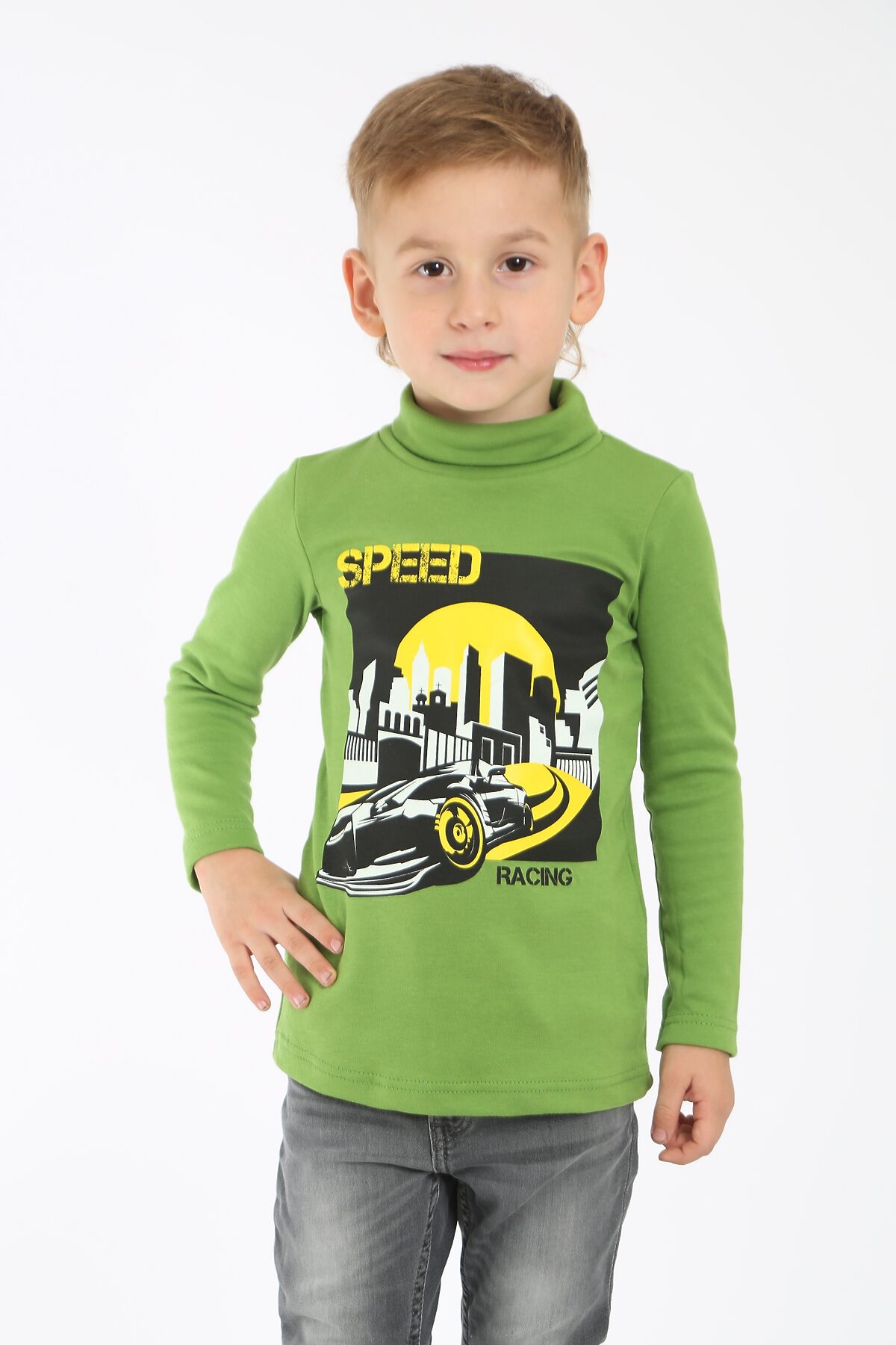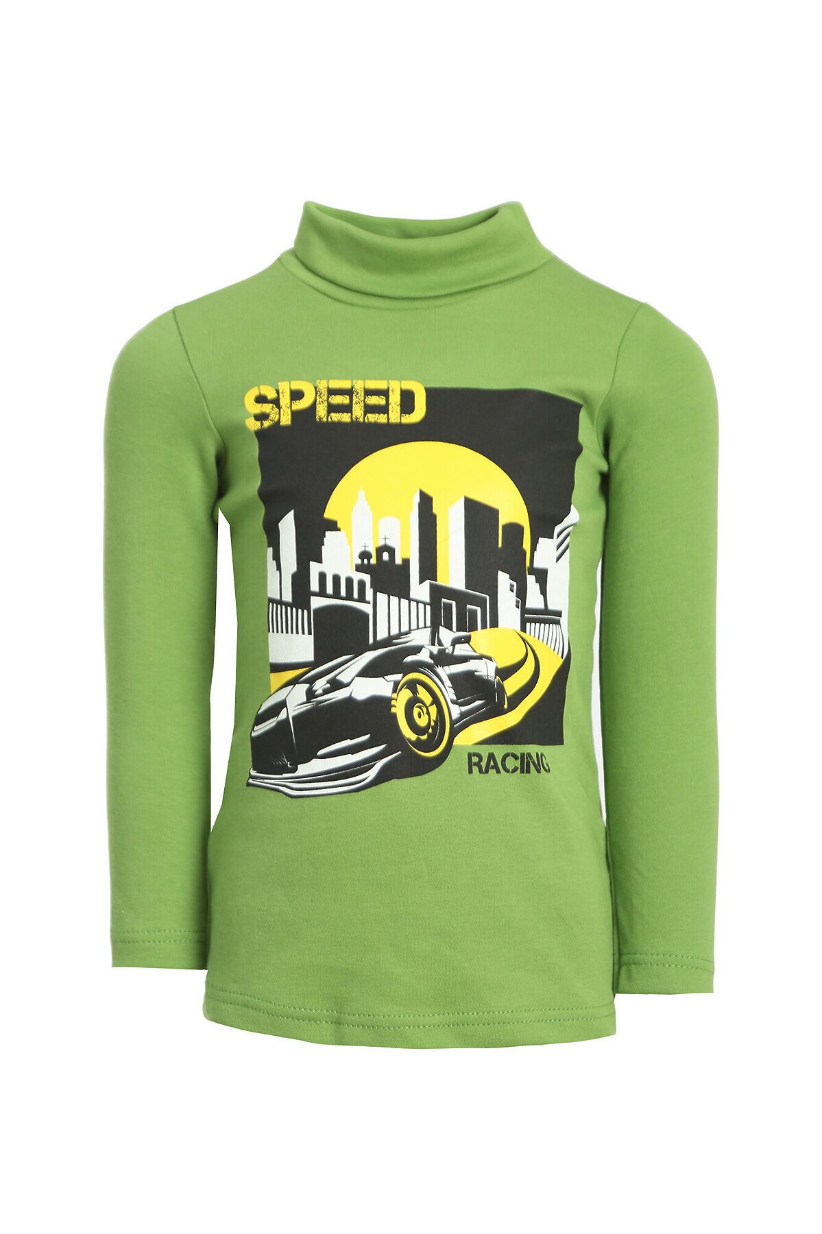 Водолазка из хлопковой ткани, прямого покроя, с втачными узкими рукавами и воротником стойкой с загибом. Полочка украшена шелкографией. Ткань мягкая, гипоаллергенная, хорошо пропускает воздух.