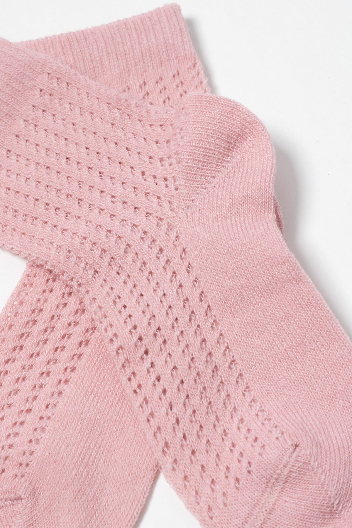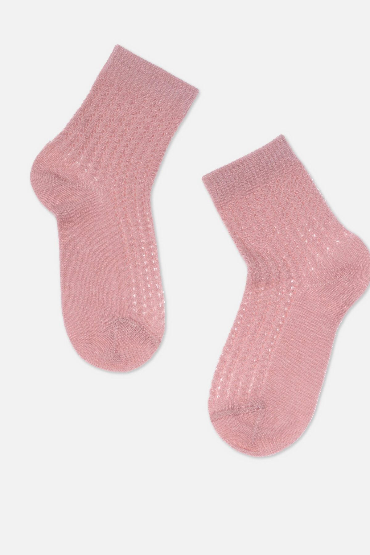Ажурные носки из хлопка созданы, чтобы дарить комфорт и вносить в детский образ индивидуальную изюминку. Носки будут прекрасно смотреться с невысокой обувью как в повседневном, так и в нарядном образе девочки.