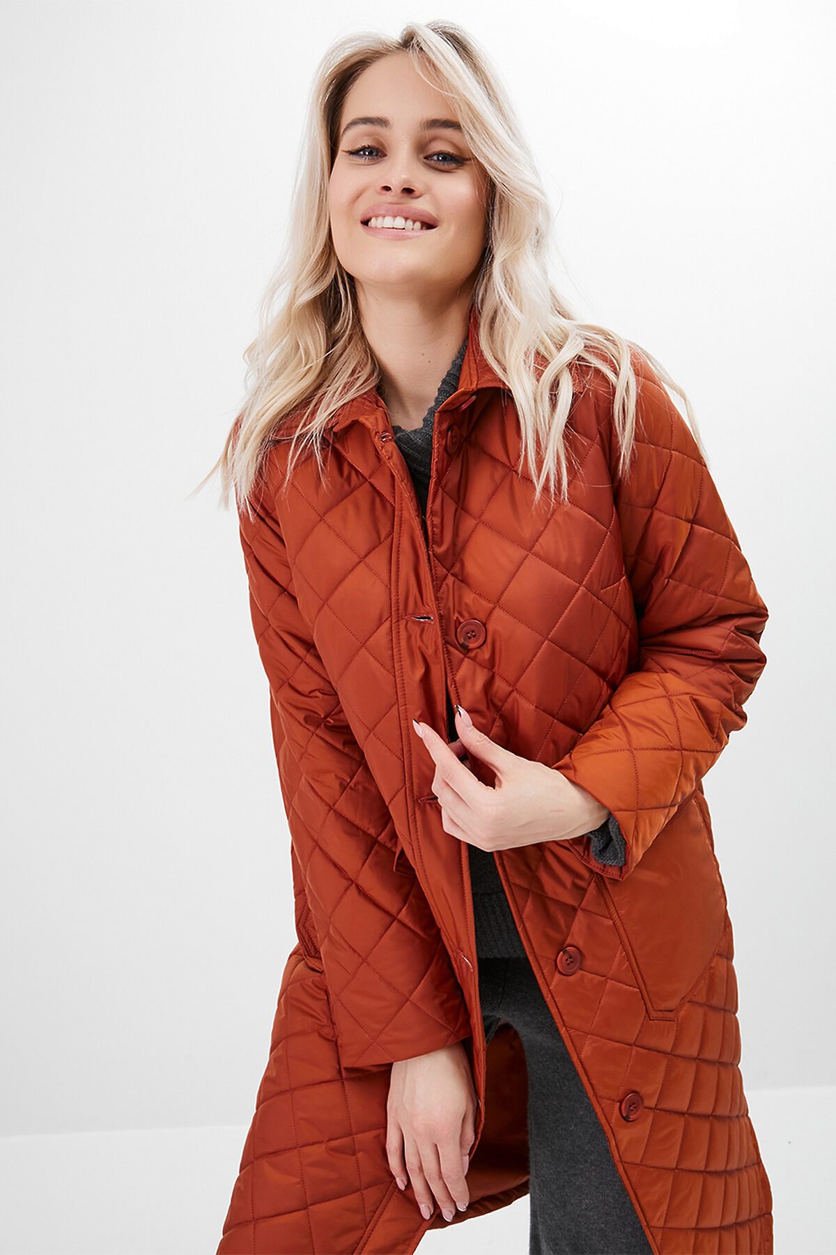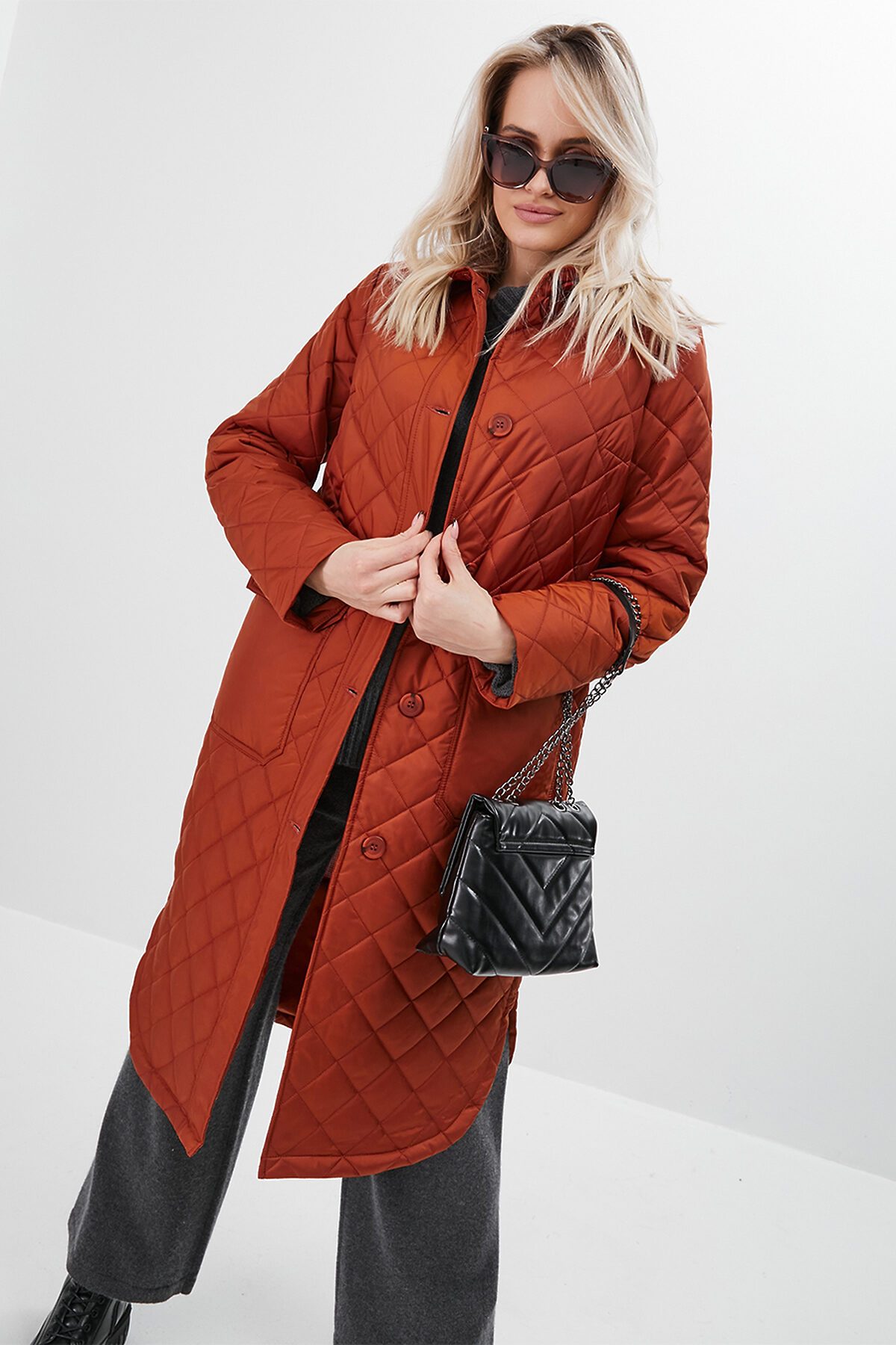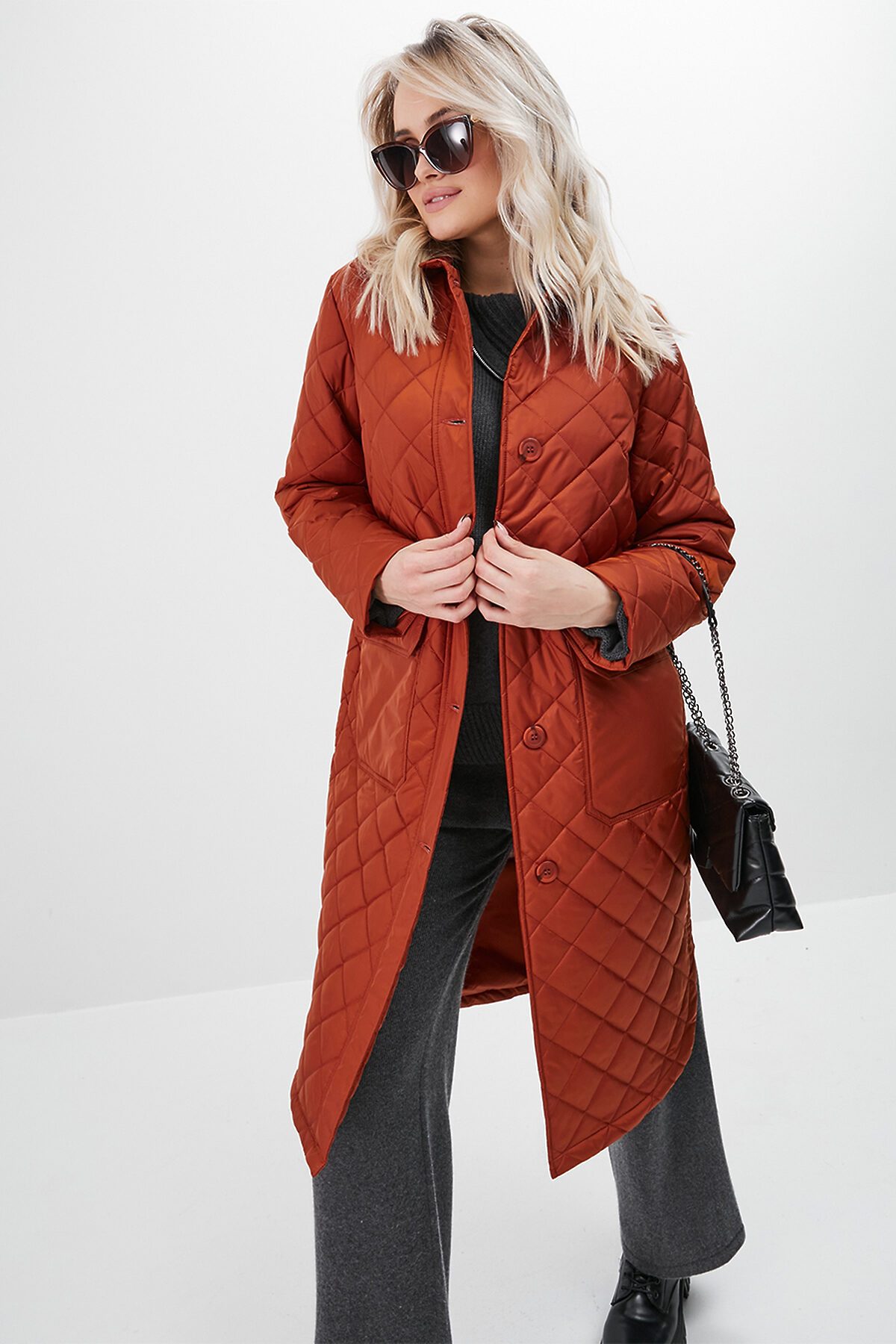 Утепленный плащ-рубашка прямого силуэта с втачным рукавом. В модели имеются два функциональных накладных кармана с клапанами на пуговицах, а также один внутренний карман. Ткань - плащевая с водоотталкивающей пропиткой, расстеганная ромбом. Утепление нового поколения ORSOTHERM 100 гр. Рекомендуемый температурный режим от +10°C до +18°C. Длина изделия: 110 см. Длина рукава: 64 см.