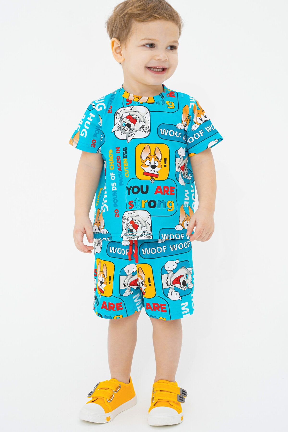 Комплект: футболка и шорты из качественного эластичного и приятного на ощупь трикотажа. Шорты с карманами в боковых швах. Эластичный пояс со шнурком. Посадка regular fit – классический крой. Высокое содержание хлопка 95%. Благодаря наличию эластана в составе ткани изделие держит форму и меньше мнется.