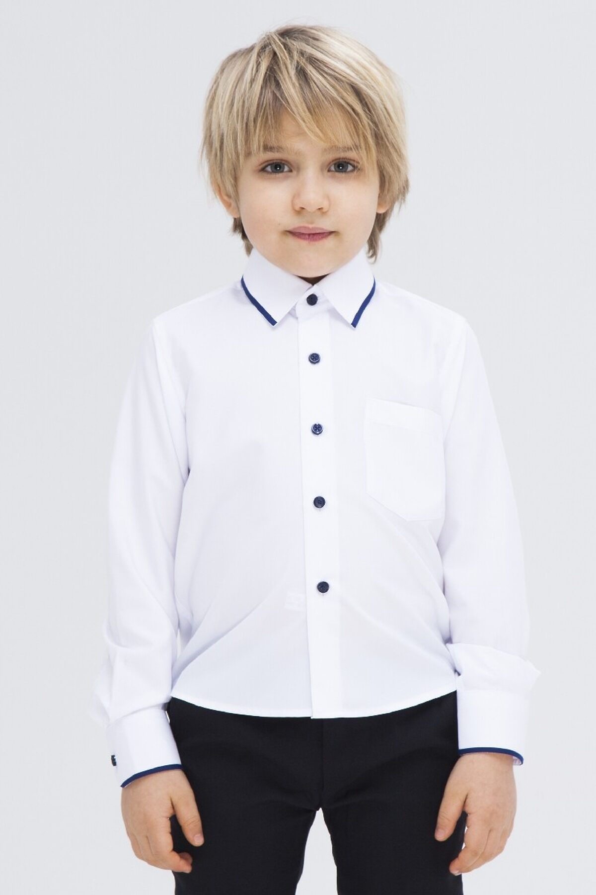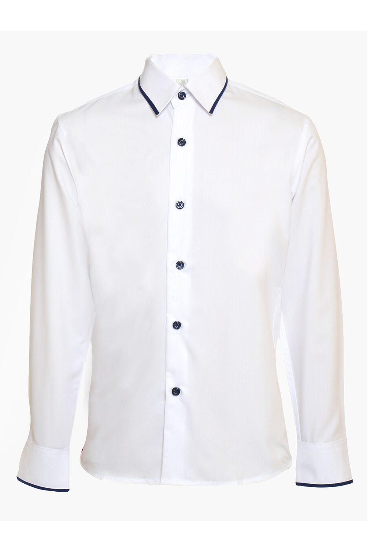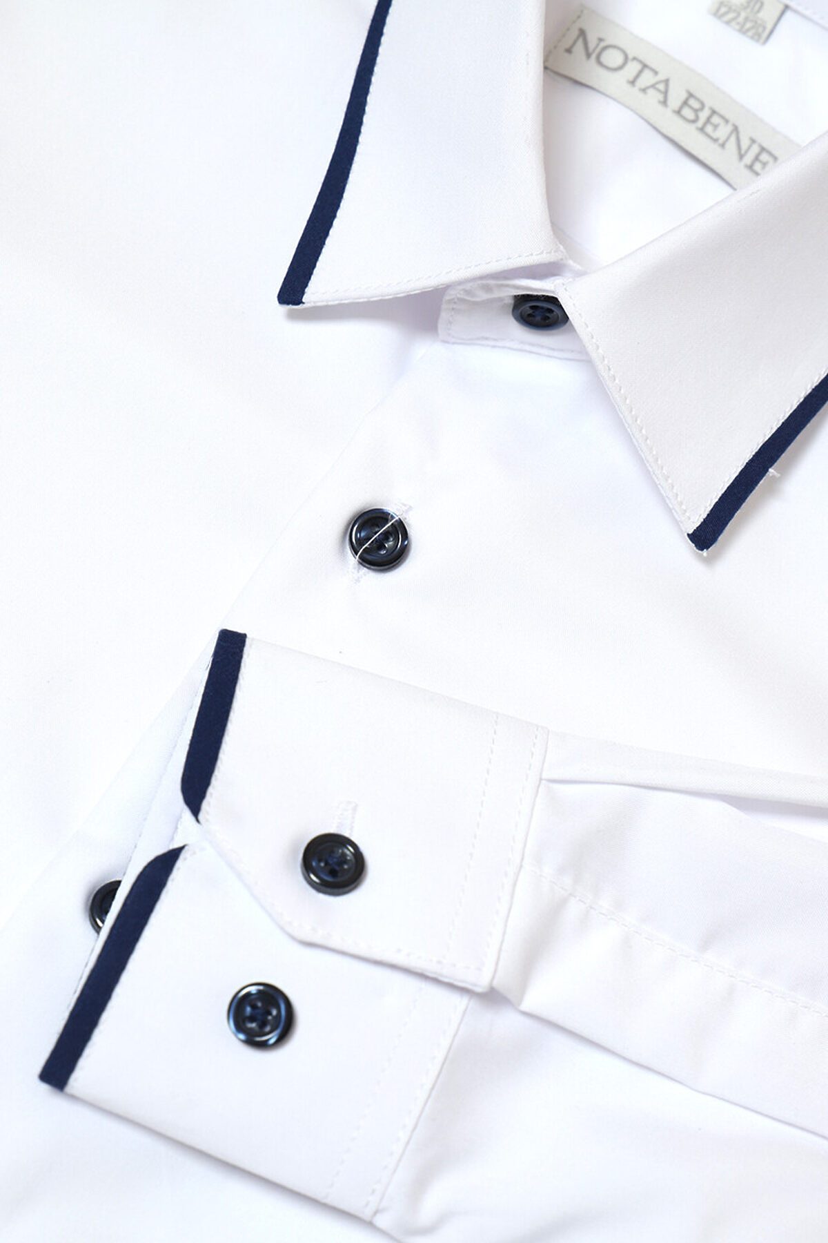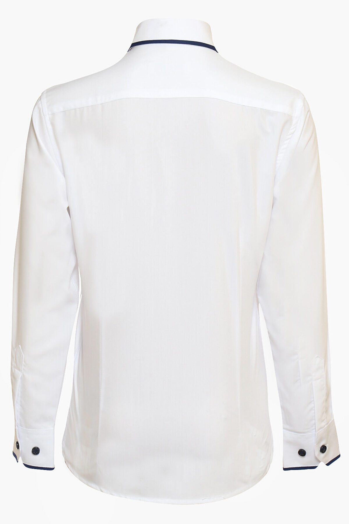 Сорочка приталенного силуэта с контрастной окантовкой.