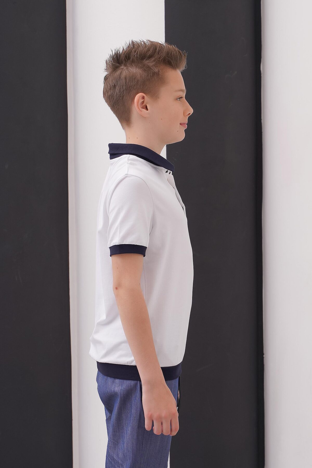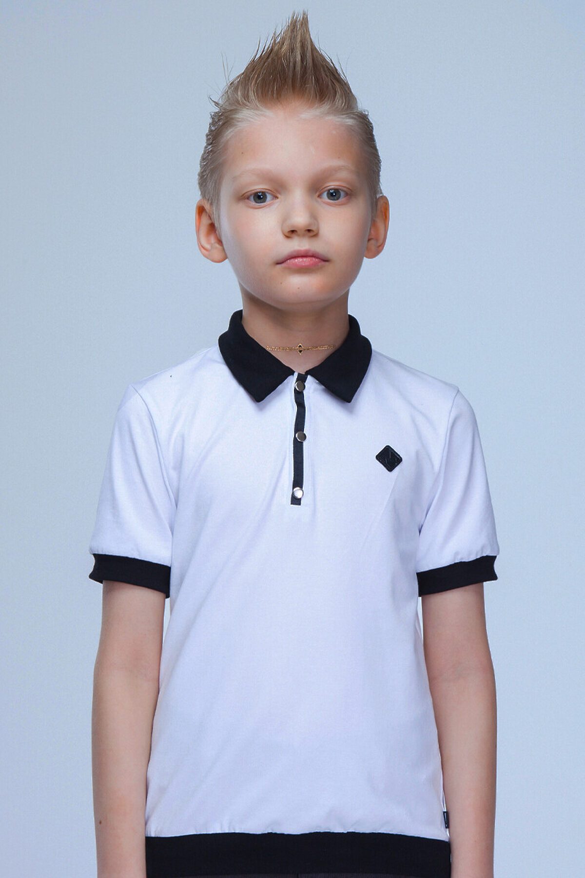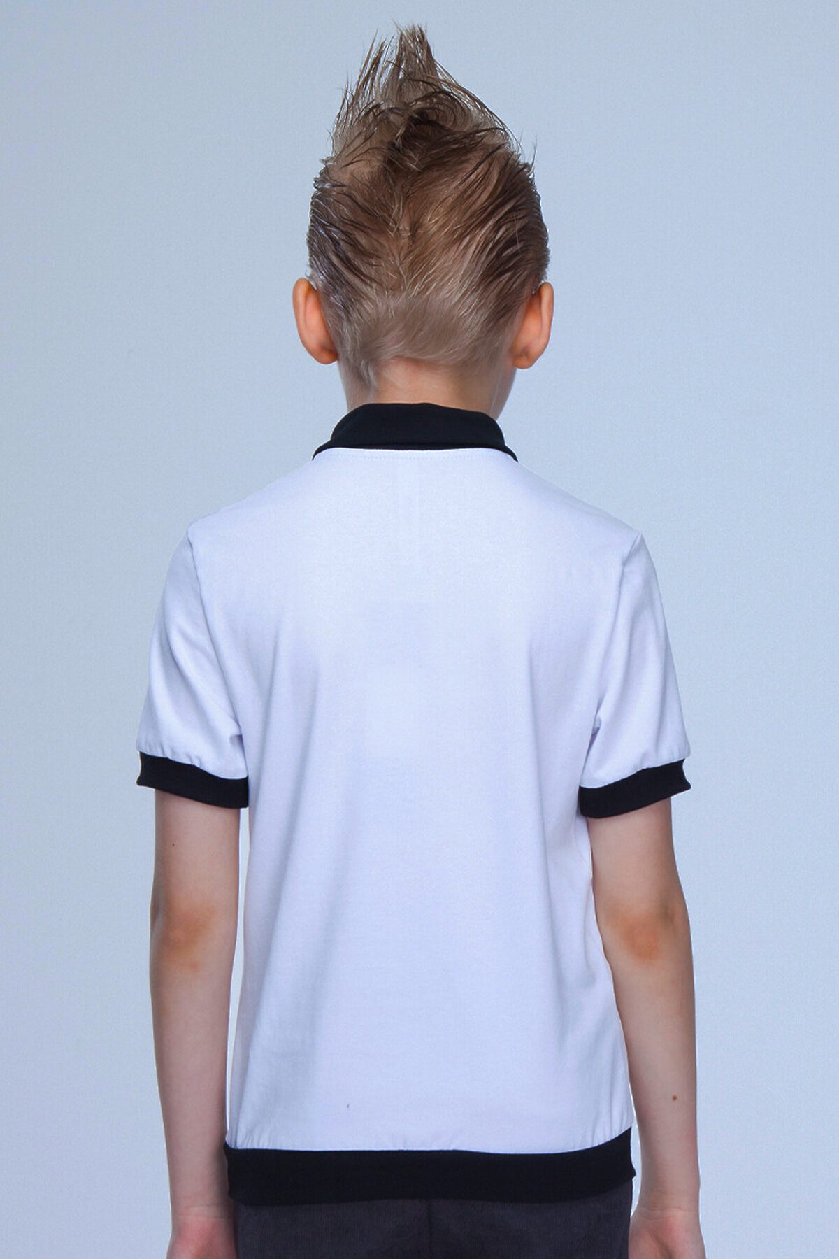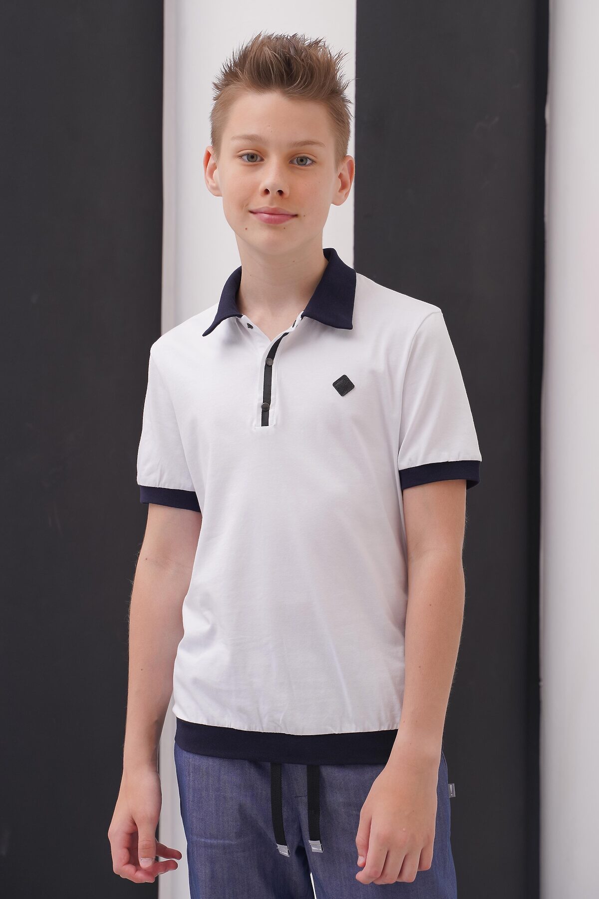 Футболка "поло" для мальчика, прямого силуэта, с короткими рукавами на манжетах.