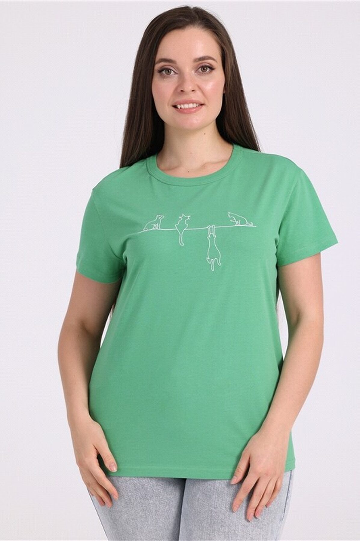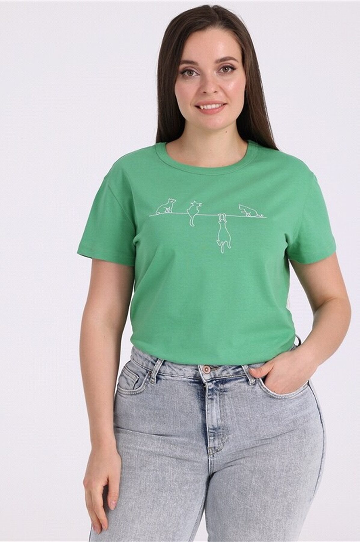 Футболка выполнена из легкого хлопкового полотна. Изделие свободного покроя с короткими рукавами и округлым вырезом горловины, украшено оригинальной вышивкой. Уход: только машинная стирка (руками не стирать!) при температуре 40 градусов, без предварительного замачивания. Изделия с печатью и декором перед стиркой необходимо вывернуть на изнаночную сторону. Материал: кулир