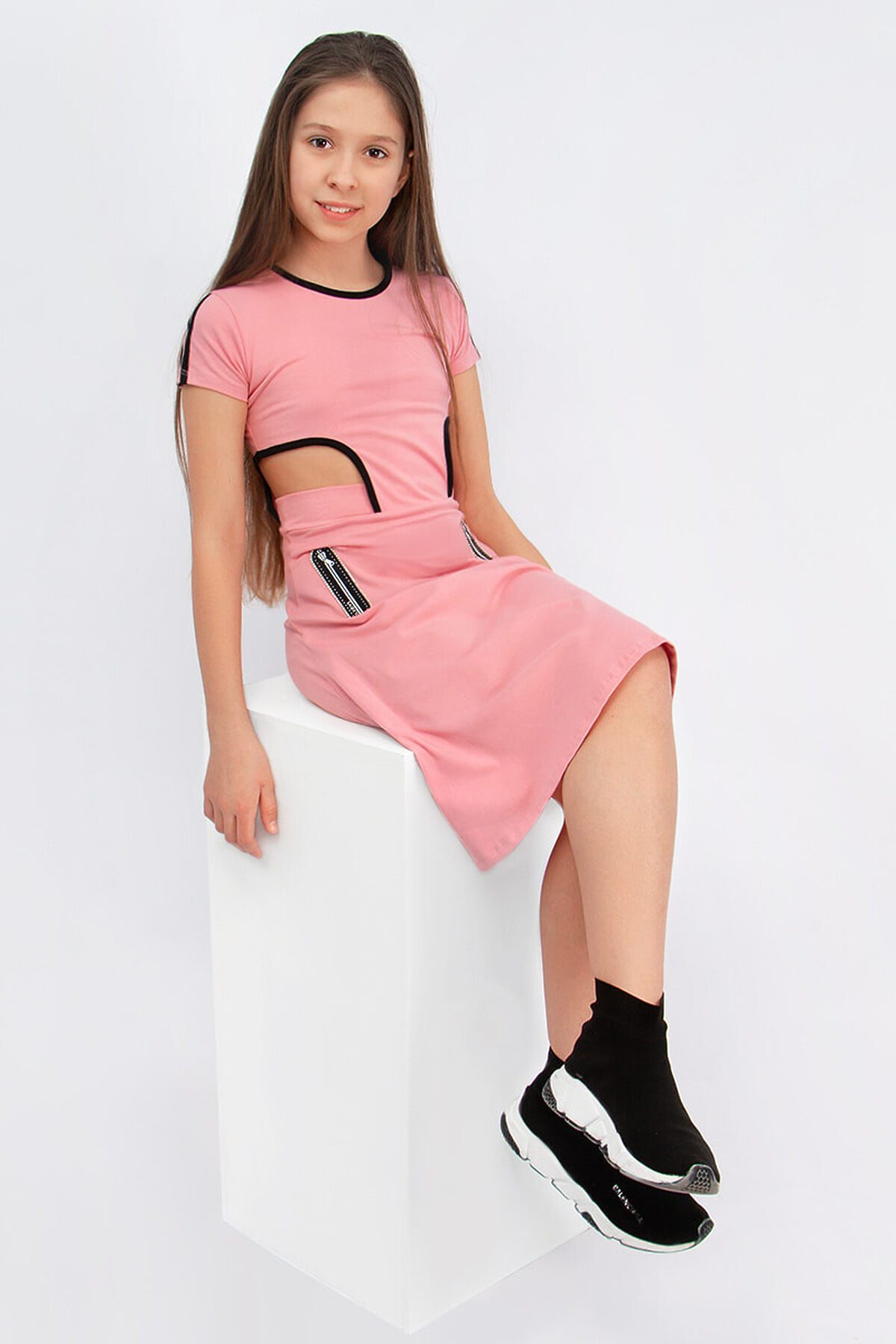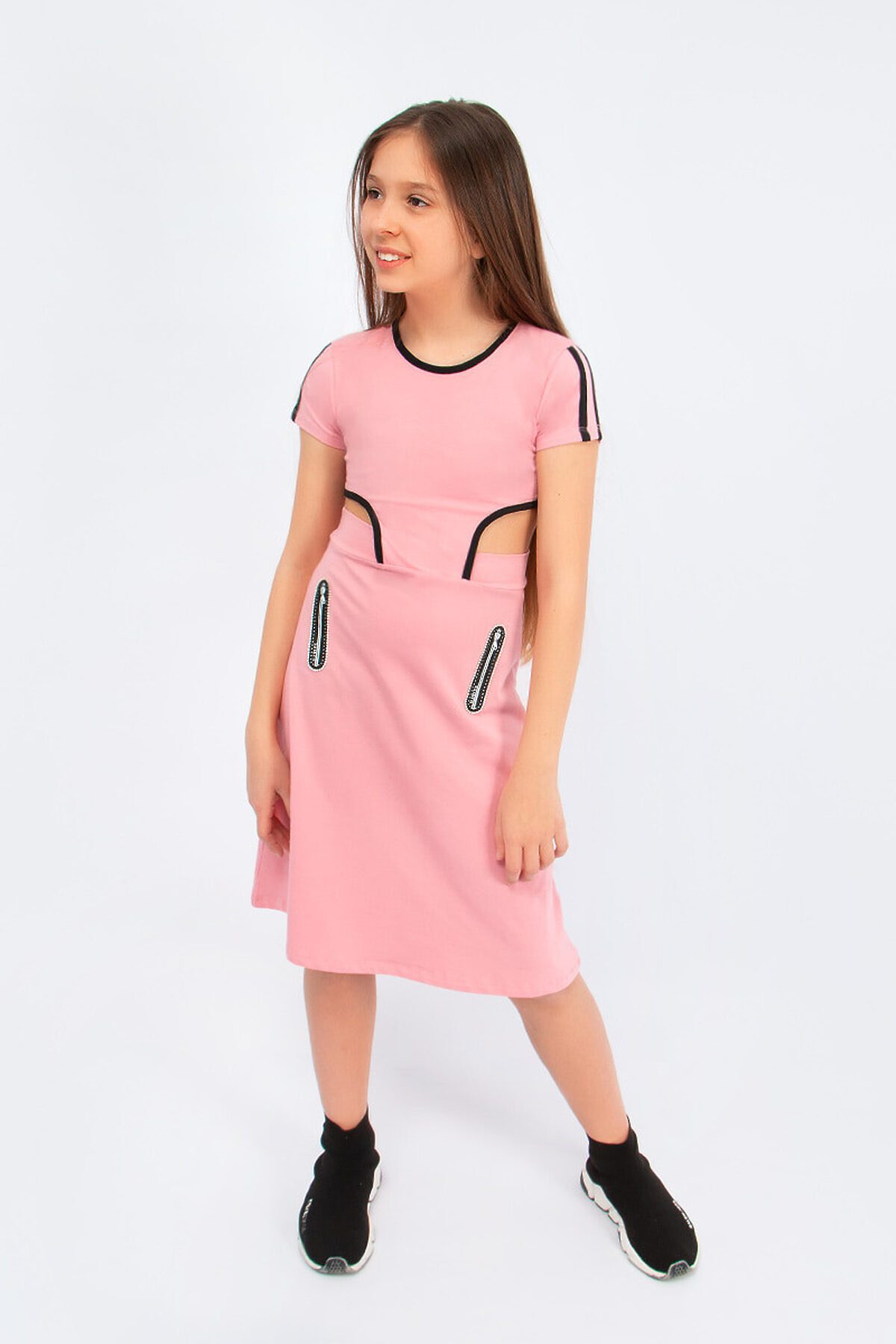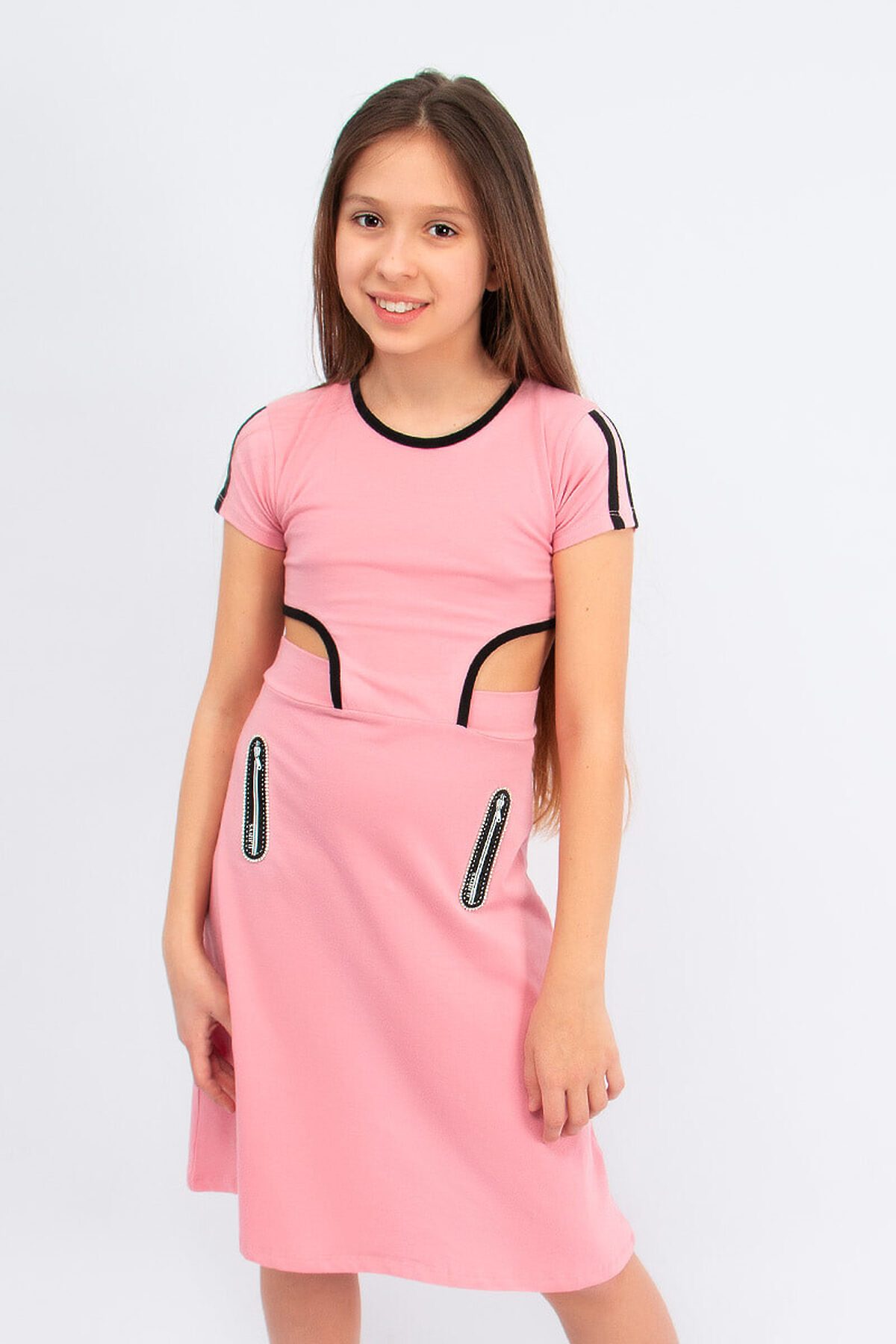 Платье Соль&Перец с коротким рукавом. Необычное платье с вырезами по бокам. Юбка выполнена в форме трапеции. По бокам декоративный элемент-нашивка со стразами в металлической оправе. Размер 128 (рост 128-134 см) длина изделия 83 см, полуобхват талии 34 см. Размер 134 (рост 134-140 см) длина изделия 85 см, полуобхват груди 36 см. Размер 140 (рост 140-146 см) длина изделия 87 см, полуобхват груди 37 см. Размер 146 (рост 146-152 см) длина изделия 89 см, полуобхват груди 38 см. Размер 152 (рост 152-158 см) длина изделия 91 см, полуобхват груди 39 см.
