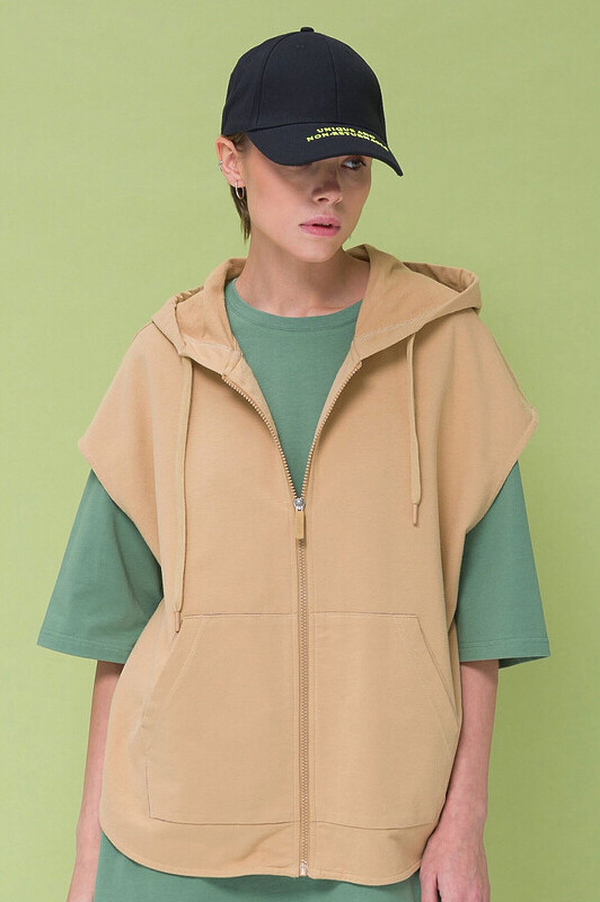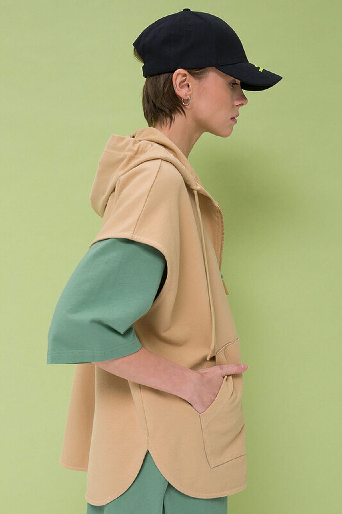 Однотонный женский жилет из футера. Теплая, мягкая, приятная на ощупь ткань с 96% хлопка в составе – почти не мнется, сохраняет форму даже после частых стирок. Капюшон регулируется, резиновые наконечники на шнуре – удобные и тактильно приятные фишки. Тракторная молния прочная, не заедает. Максимально широкая увеличенная пройма – для свободы движения и удобства комбинирования с другой одеждой. Объемные и функциональные карманы. Жилет великолепно сочетается с футболками оверсайз. Подходит на каждый день, незаменим для активного отдыха, спорта и путешествий.