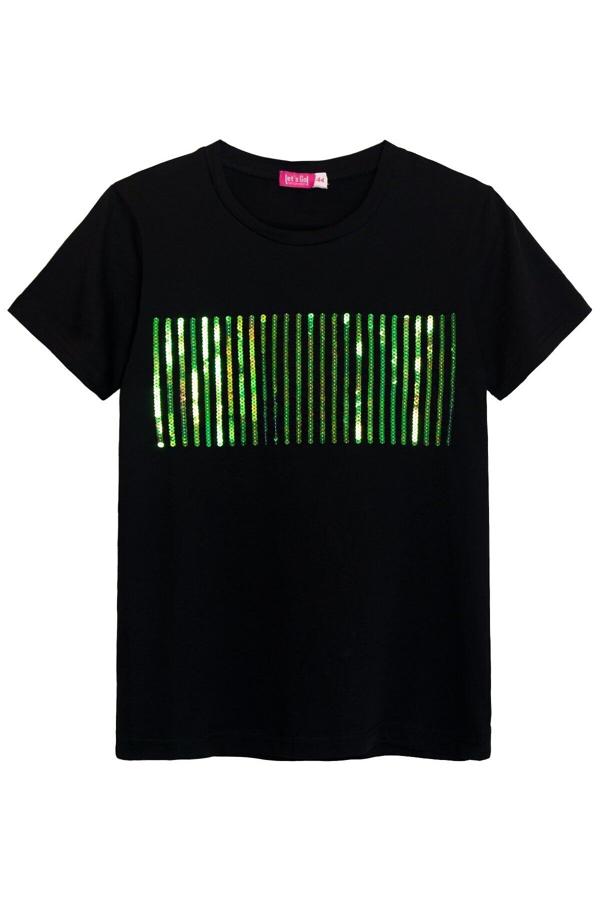 Стильная женская футболка с пайетками из коллекции «Оптические иллюзии». Нежнейший 100% хлопок делает эту вещь ярким дополнением любого гардероба! Футболка с вышивкой пайетками придает образу современную стильность, сочетается с любой одеждой: леггинсы, шорты, джинсы, брюки и юбки. Смените скучные однотонные футболки, майки и кофты на яркие футболки Let’s Go с оригинальным дизайном! Женская футболка с пайетками подчеркнет вашу индивидуальность, актуальна как праздничная одежда, повседневная одежда, яркий аксессуар, блестящий акцент, который выделит вас из толпы. Модели с пайетками рекомендуем приобретать на размер больше, маломерят. Футболка женская прямого силуэта с втачным коротким рукавом. Горловина круглая, обработана воротником из кулирки, в цвет изделия. Горловина спинки внутри обработана настрочной планкой из кулирки. Низ изделия и рукавов обработан швом вподгибку. На полочке вышивка пайетками. Полотно - кулирная гладь пенье, из хлопка высшего качества. Коллекция «Оптические иллюзии» представляет сам