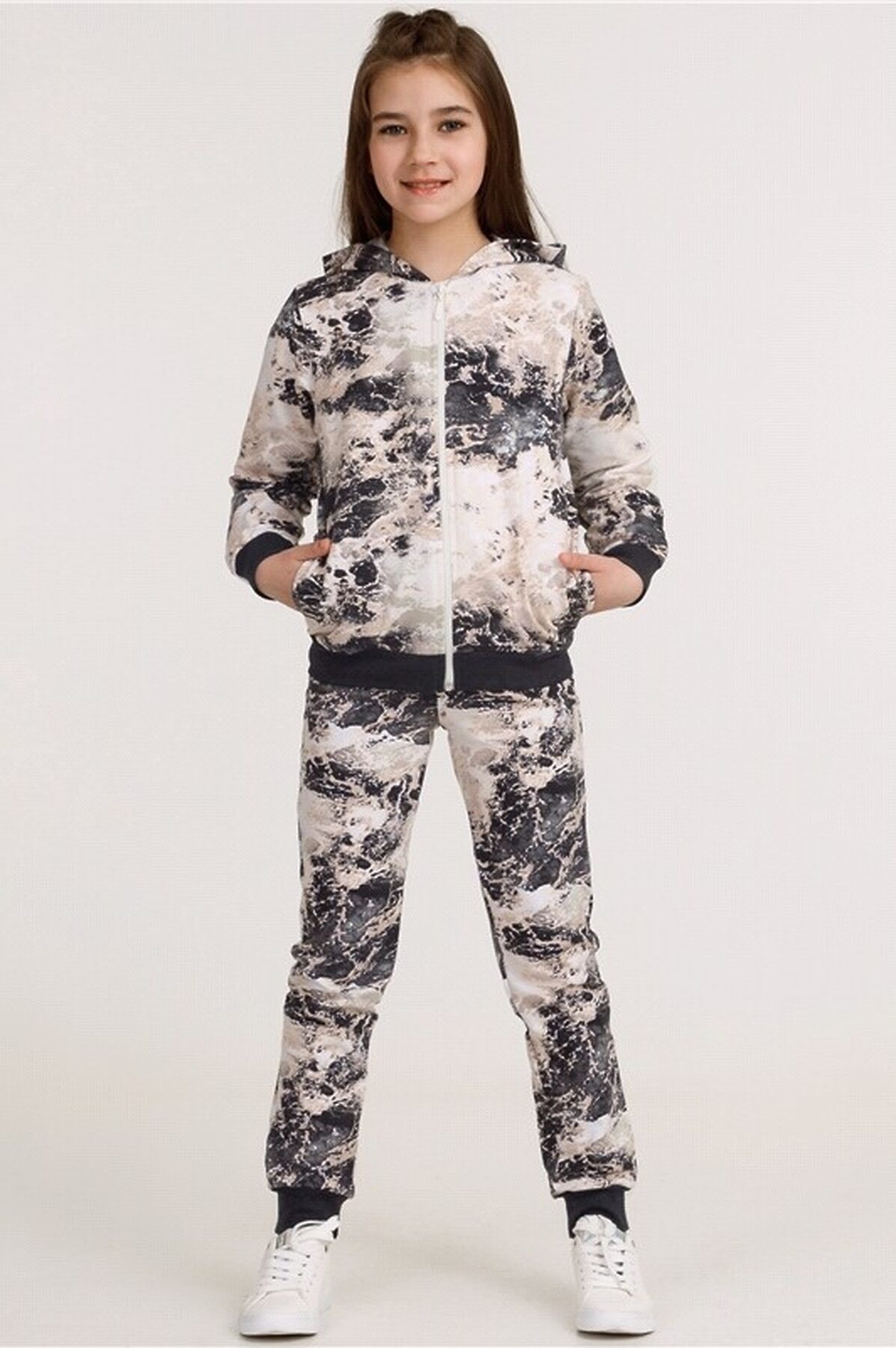 Костюм (толстовка+брюки) АПРЕЛЬ, серый мрамор+антрацит